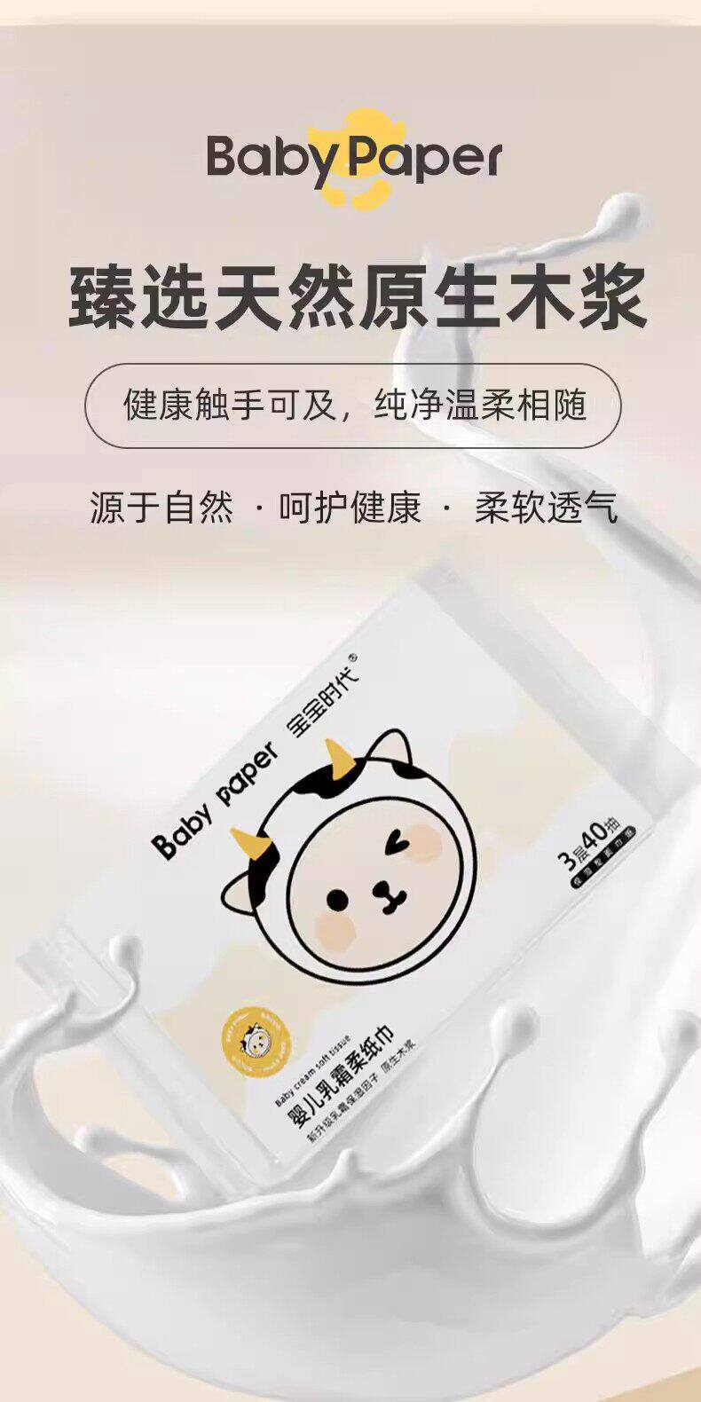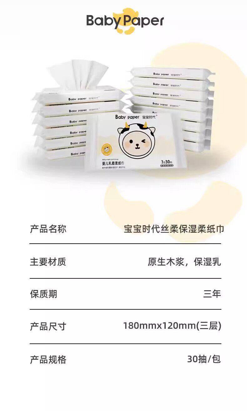 宝宝时代3层30抽婴儿乳霜纸巾保湿乳液纸母婴可用温和乳霜纸