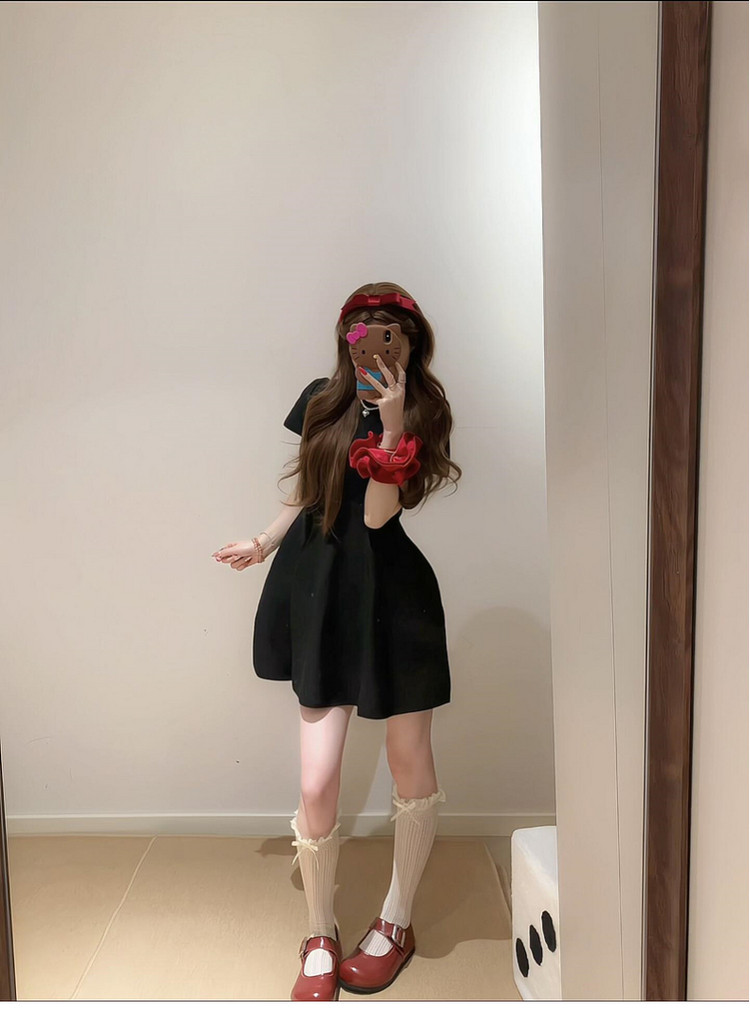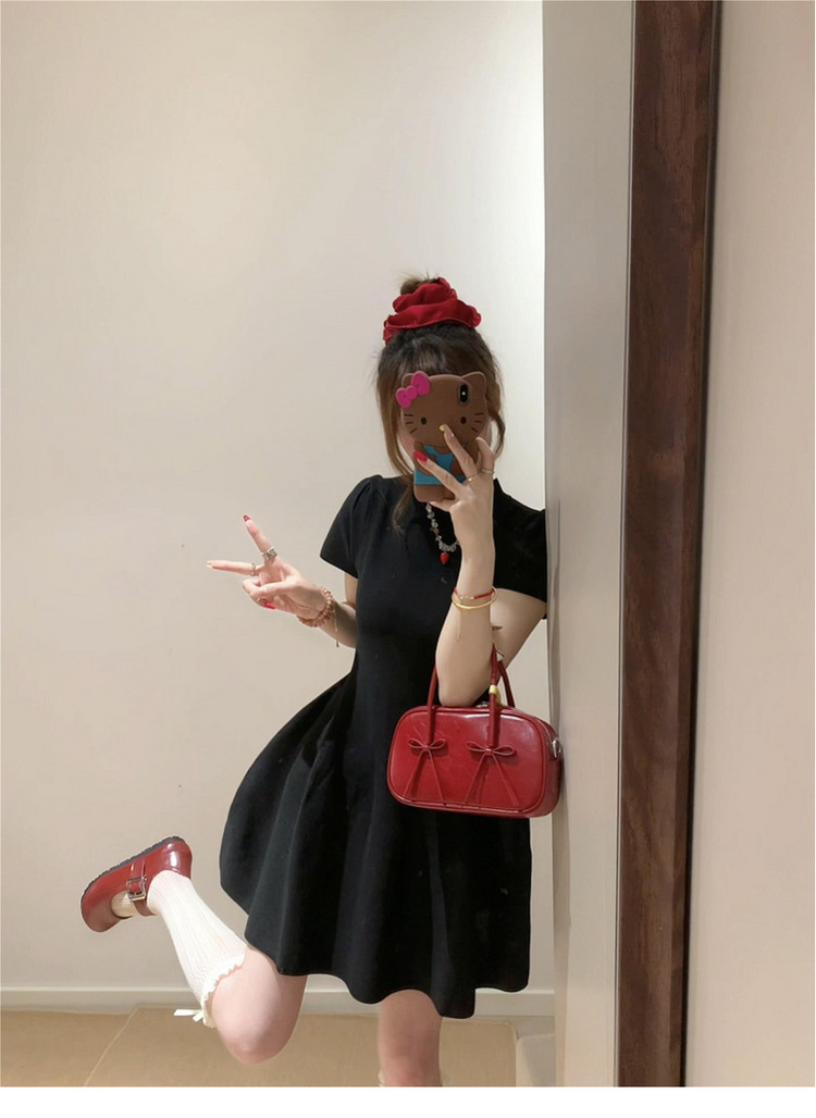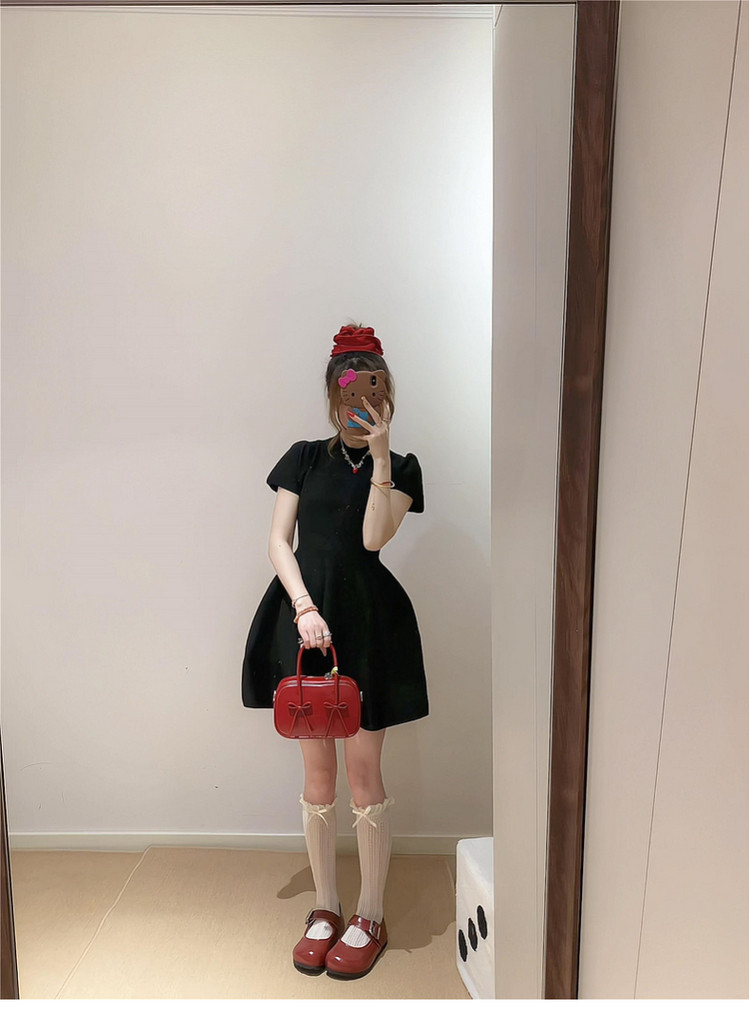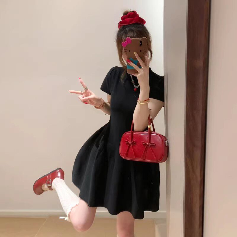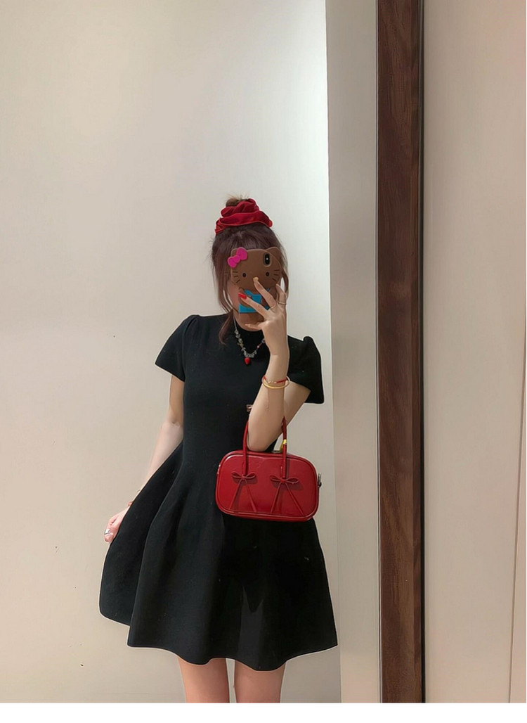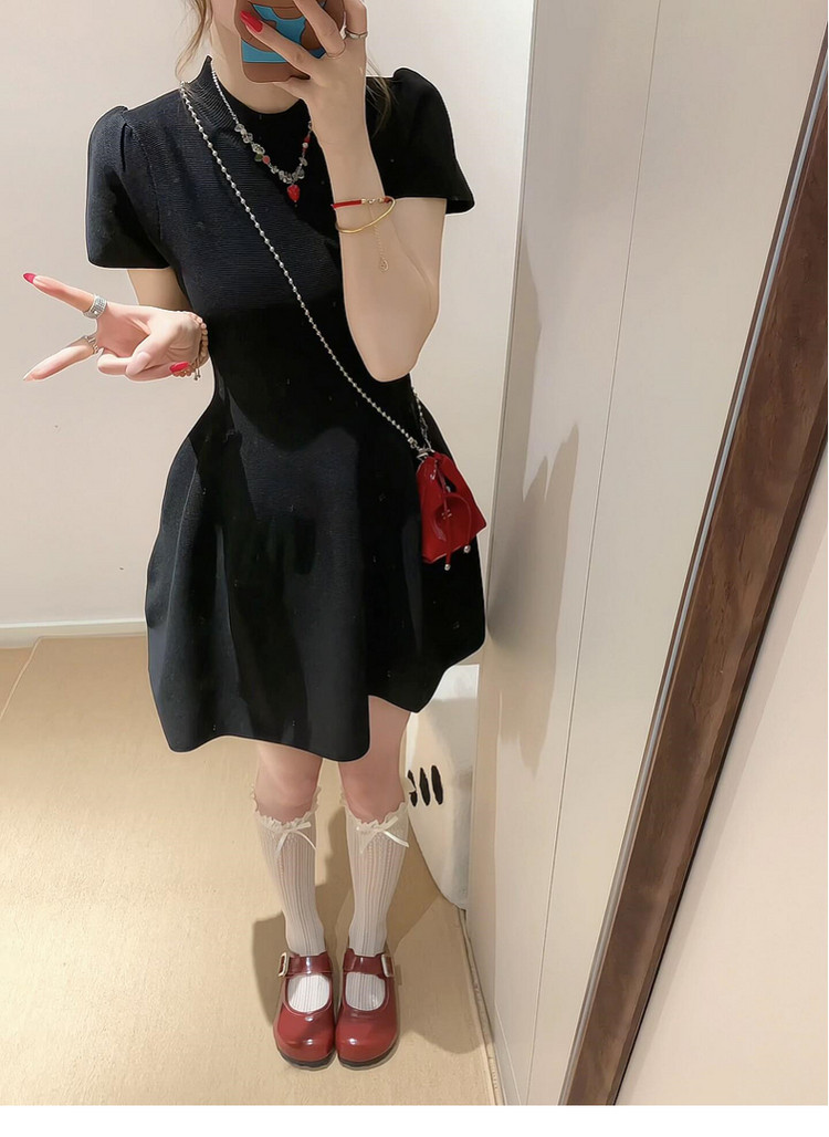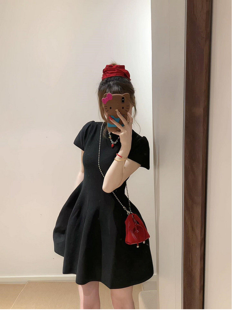 半高领赫本风黑色连衣裙子女夏季2026新款小个子收腰短裙漂亮穿搭