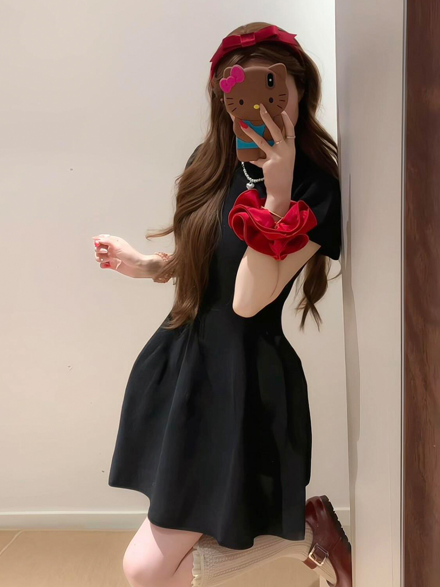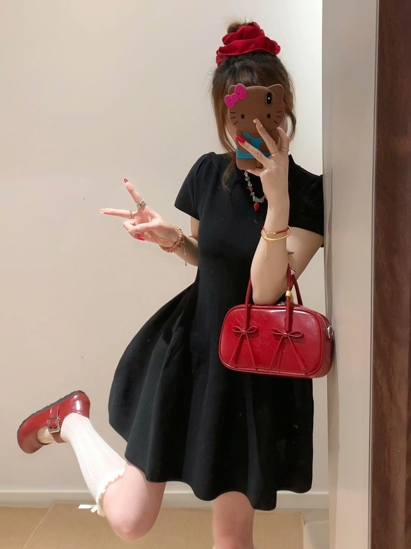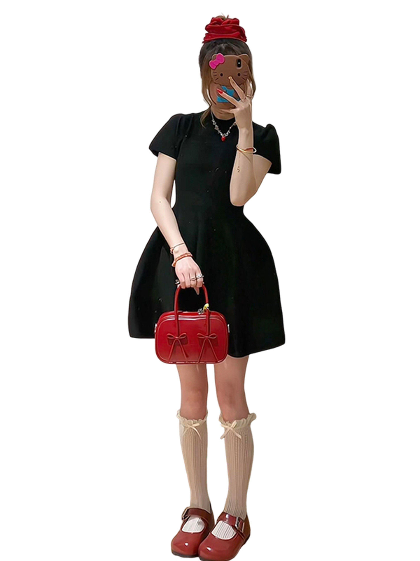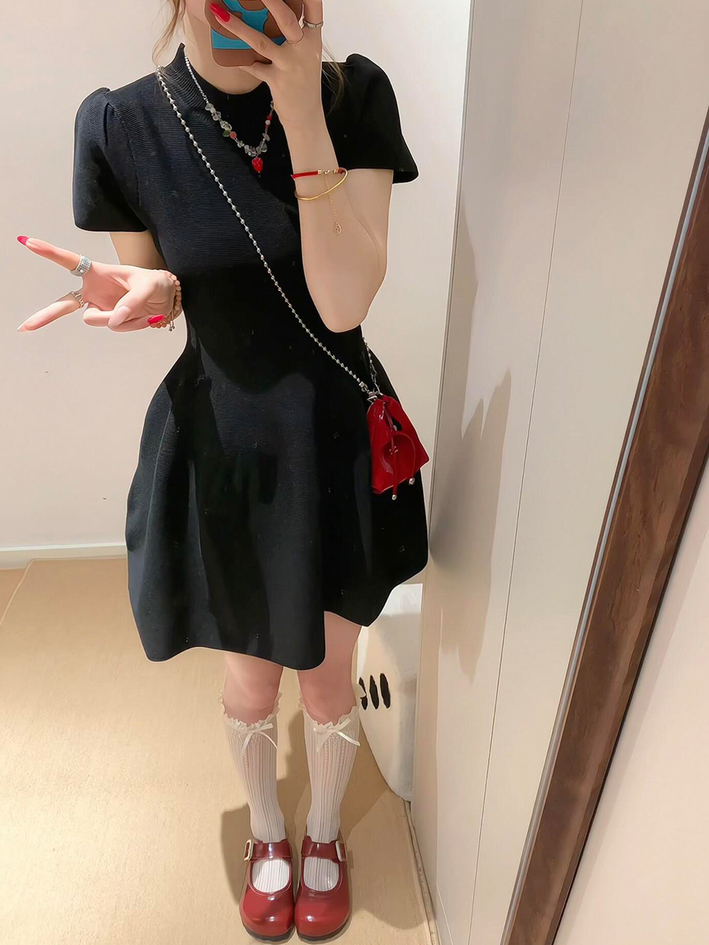 半高领赫本风黑色连衣裙子女夏季2026新款小个子收腰短裙漂亮穿搭