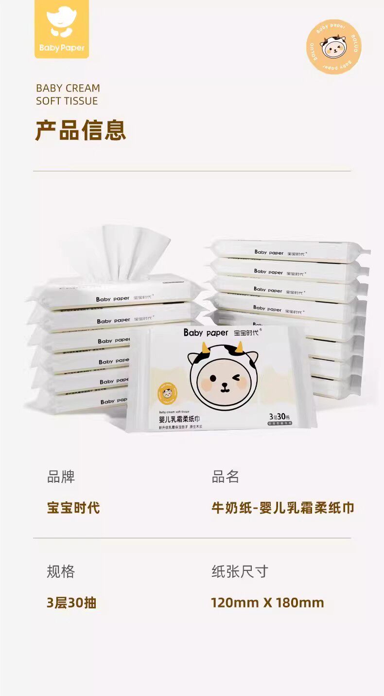 Z3宝宝时代婴儿手口乳霜柔纸巾云柔巾车载清洁超柔通用抽纸便携