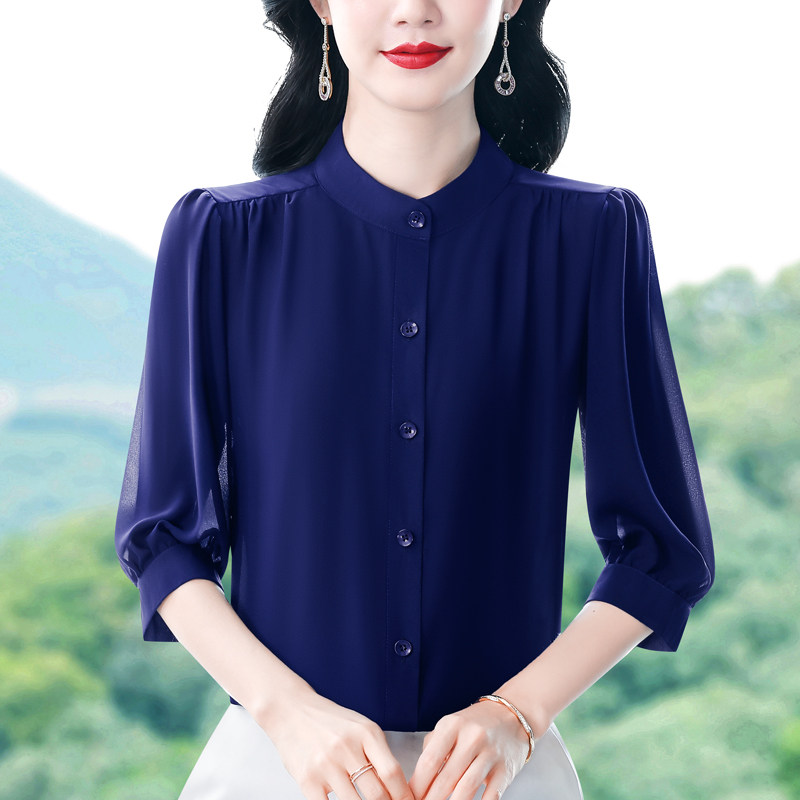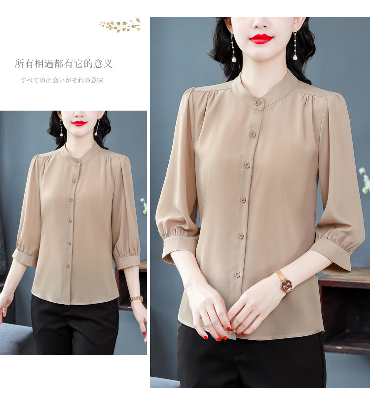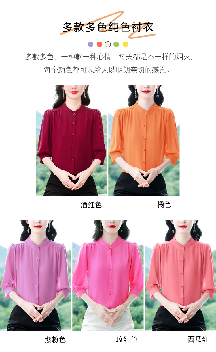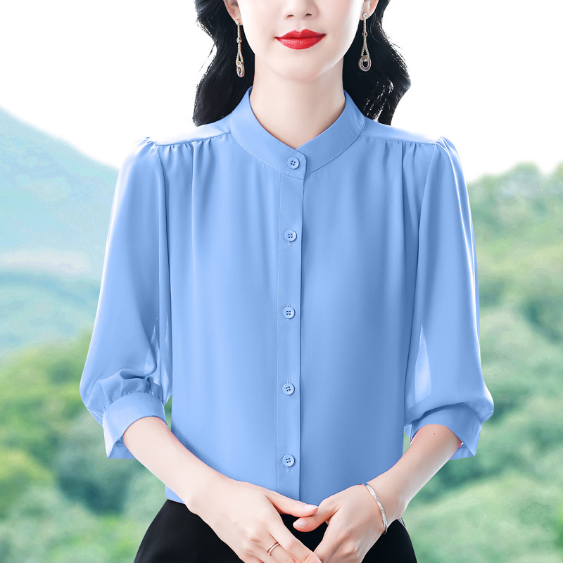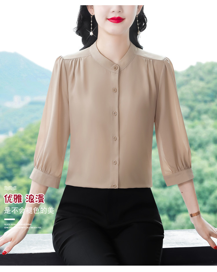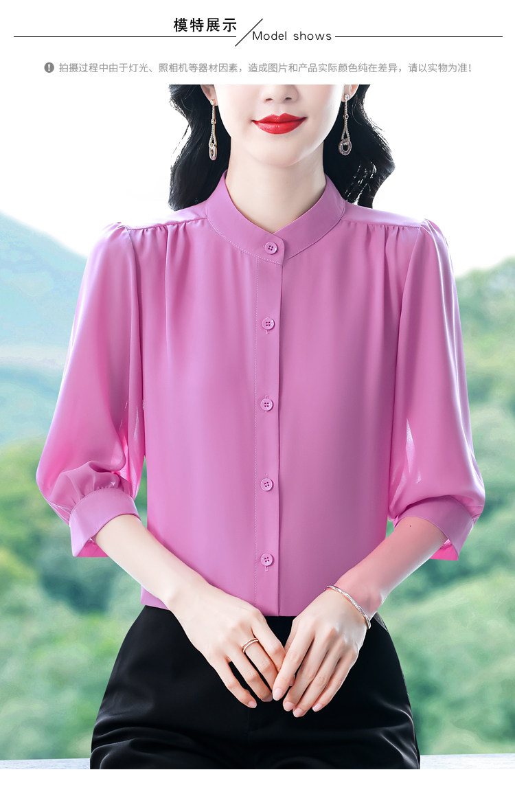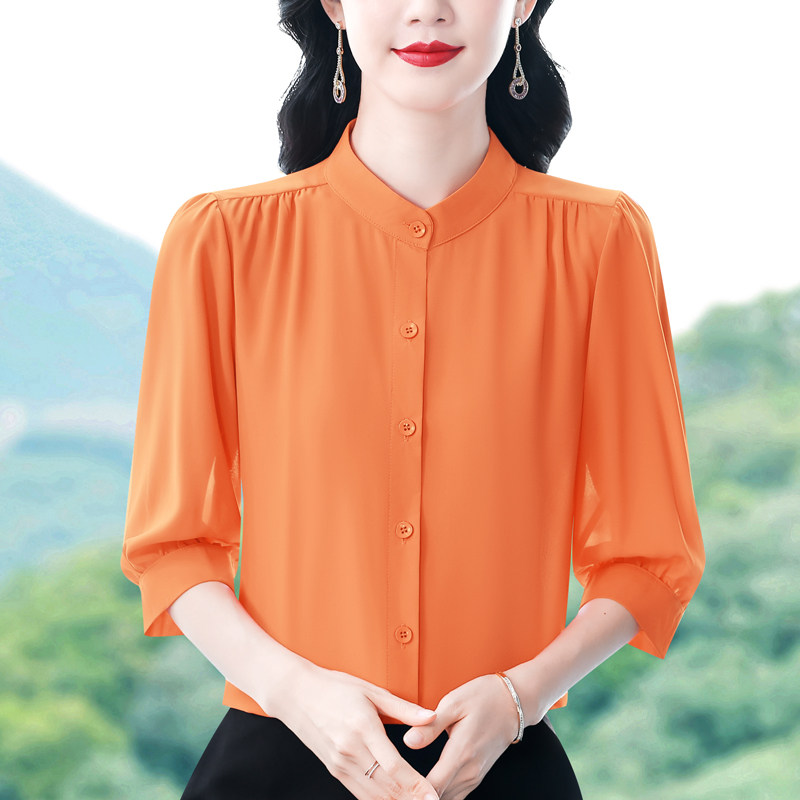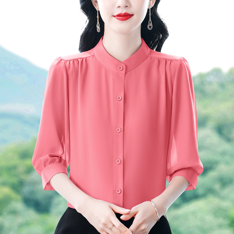 圆领七分袖衬衫女宽松春夏新款洋气百搭减龄妈妈上衣中袖雪纺衬衣