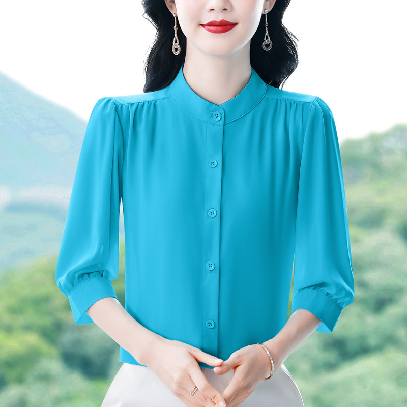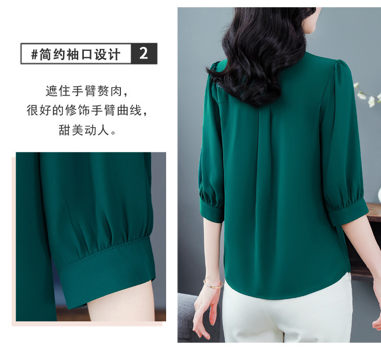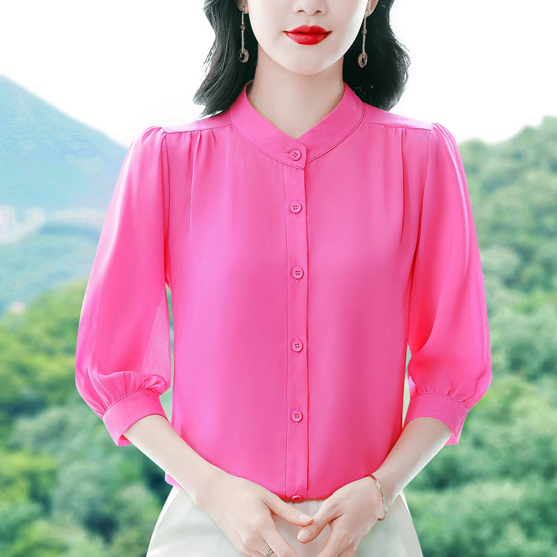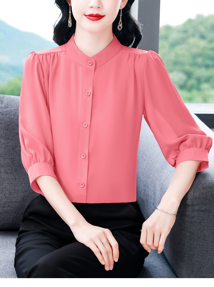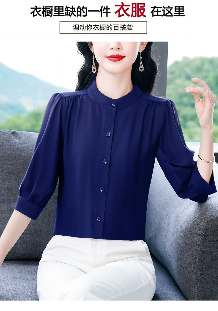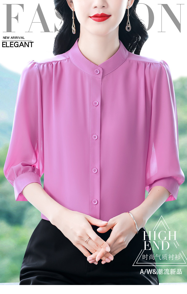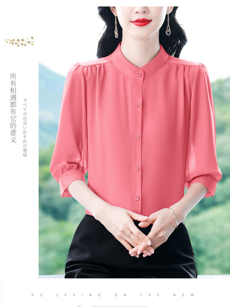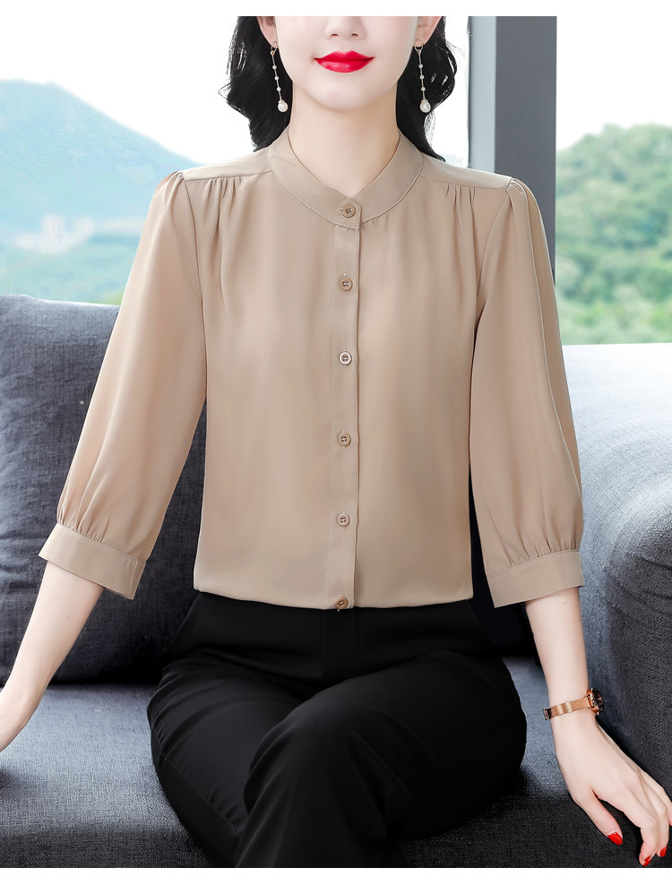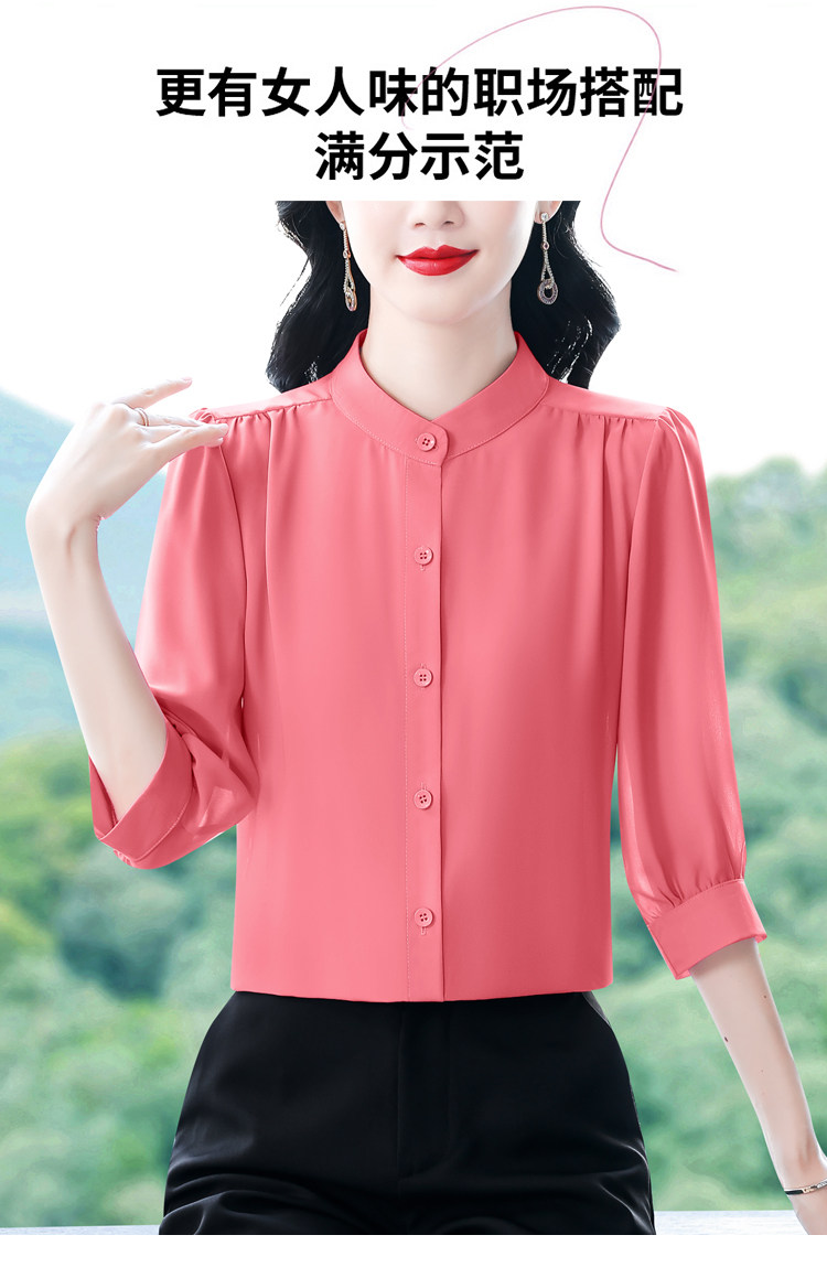 圆领七分袖衬衫女宽松春夏新款洋气百搭减龄妈妈上衣中袖雪纺衬衣