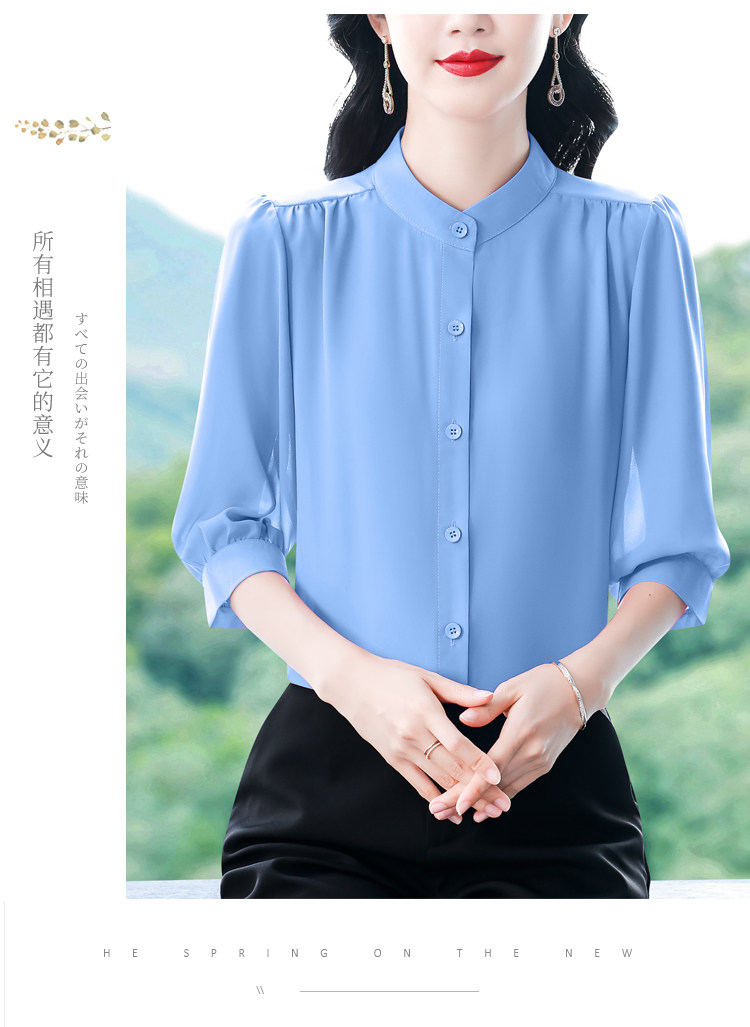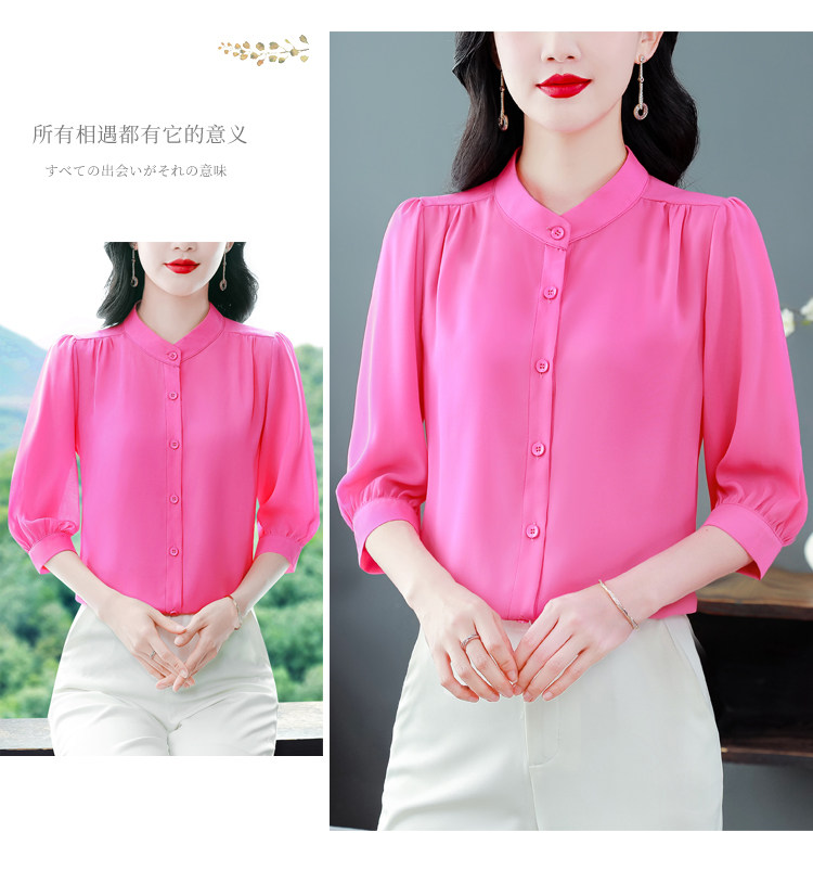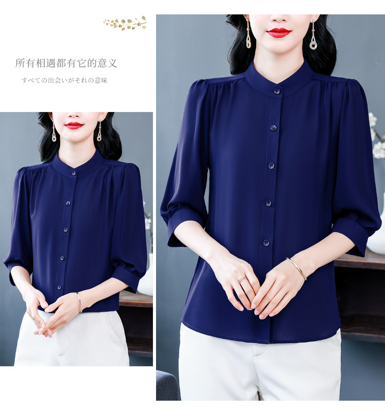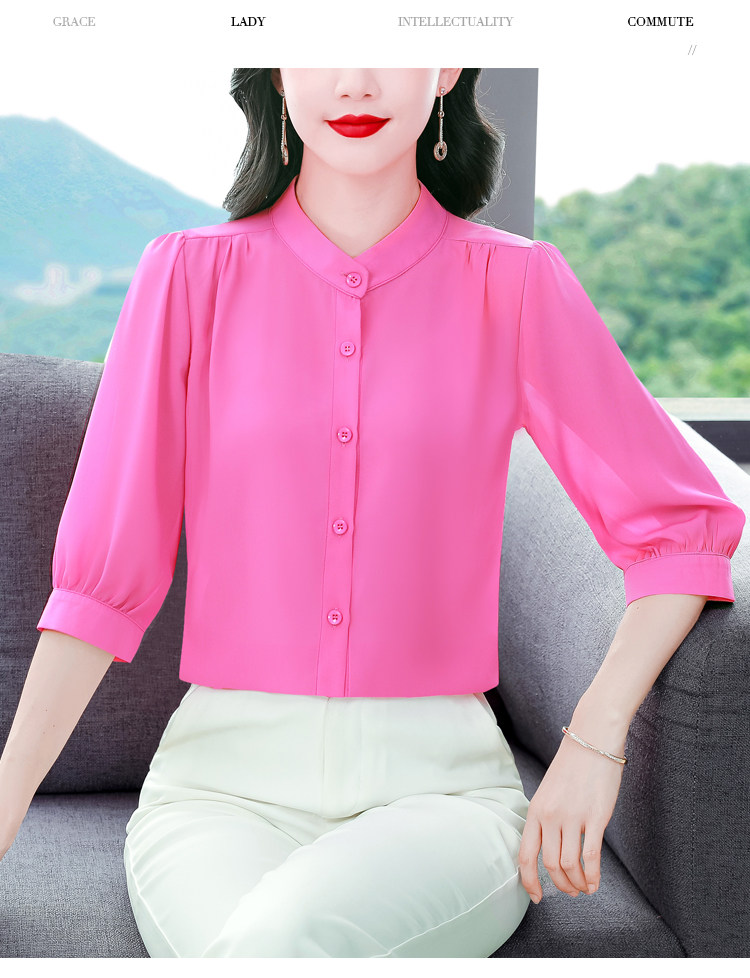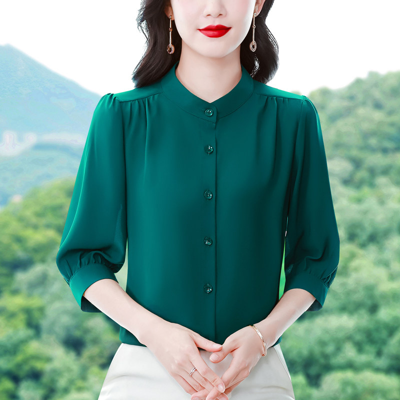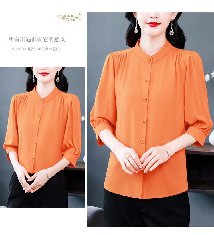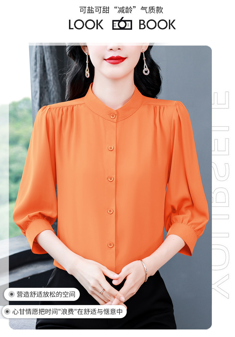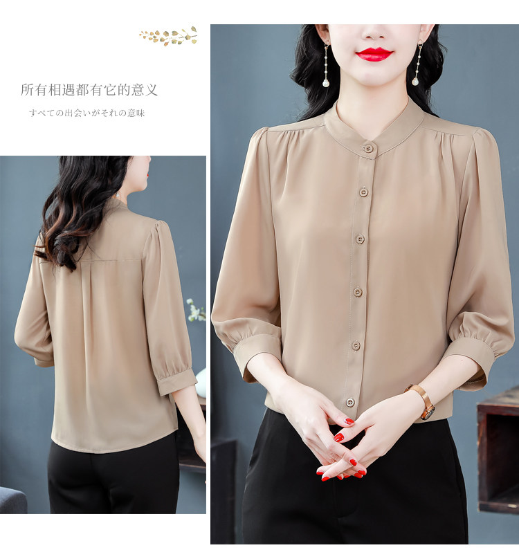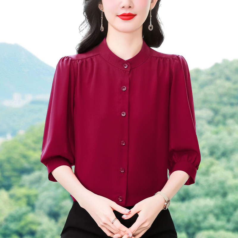 圆领七分袖衬衫女宽松春夏新款洋气百搭减龄妈妈上衣中袖雪纺衬衣