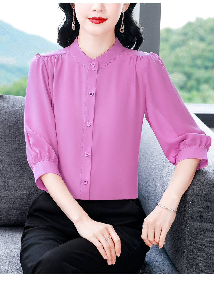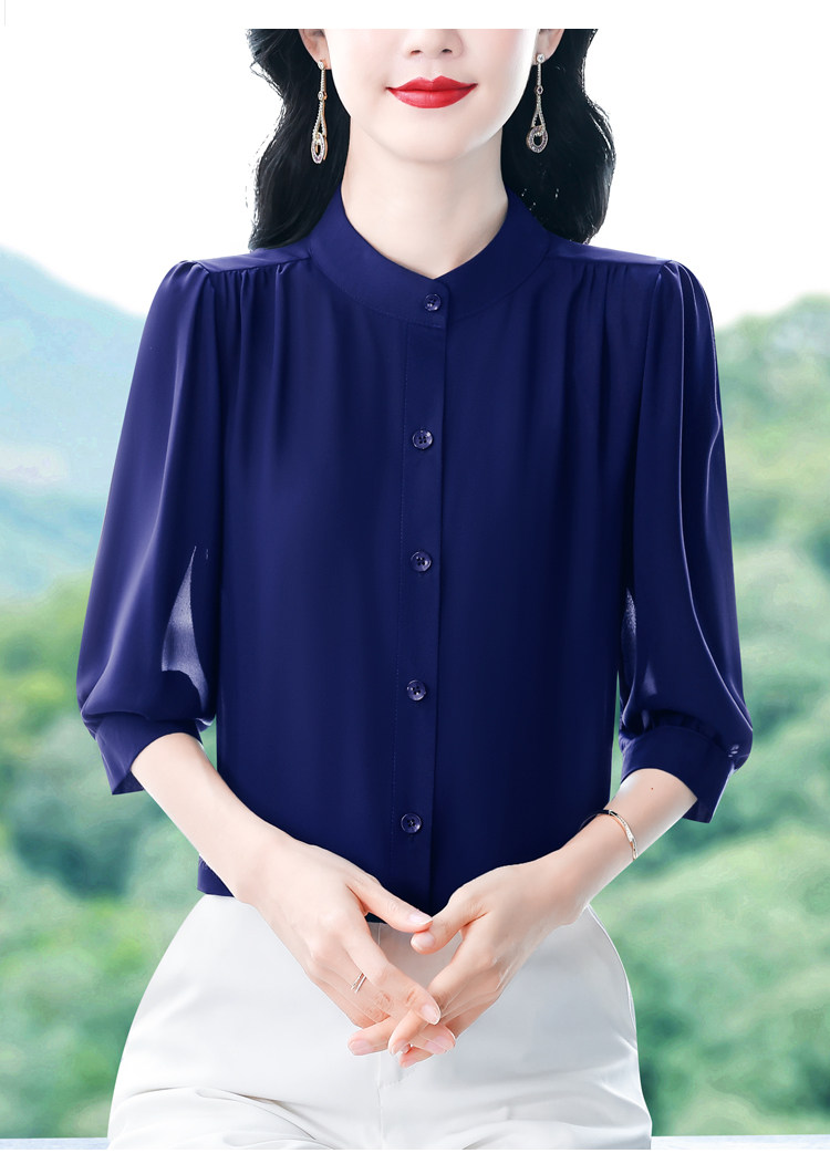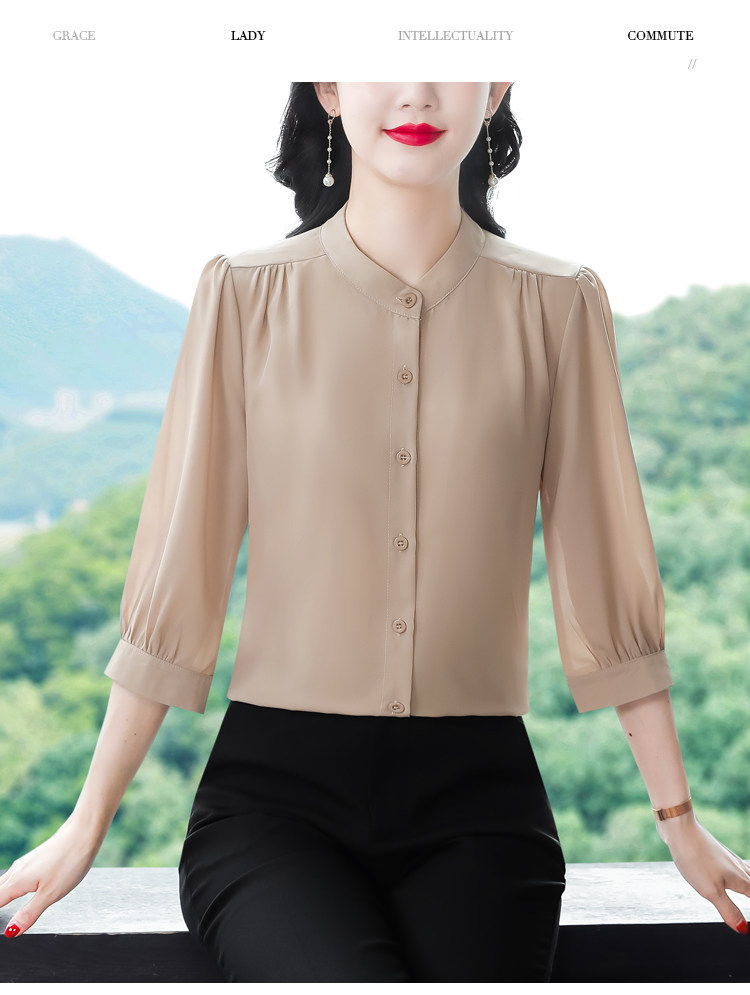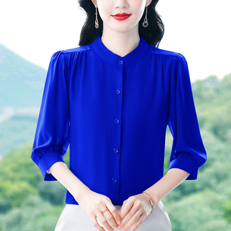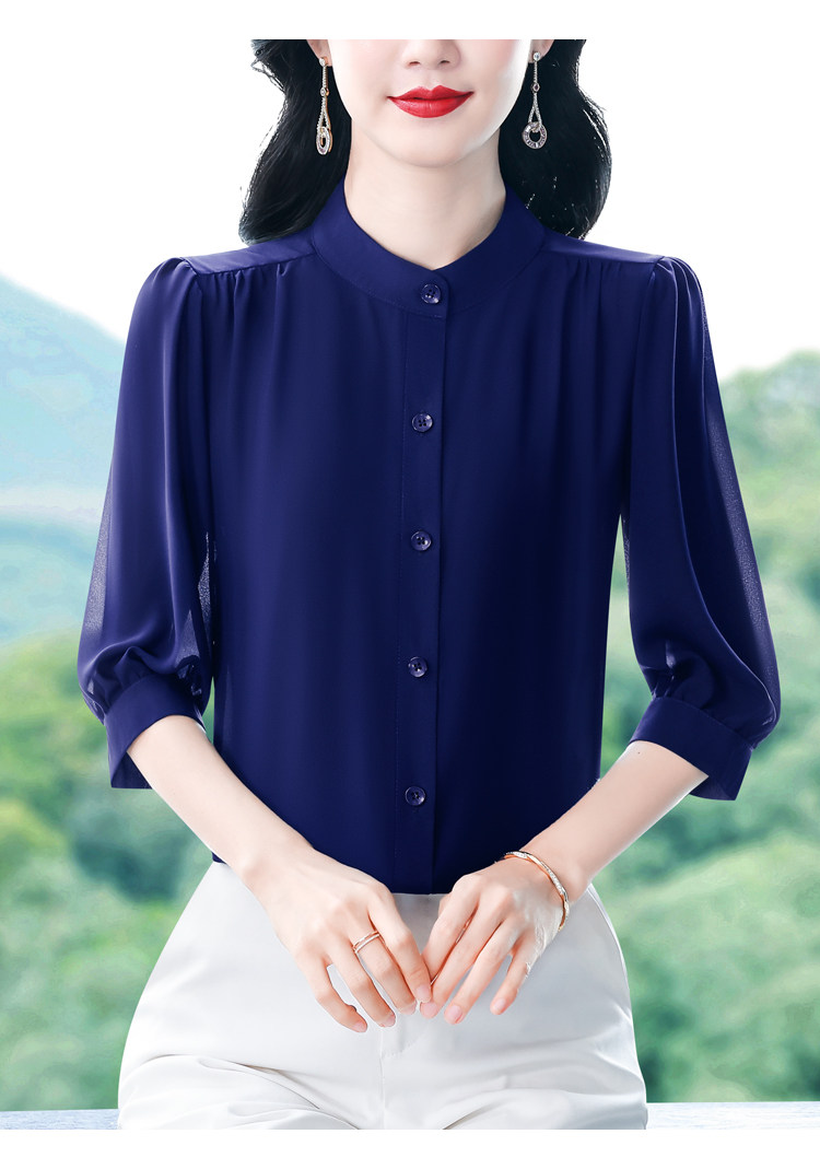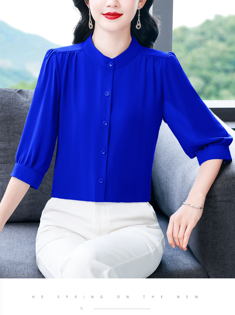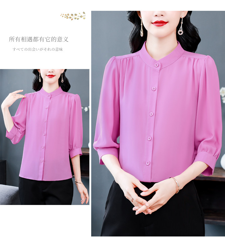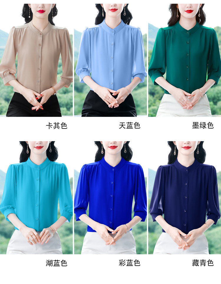 圆领七分袖衬衫女宽松春夏新款洋气百搭减龄妈妈上衣中袖雪纺衬衣