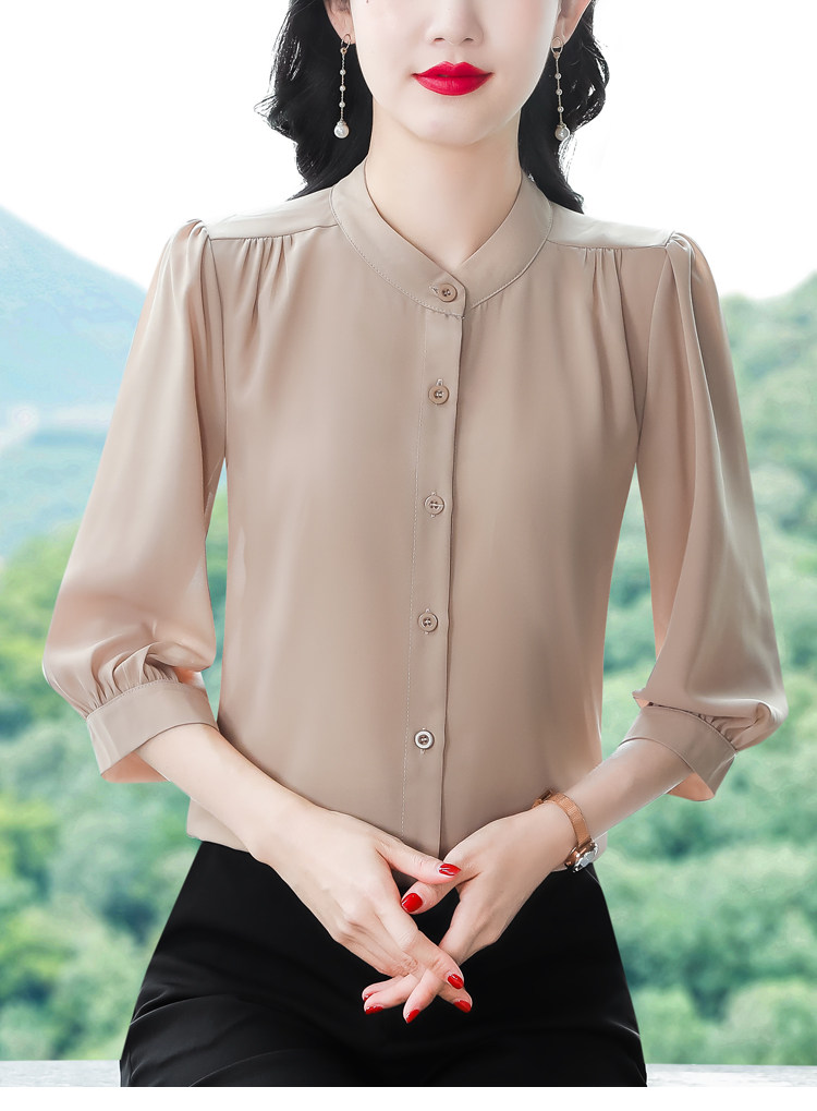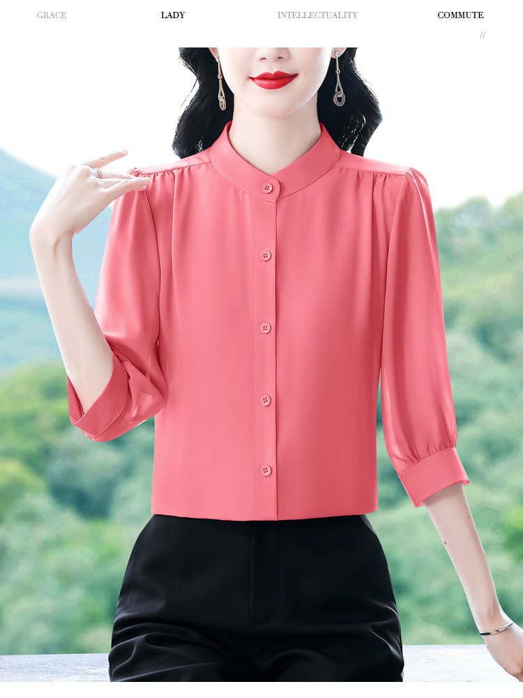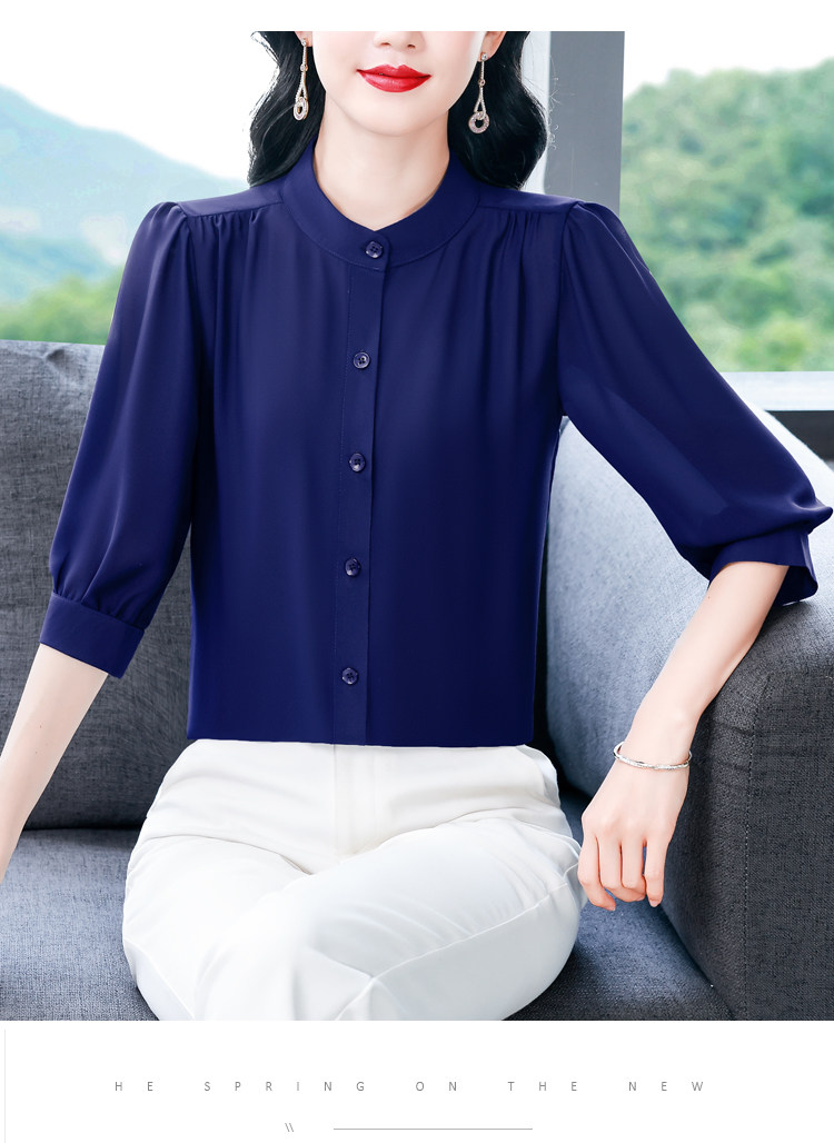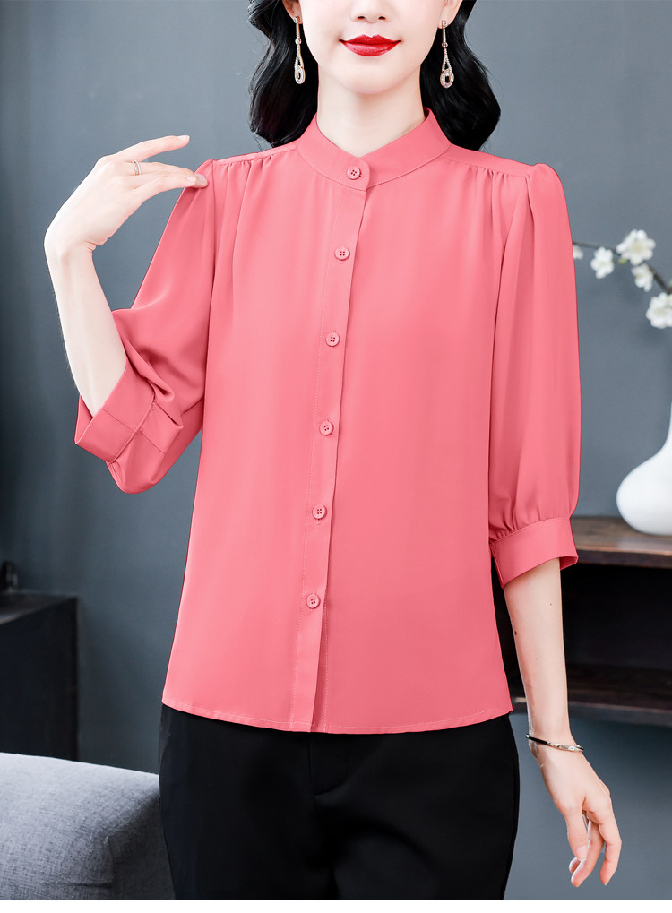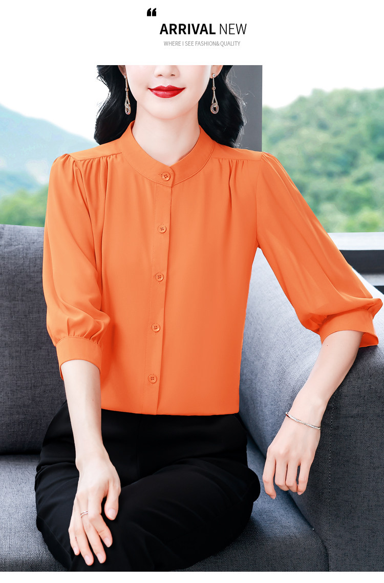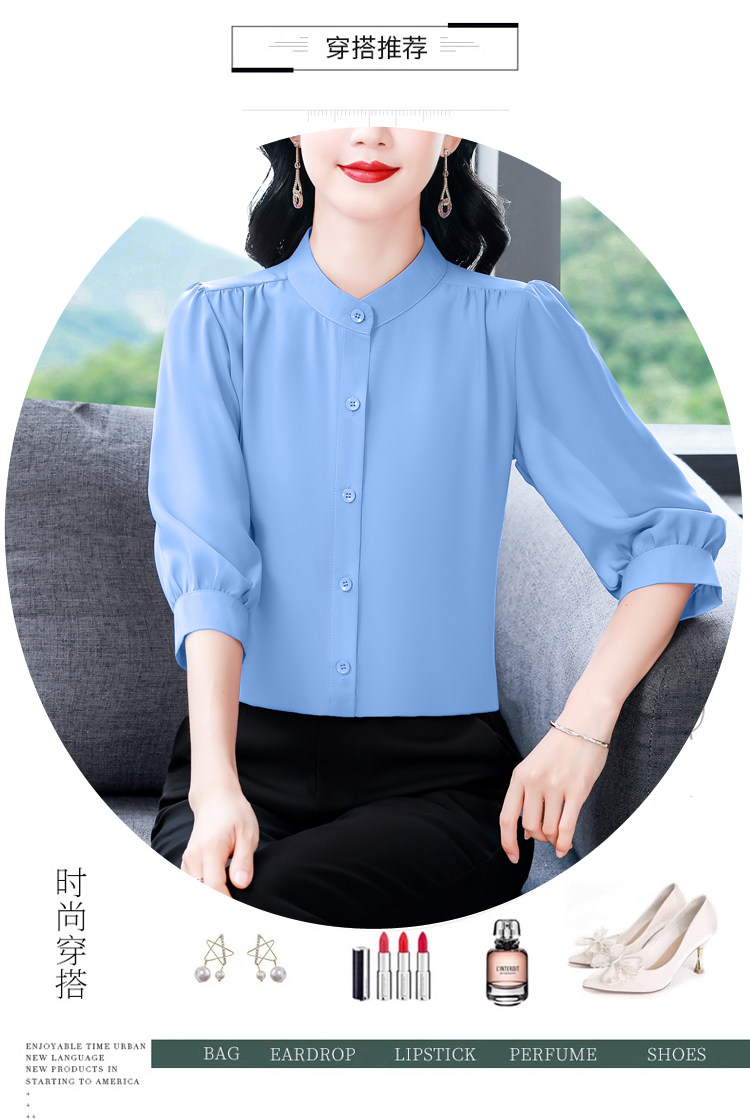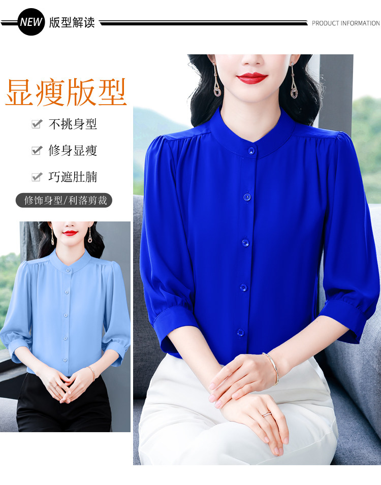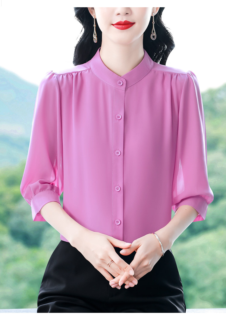 圆领七分袖衬衫女宽松春夏新款洋气百搭减龄妈妈上衣中袖雪纺衬衣