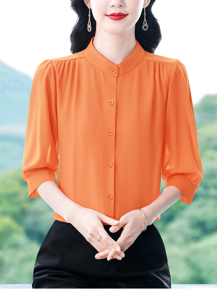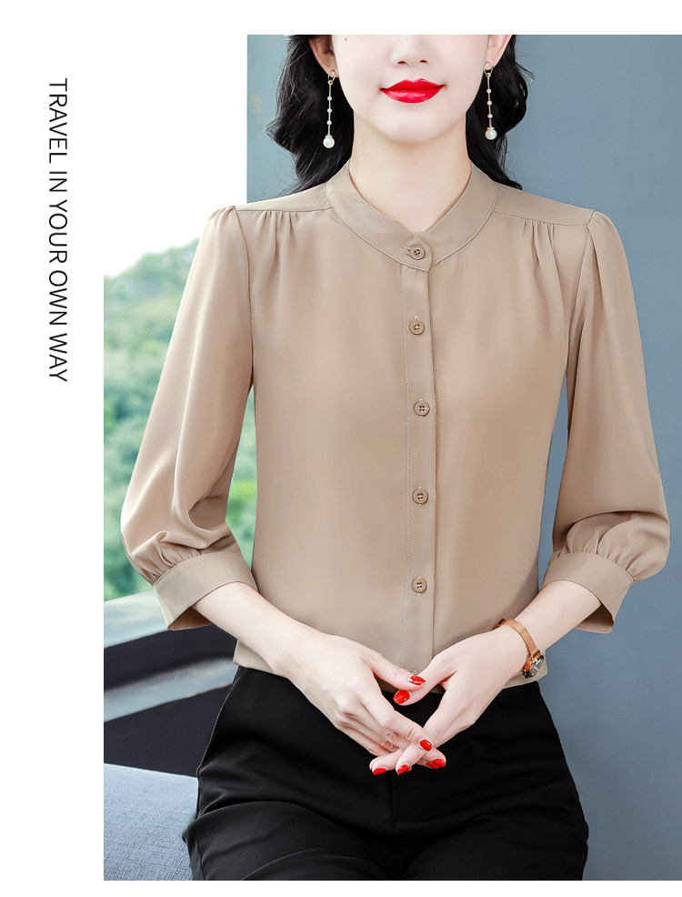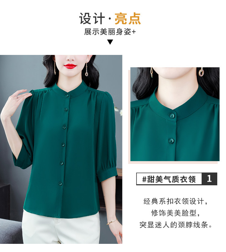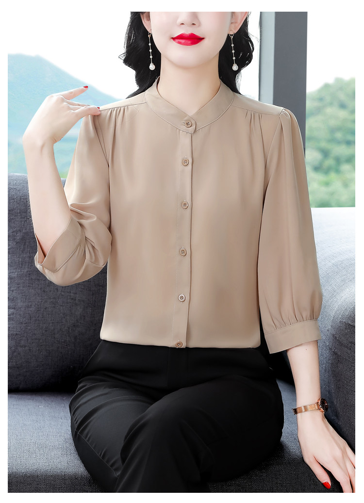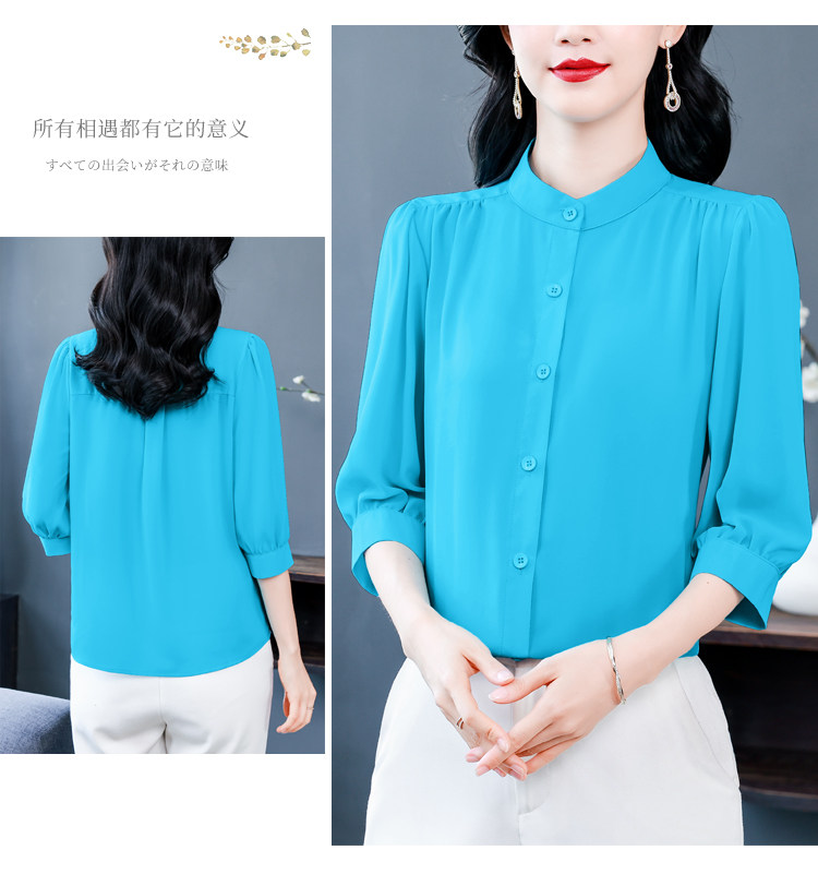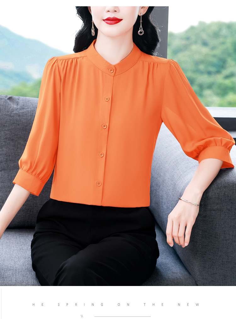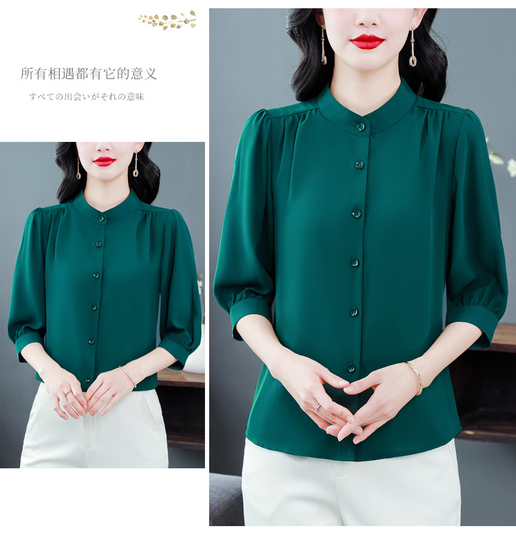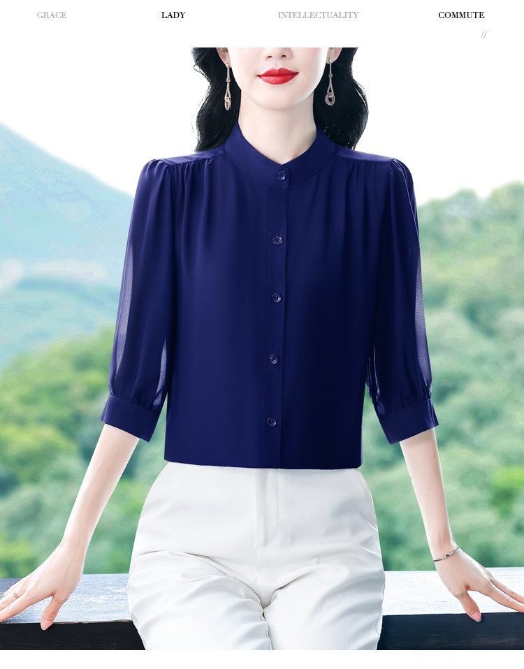 圆领七分袖衬衫女宽松春夏新款洋气百搭减龄妈妈上衣中袖雪纺衬衣