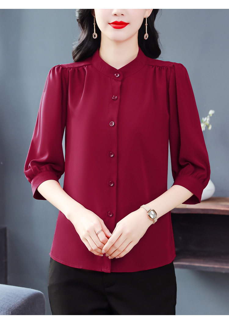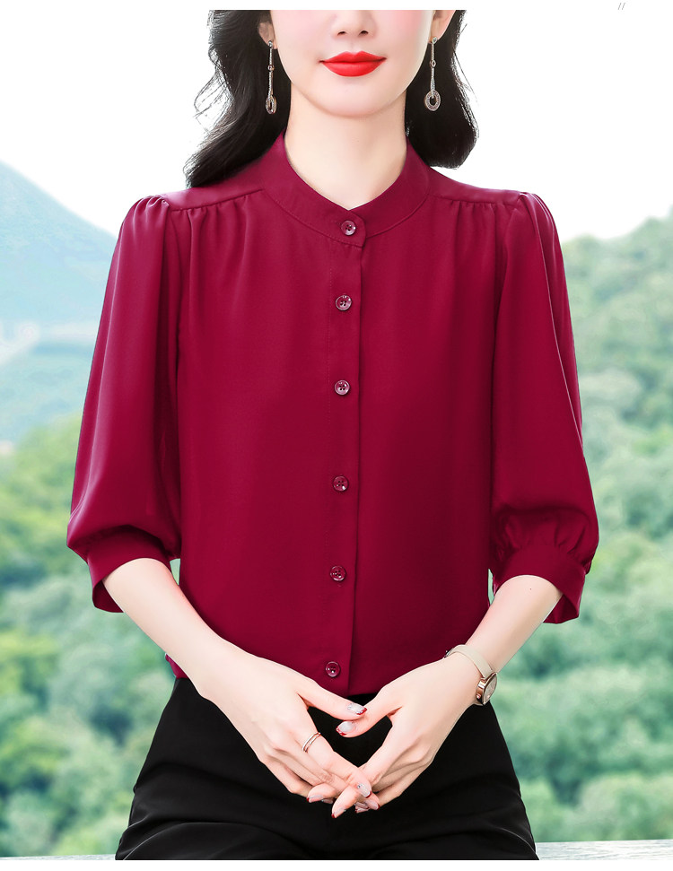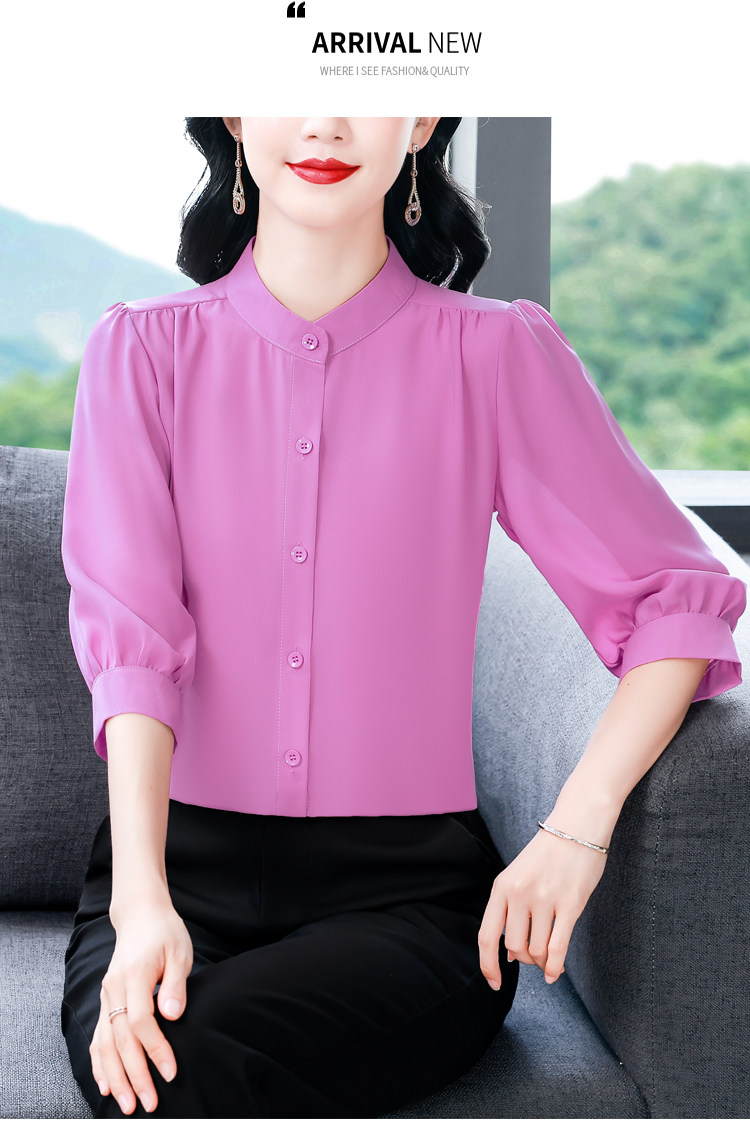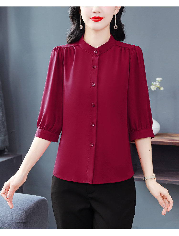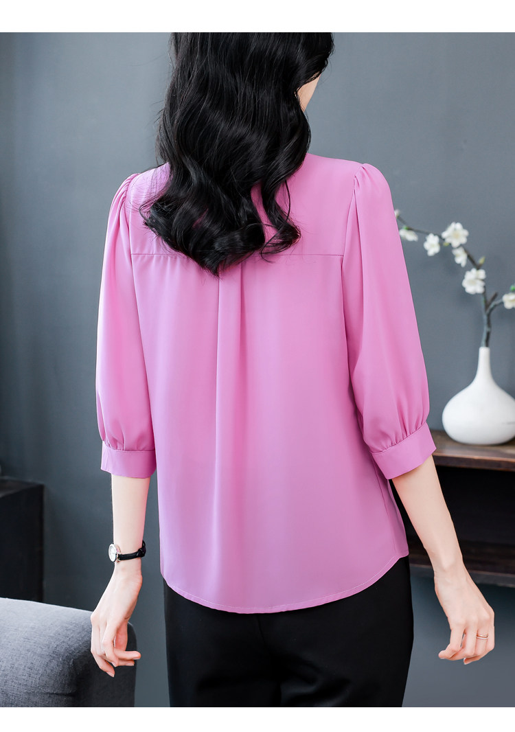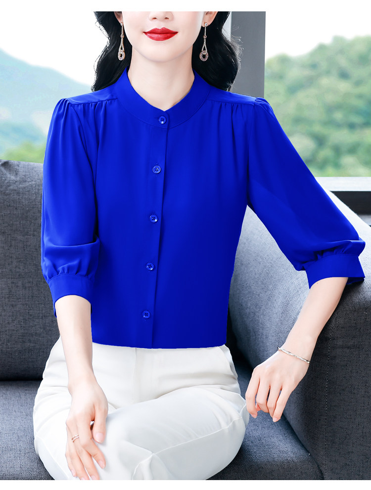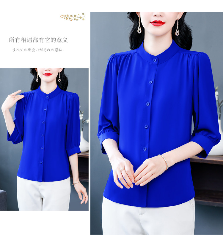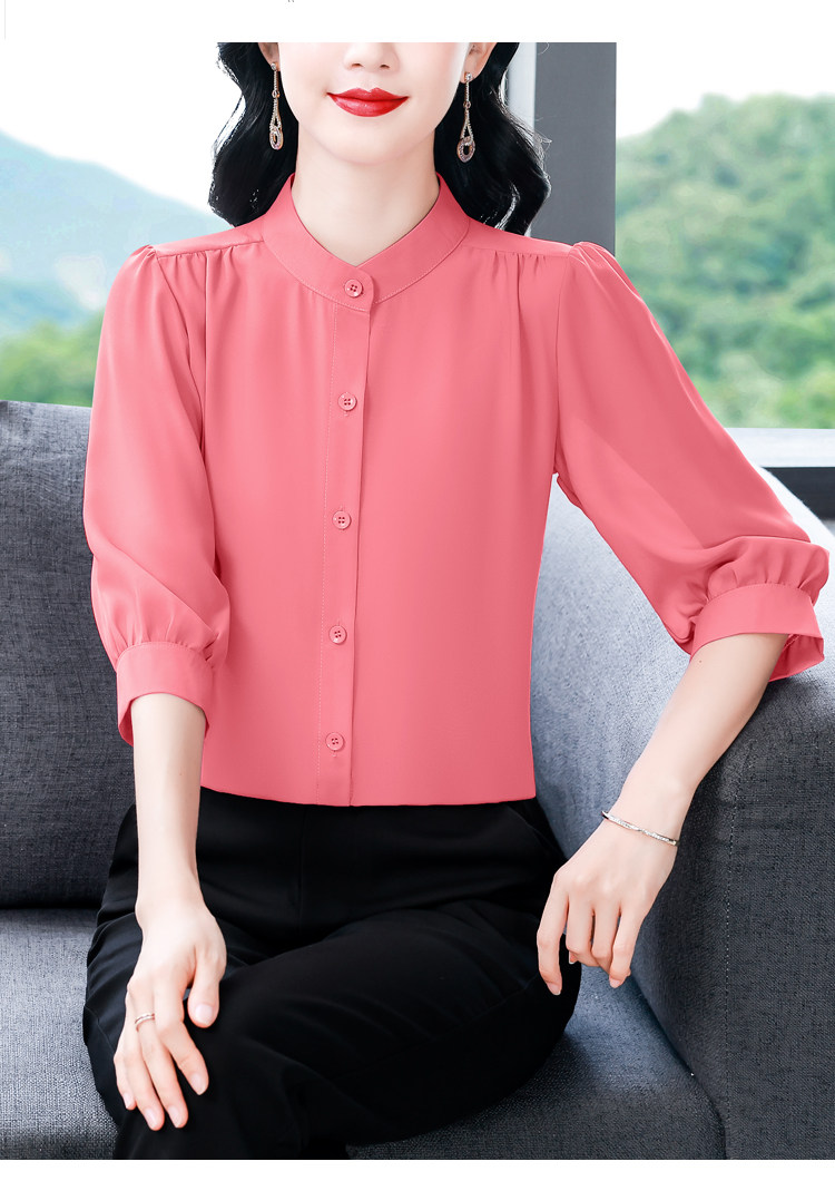 圆领七分袖衬衫女宽松春夏新款洋气百搭减龄妈妈上衣中袖雪纺衬衣