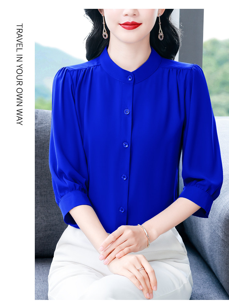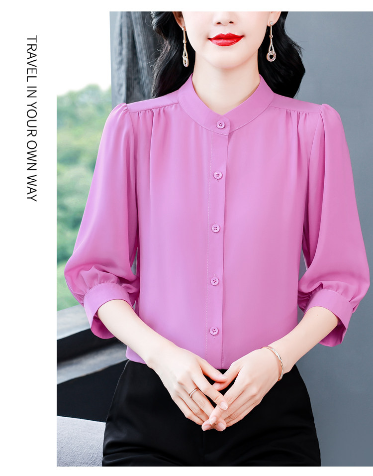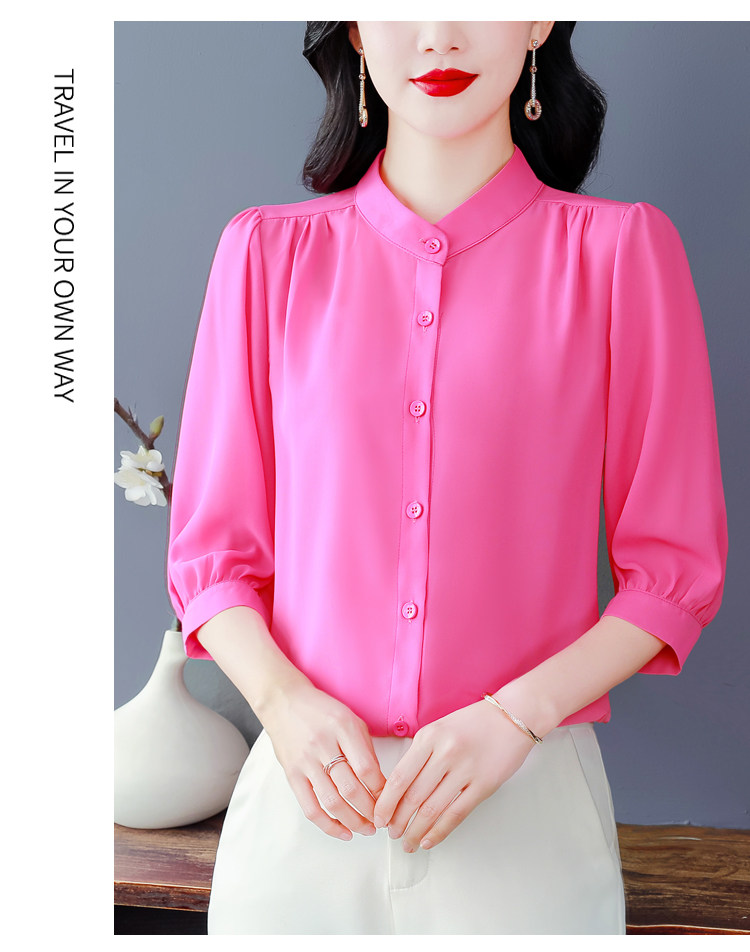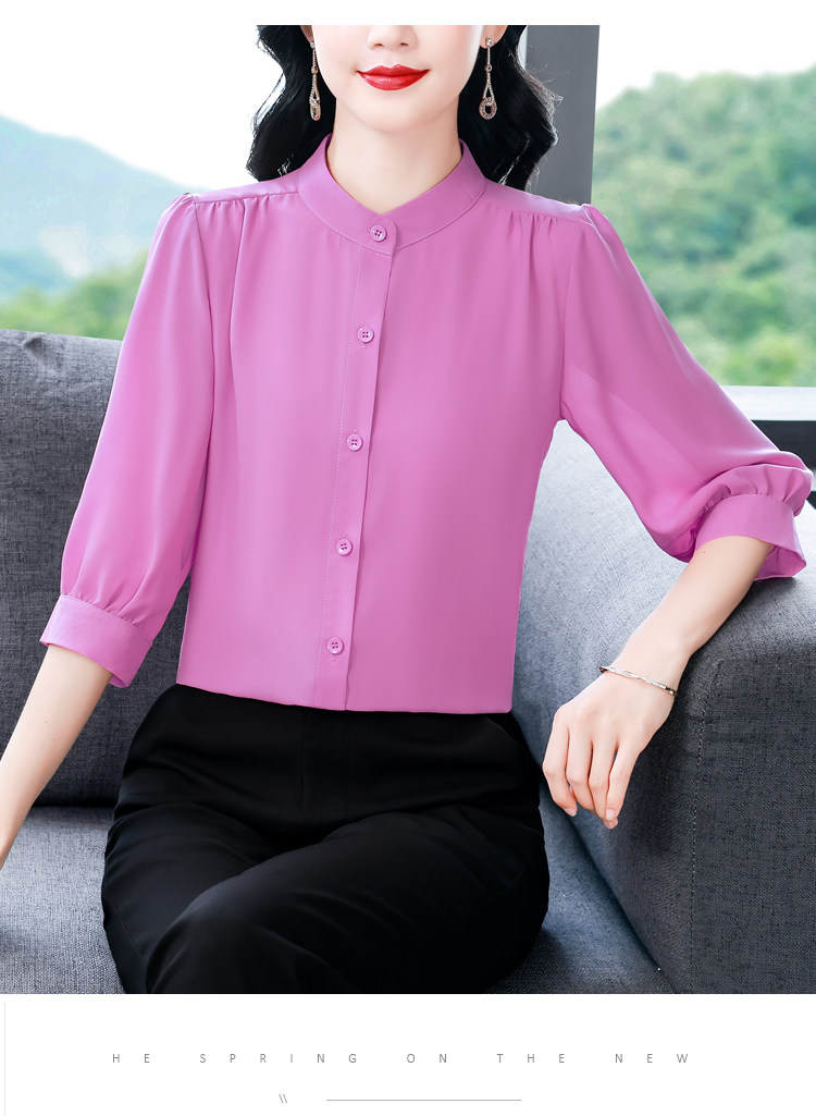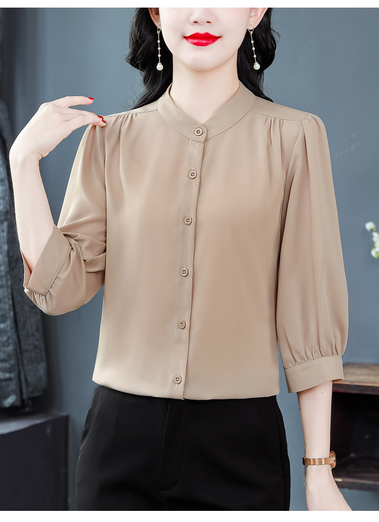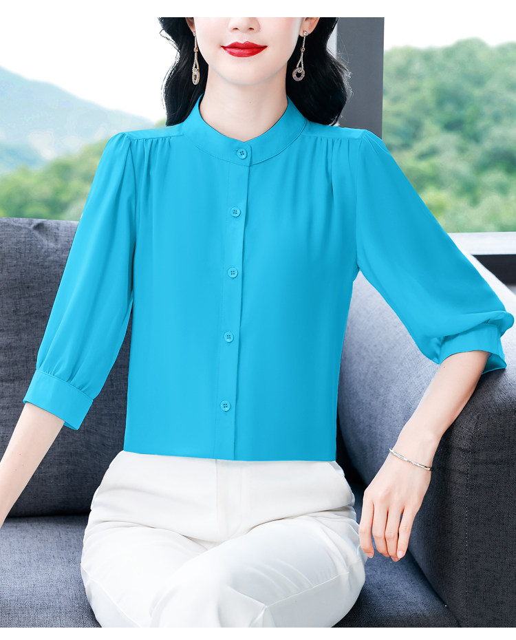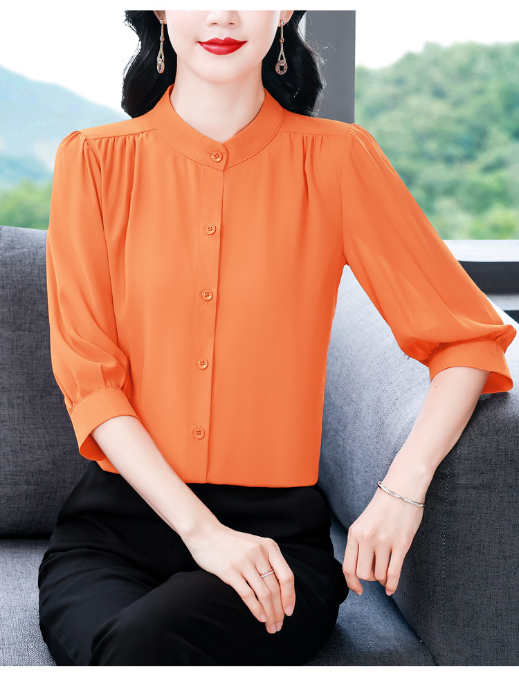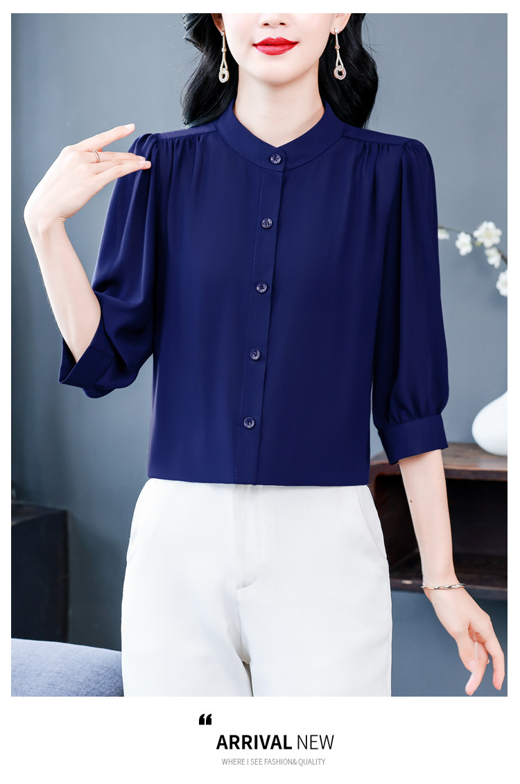圆领七分袖衬衫女宽松春夏新款洋气百搭减龄妈妈上衣中袖雪纺衬衣