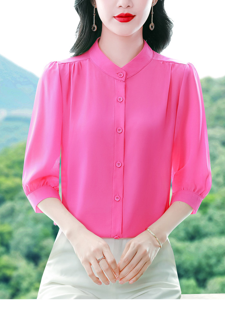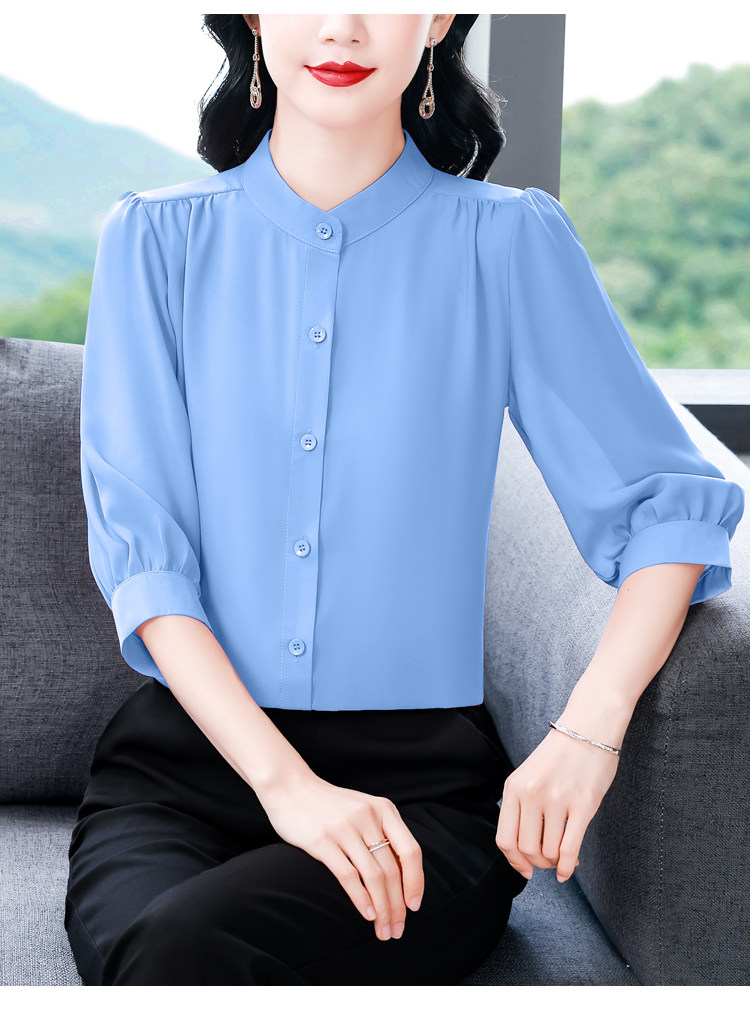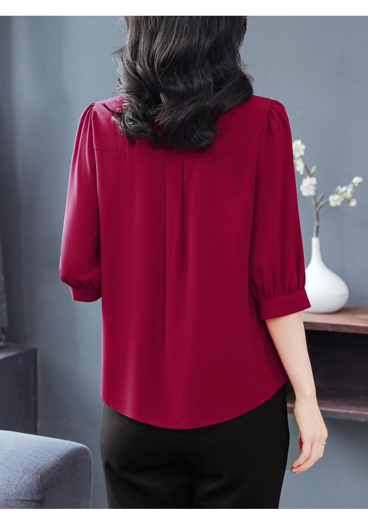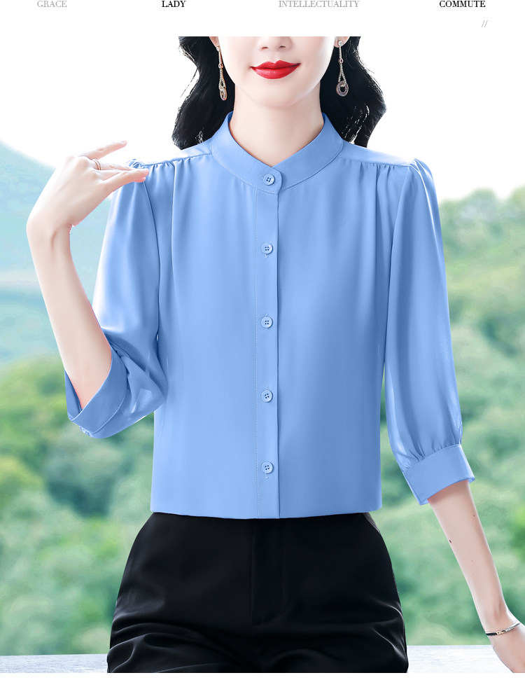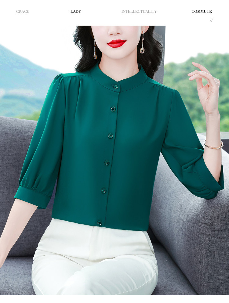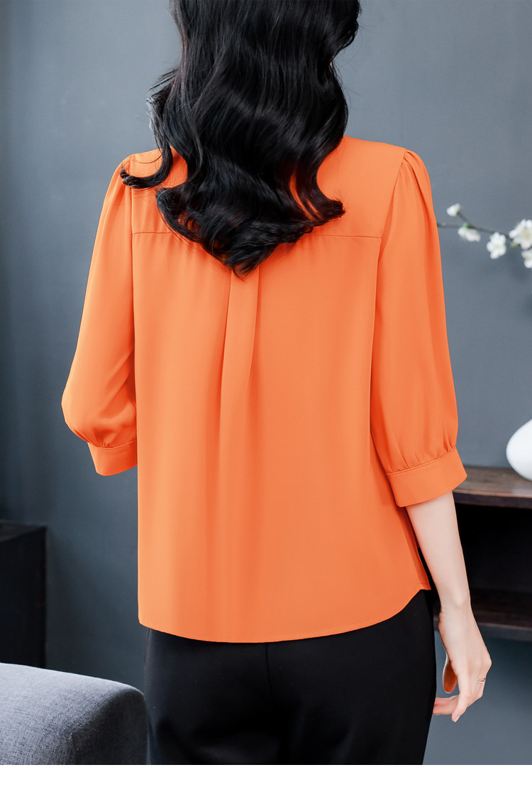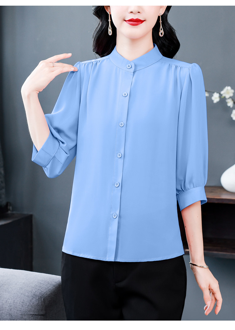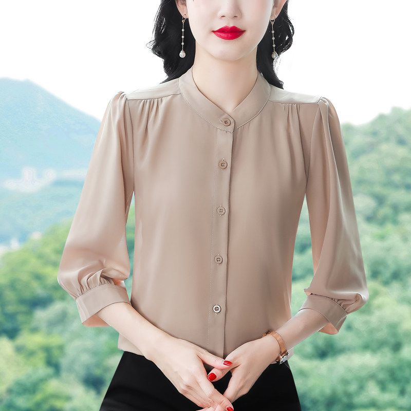 圆领七分袖衬衫女宽松春夏新款洋气百搭减龄妈妈上衣中袖雪纺衬衣