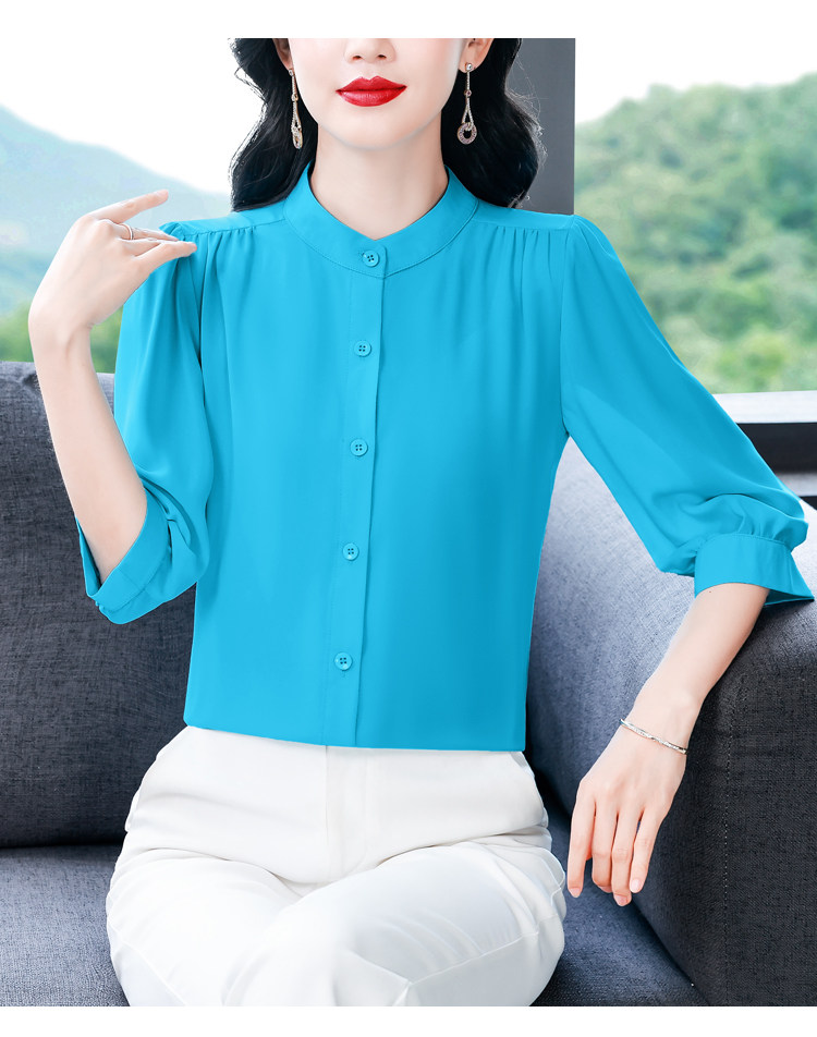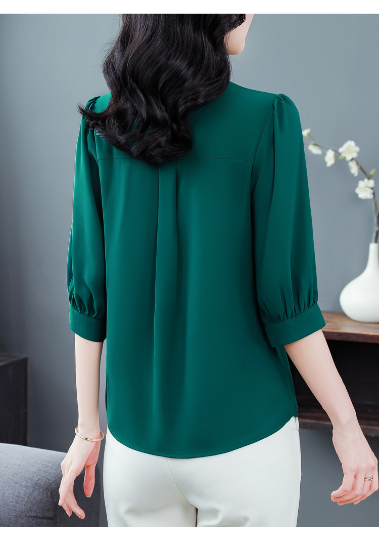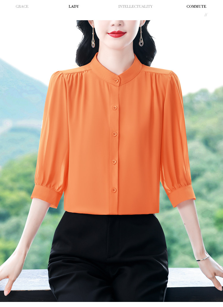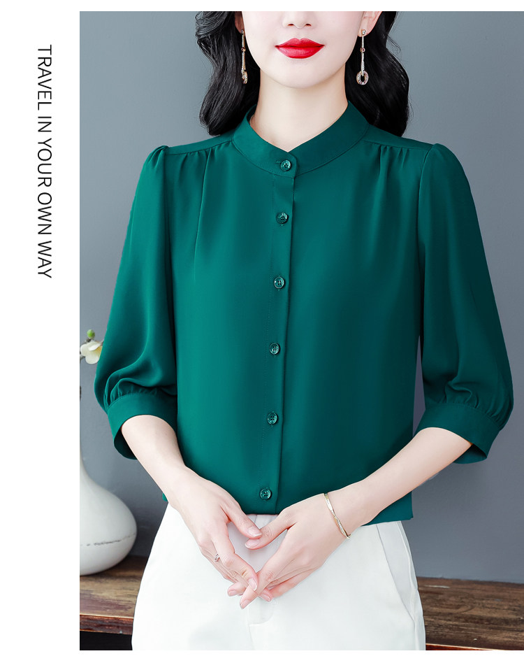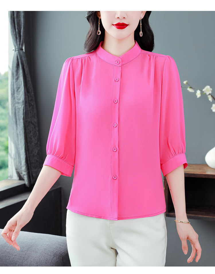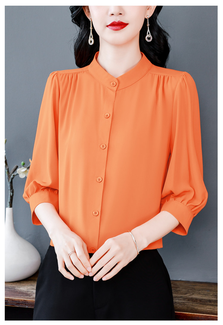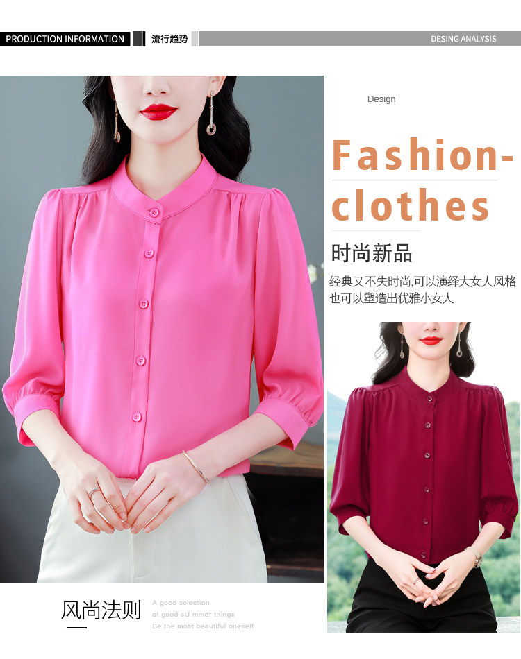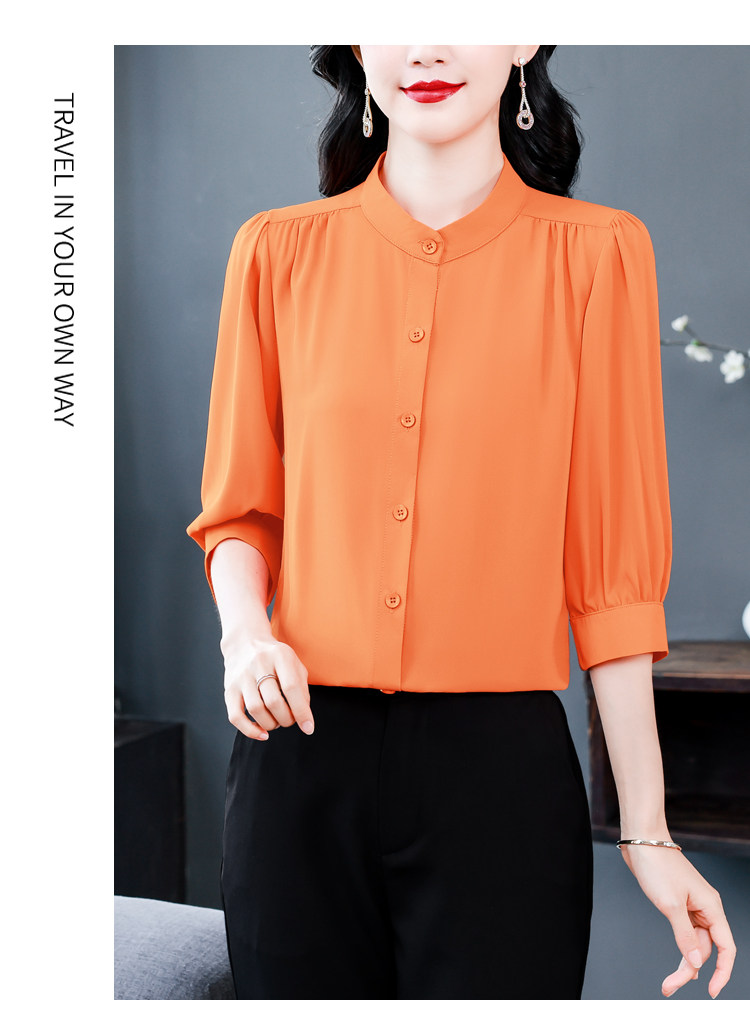 圆领七分袖衬衫女宽松春夏新款洋气百搭减龄妈妈上衣中袖雪纺衬衣