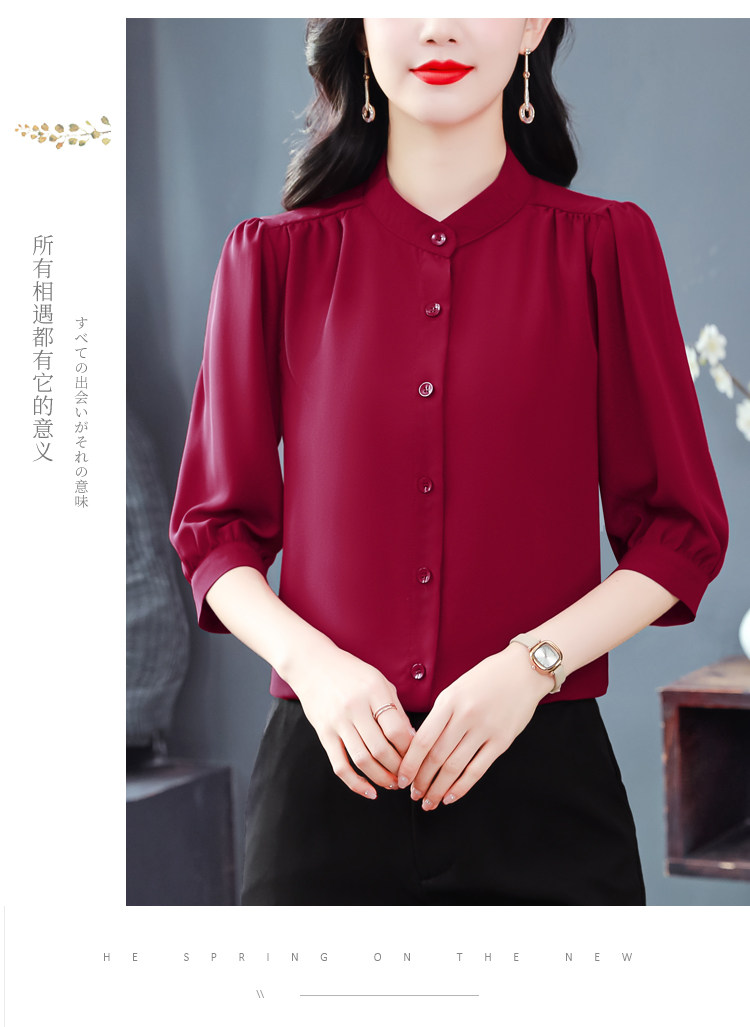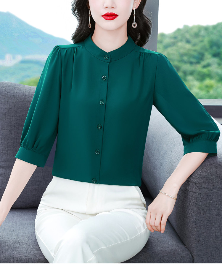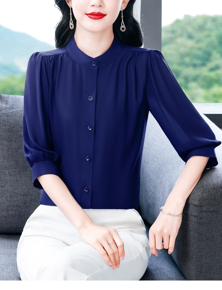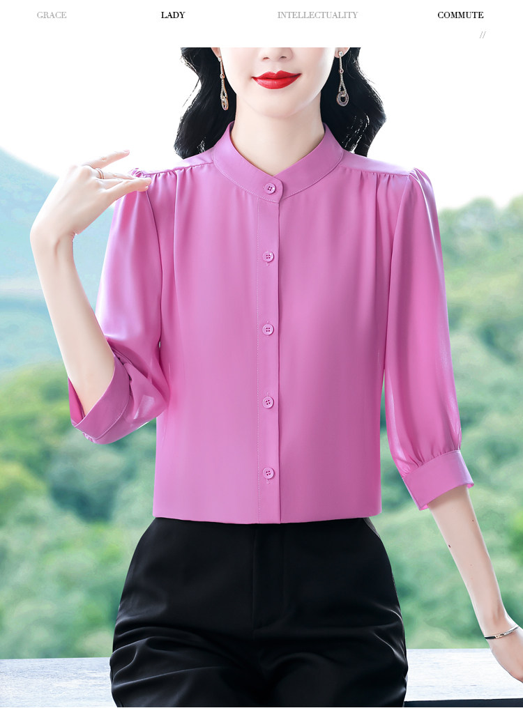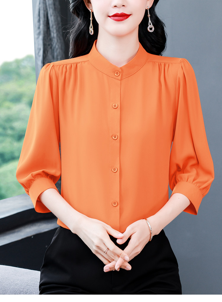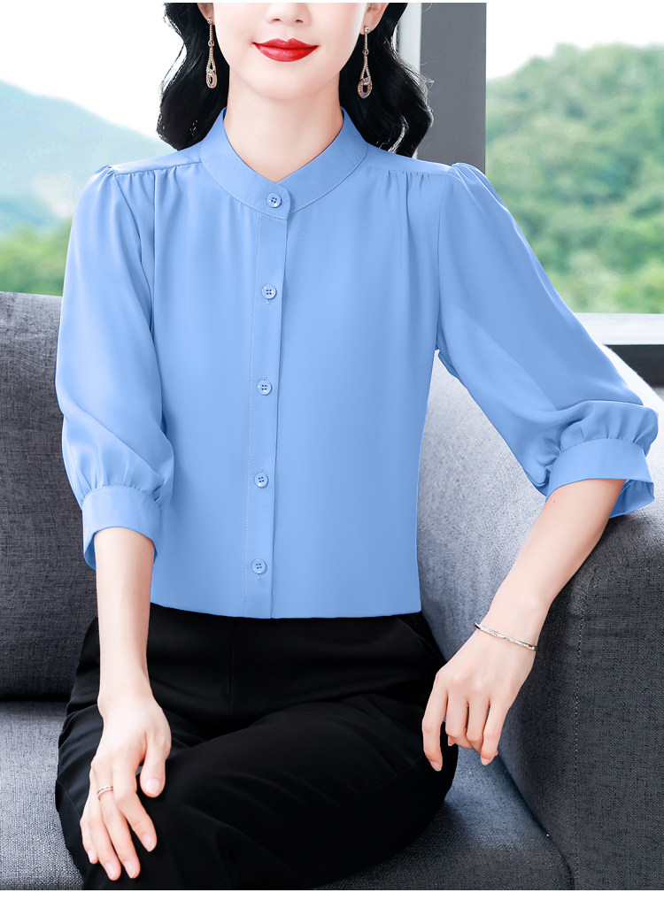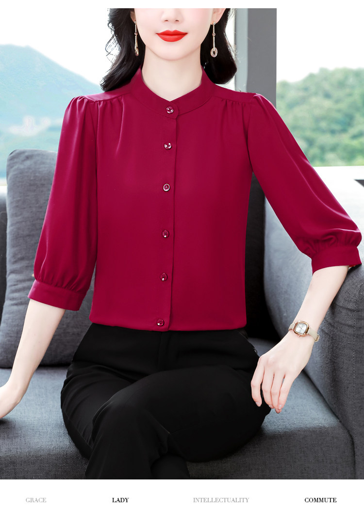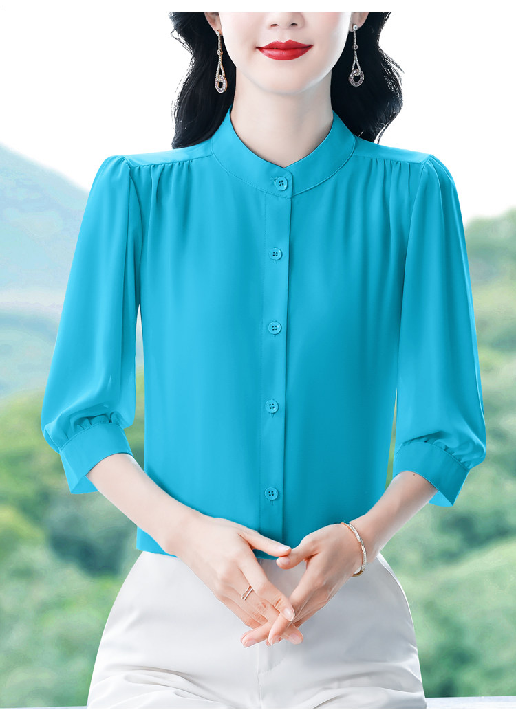 圆领七分袖衬衫女宽松春夏新款洋气百搭减龄妈妈上衣中袖雪纺衬衣