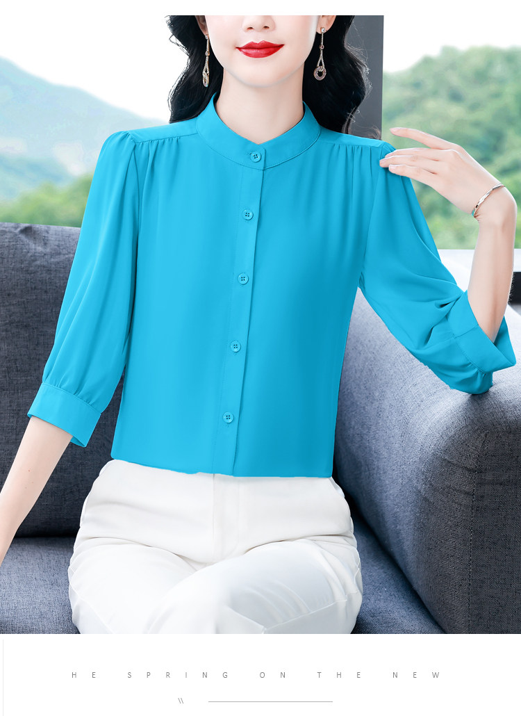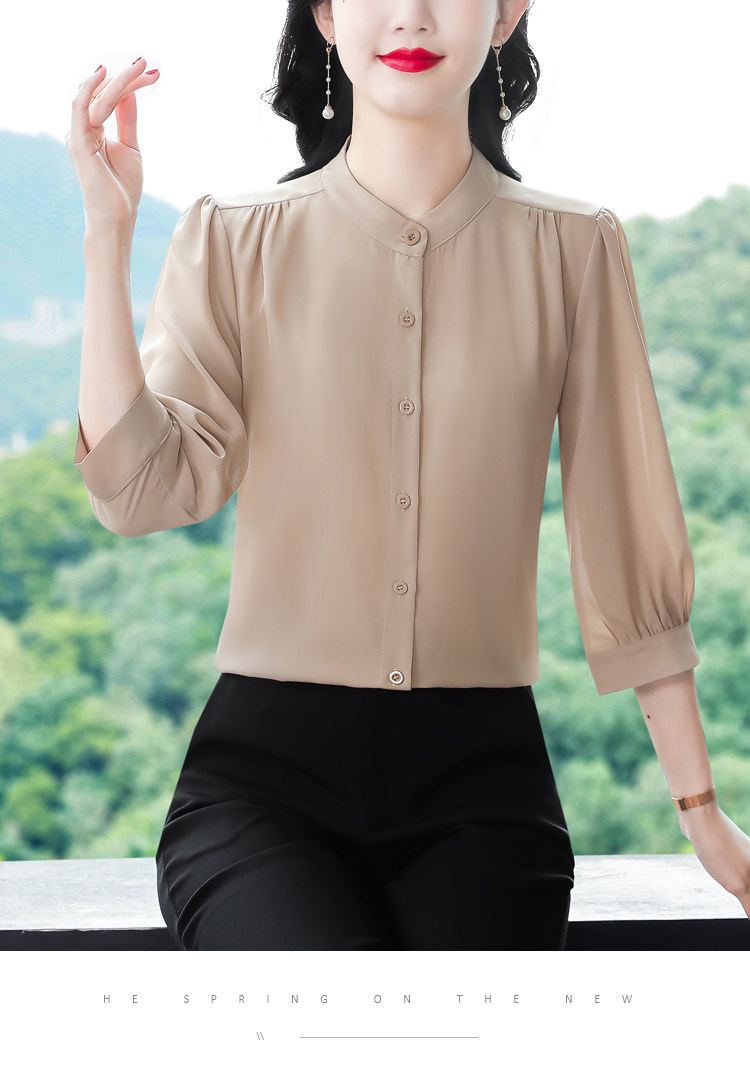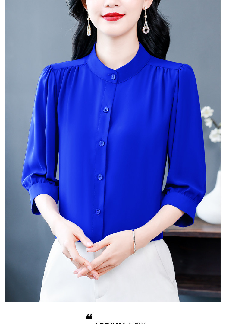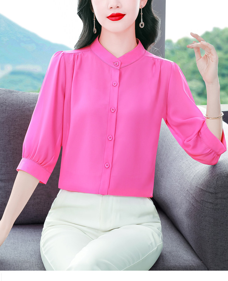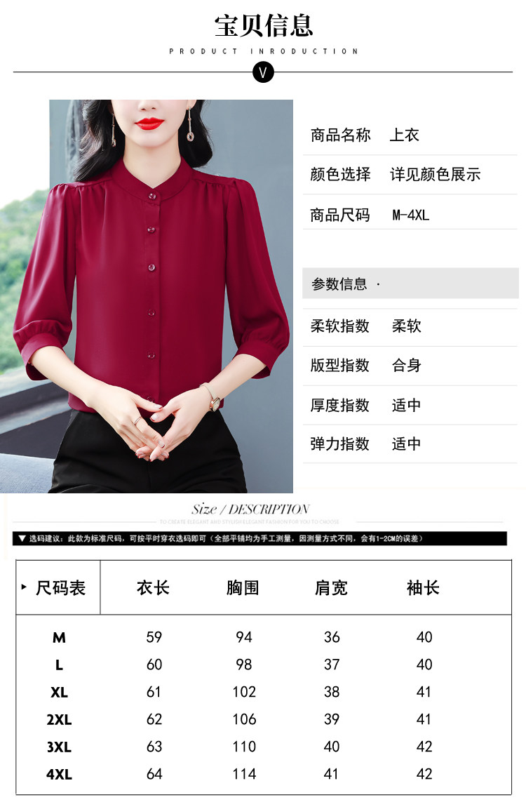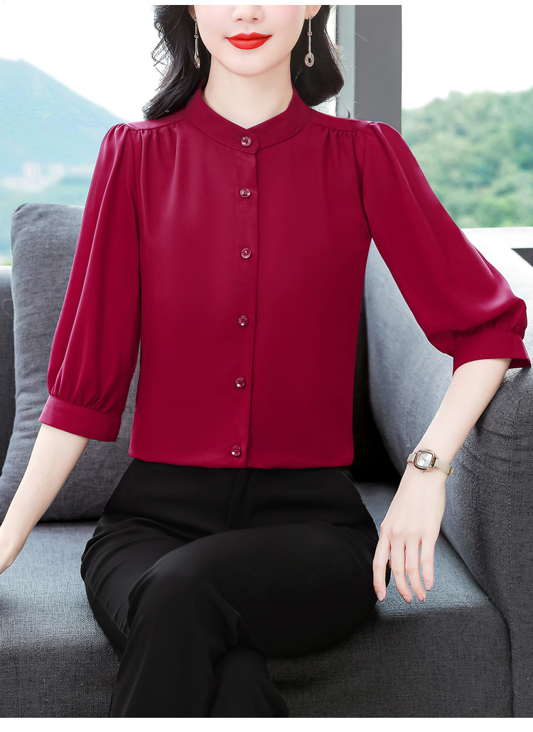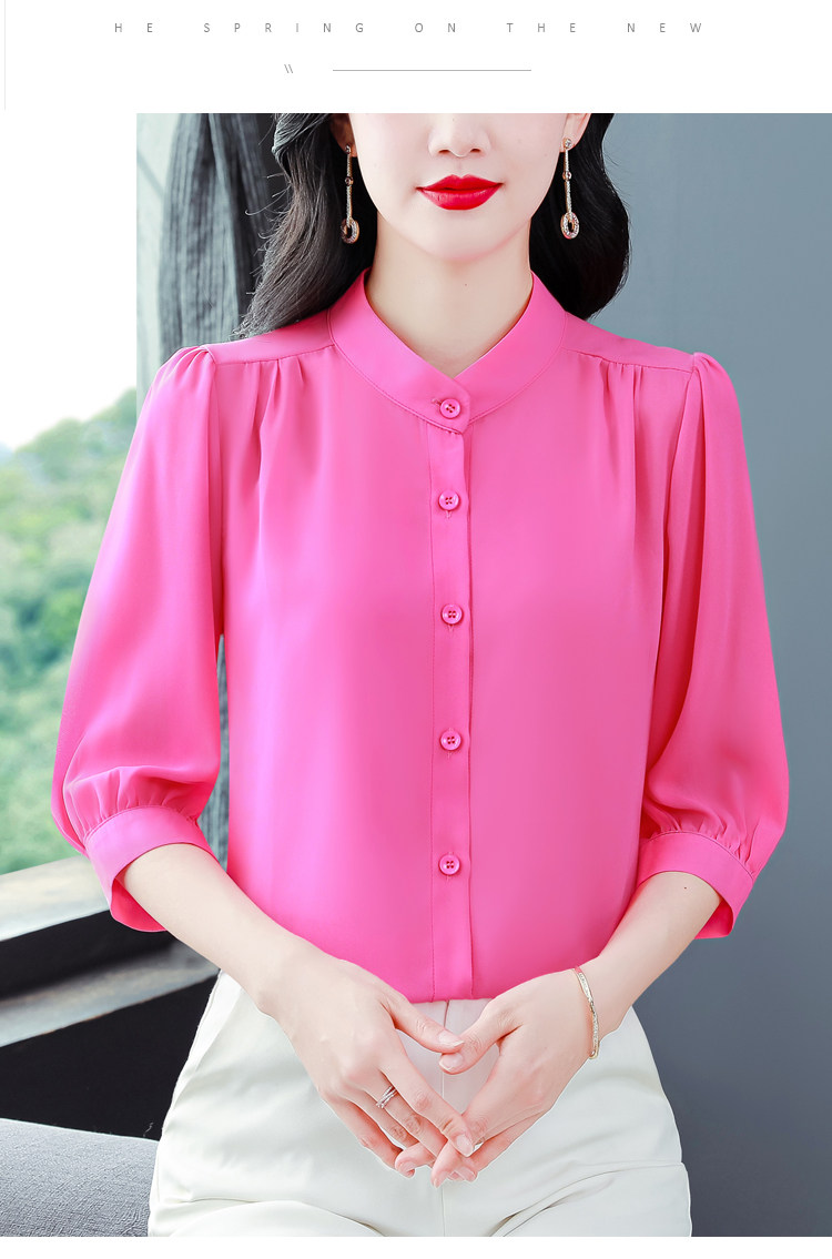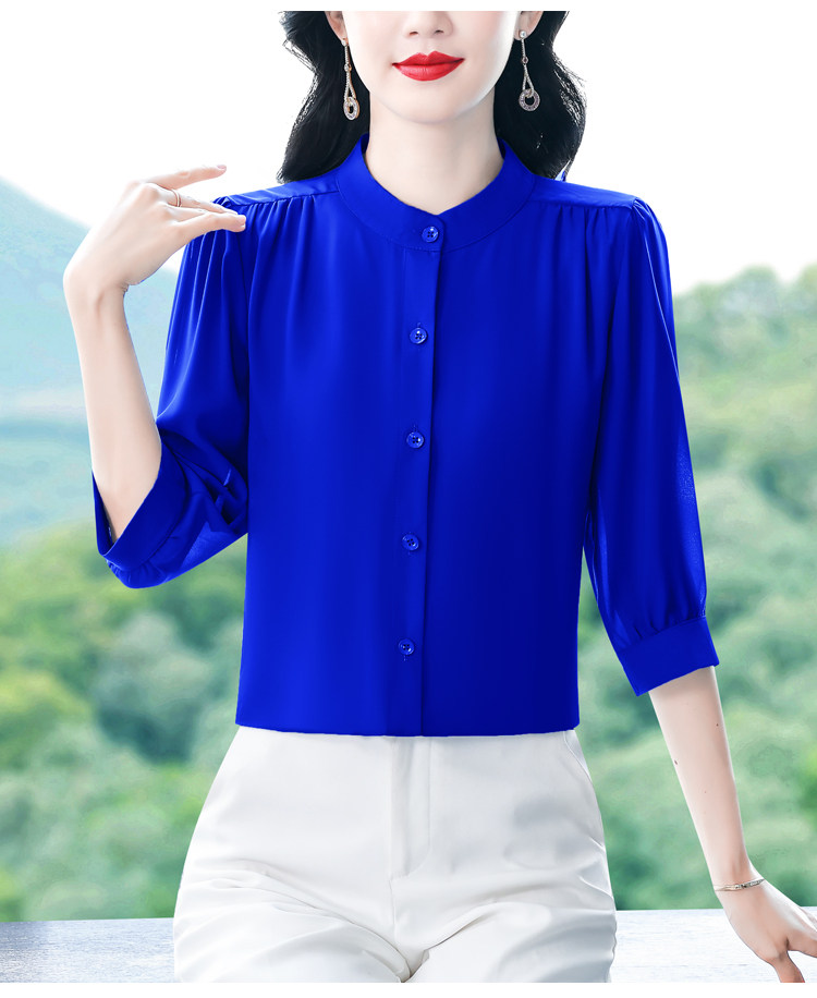 圆领七分袖衬衫女宽松春夏新款洋气百搭减龄妈妈上衣中袖雪纺衬衣