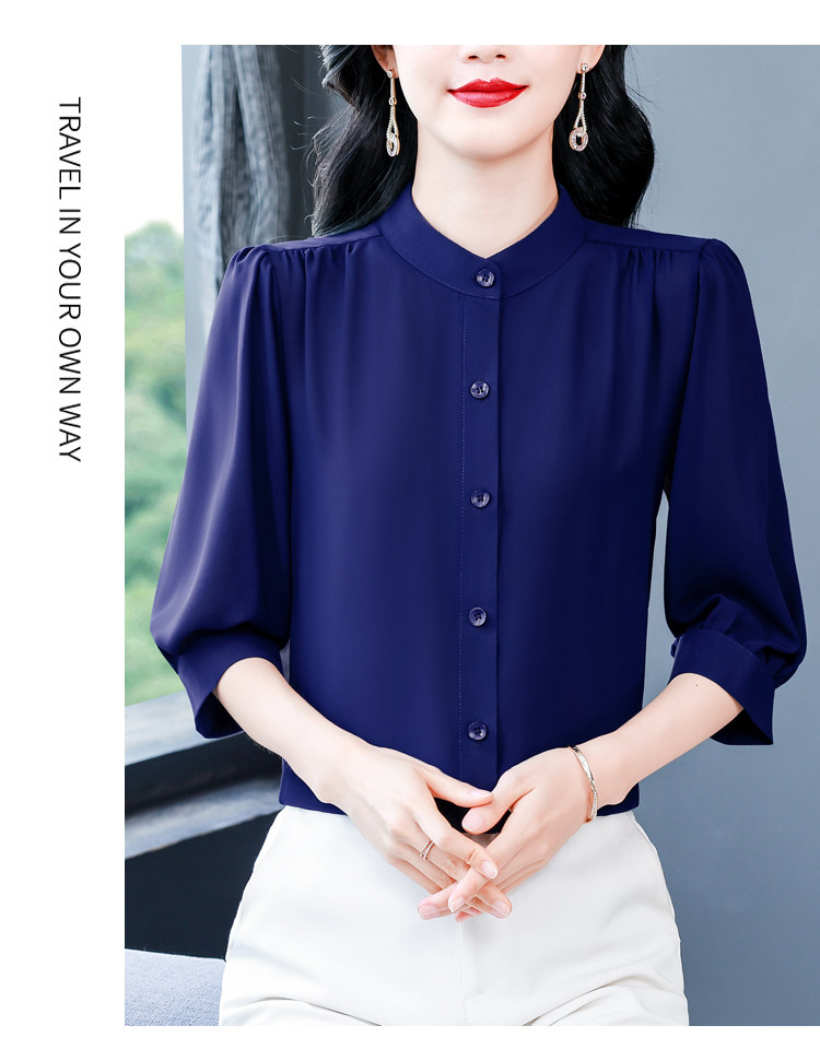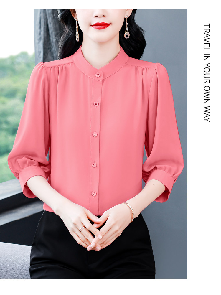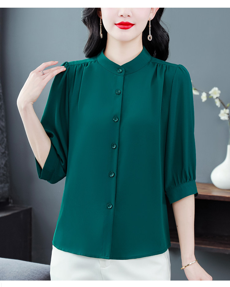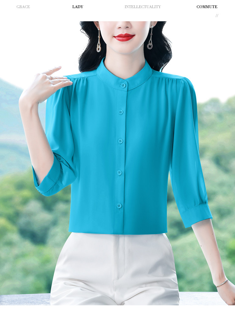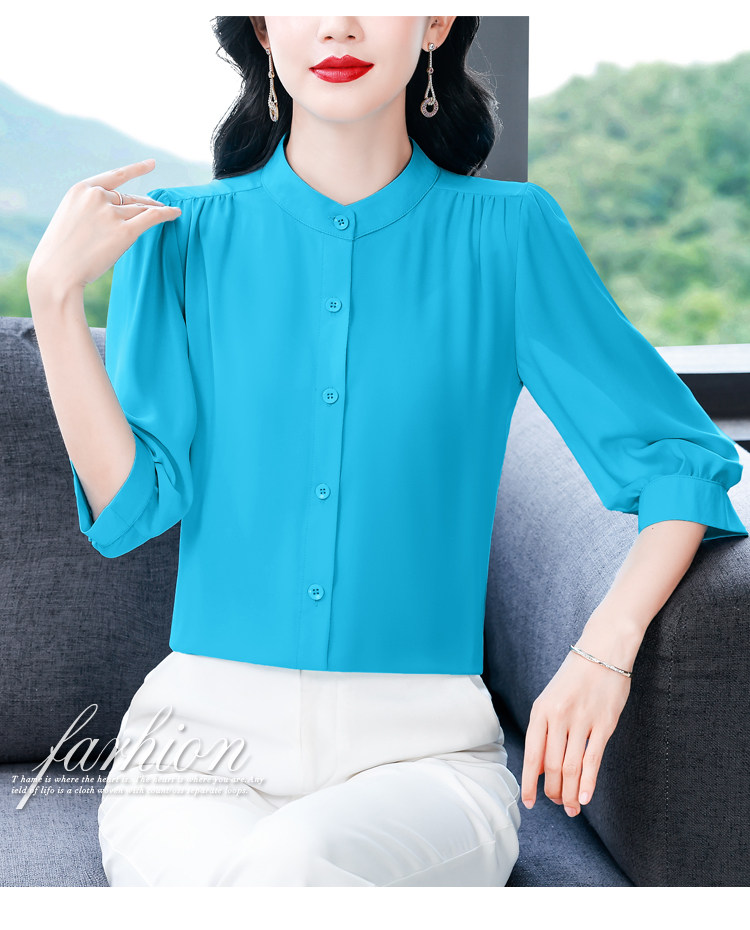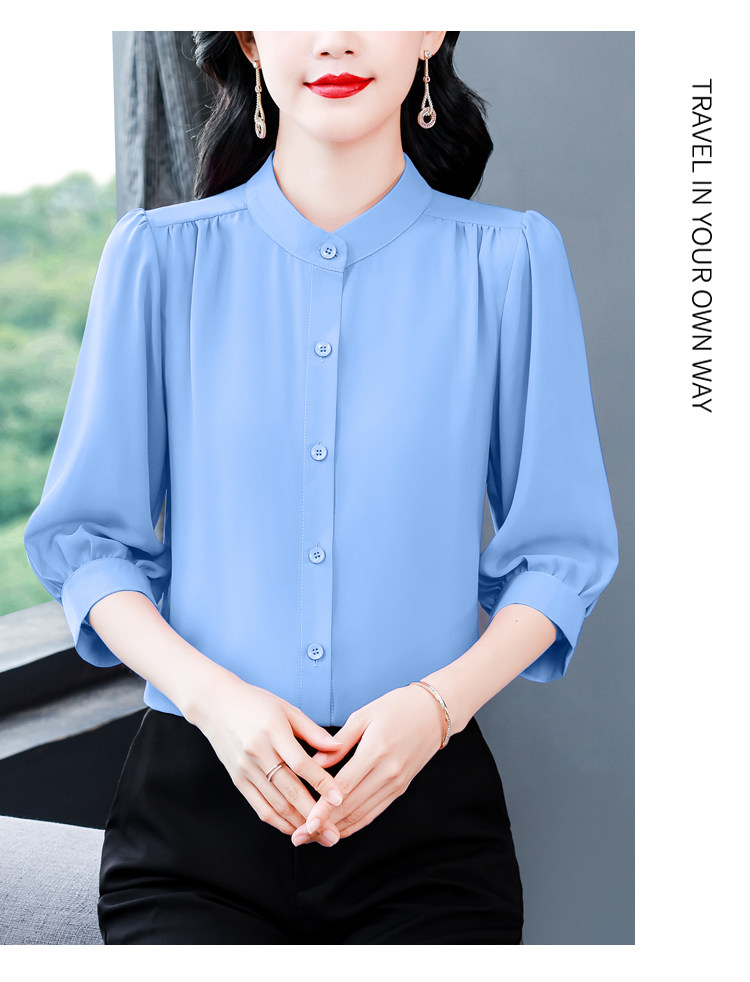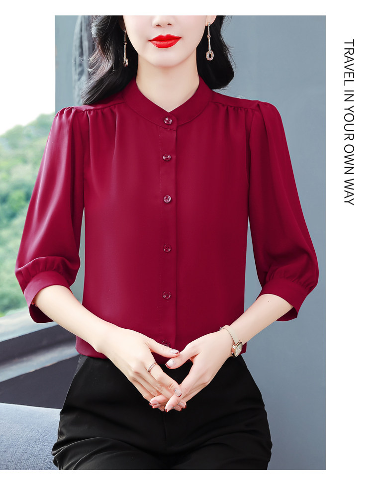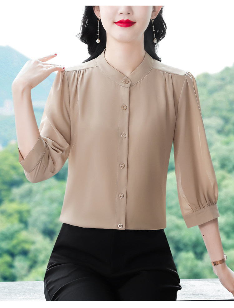 圆领七分袖衬衫女宽松春夏新款洋气百搭减龄妈妈上衣中袖雪纺衬衣