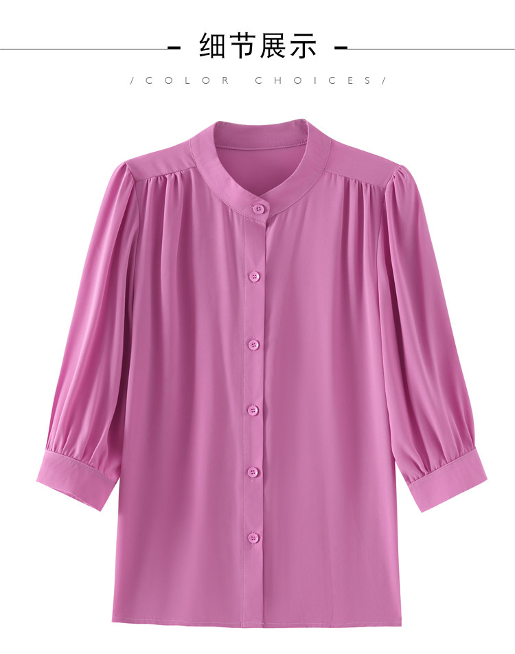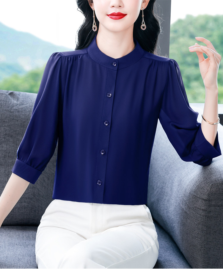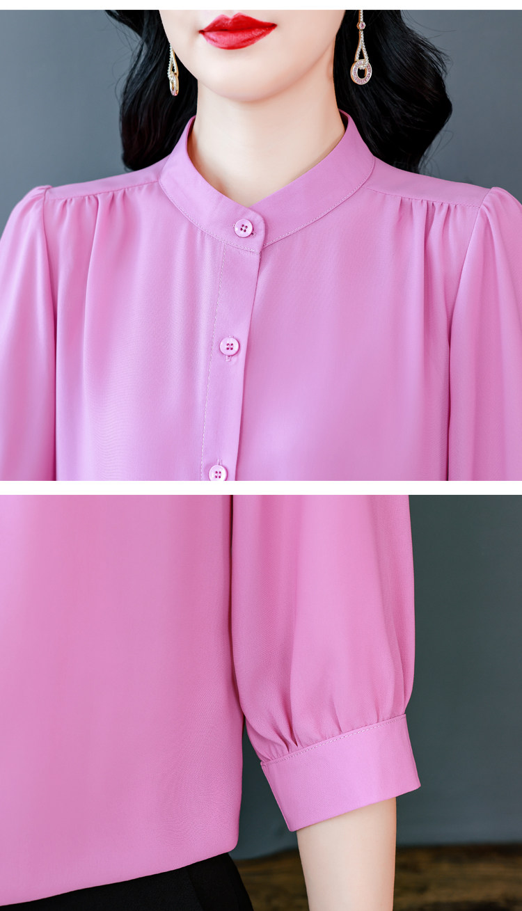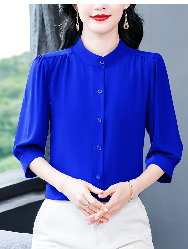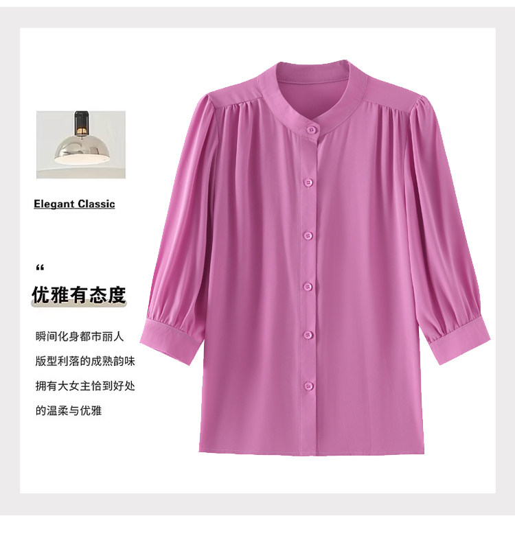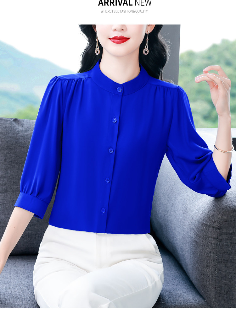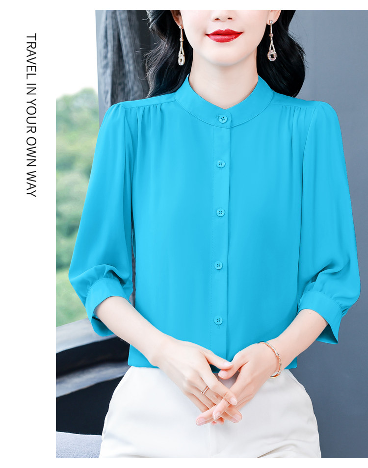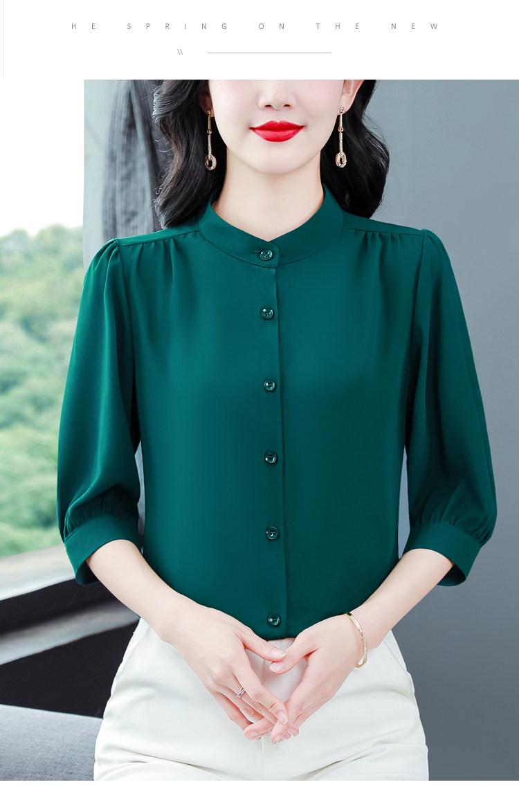 圆领七分袖衬衫女宽松春夏新款洋气百搭减龄妈妈上衣中袖雪纺衬衣