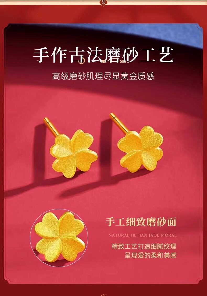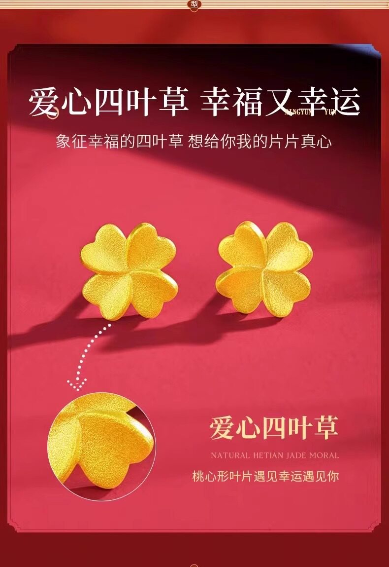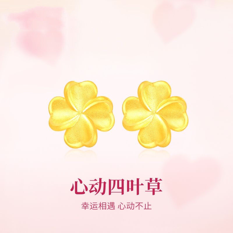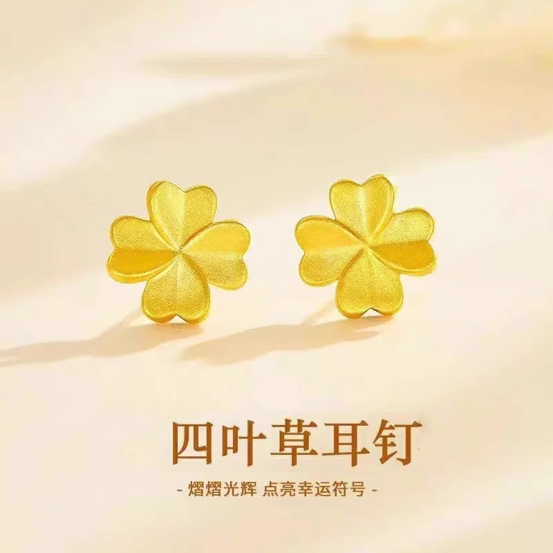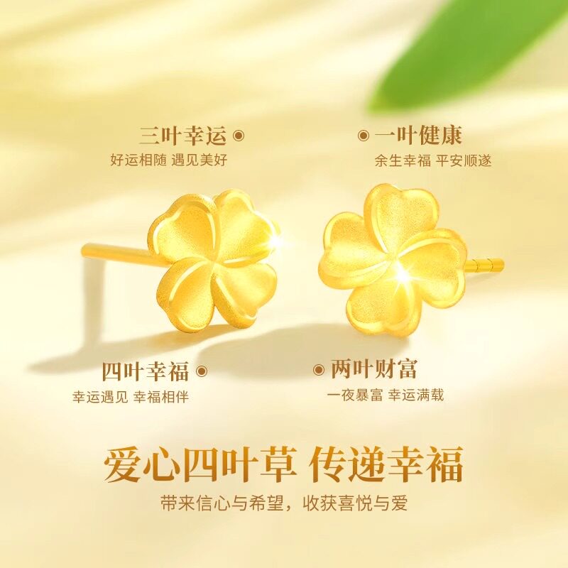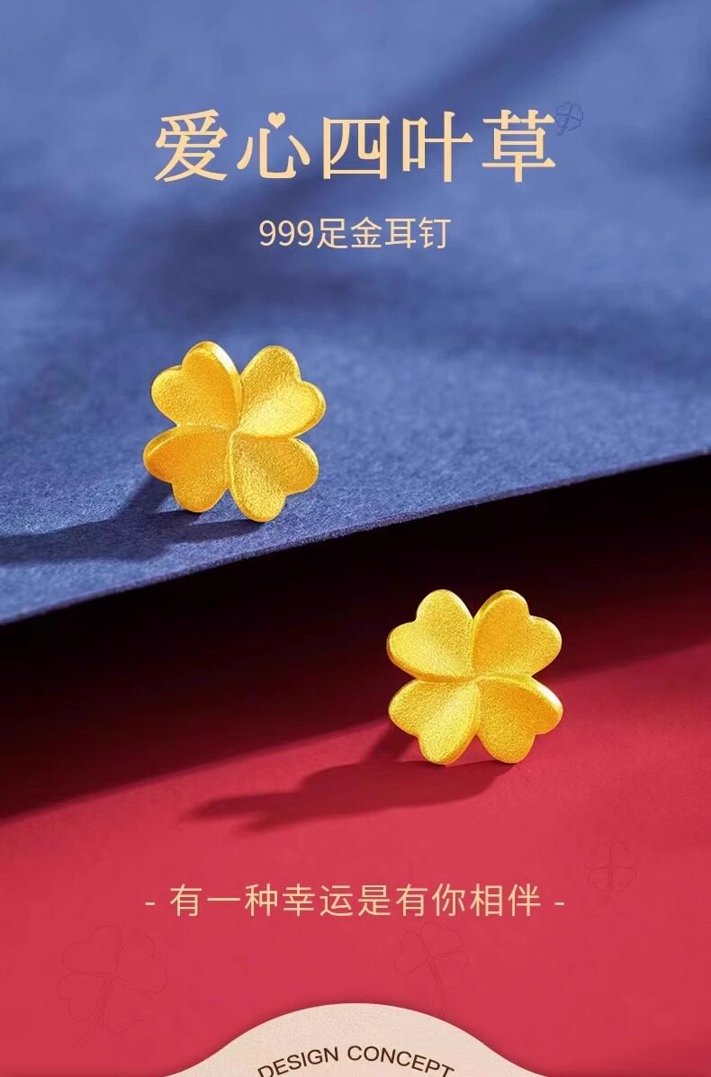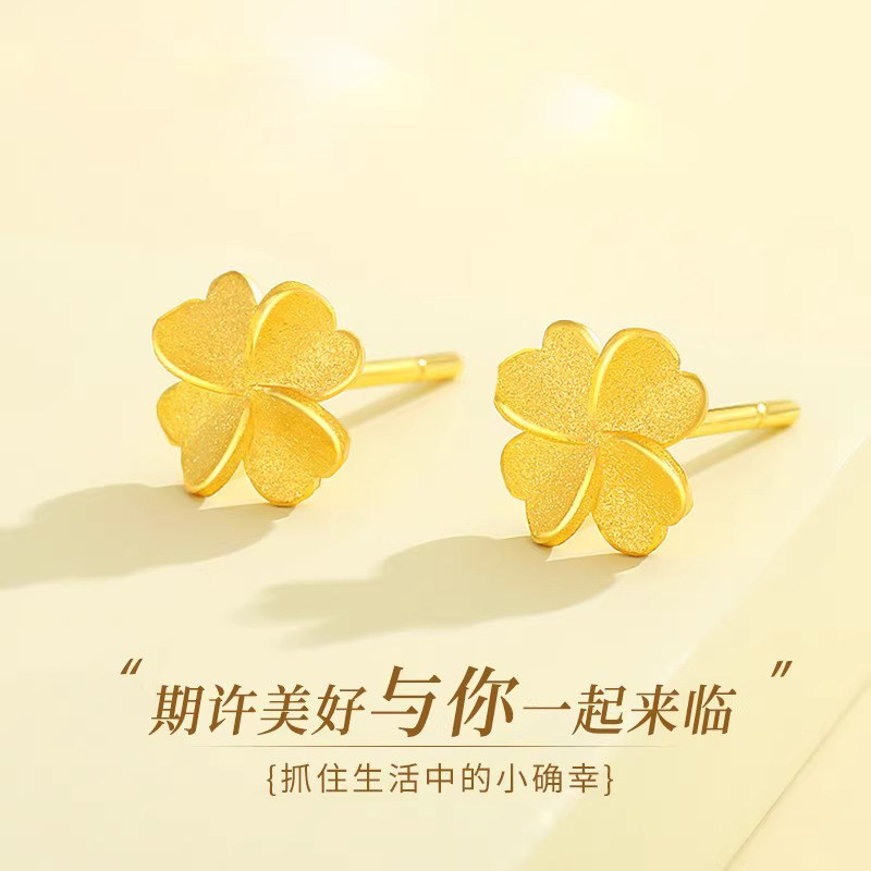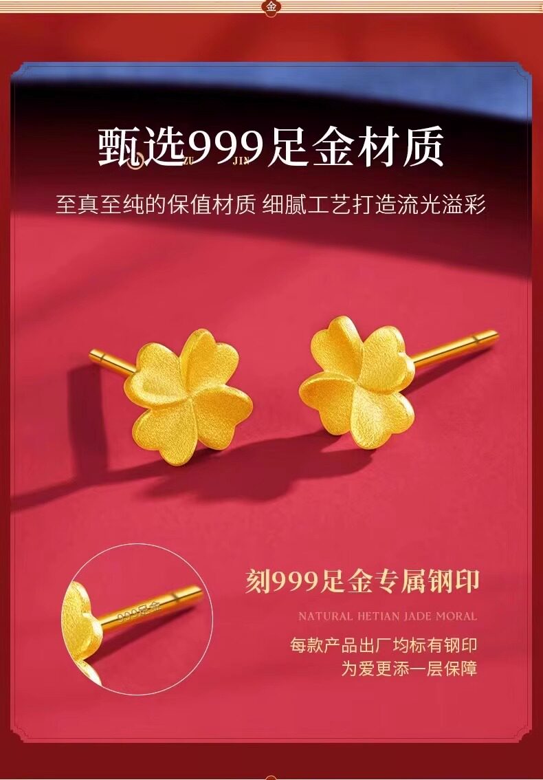 中国金店黄金四叶草幸运草耳钉女耳环999足金包银耳饰送女友礼物