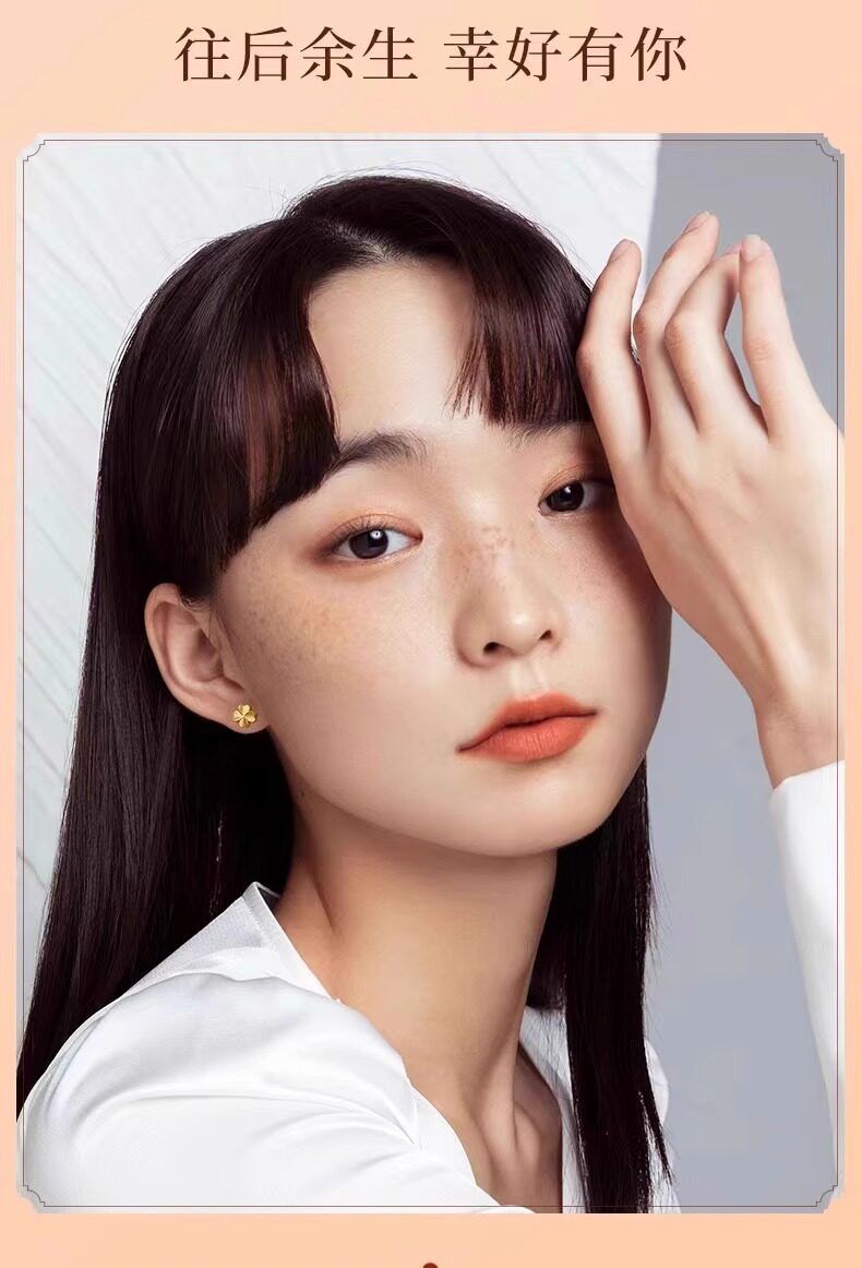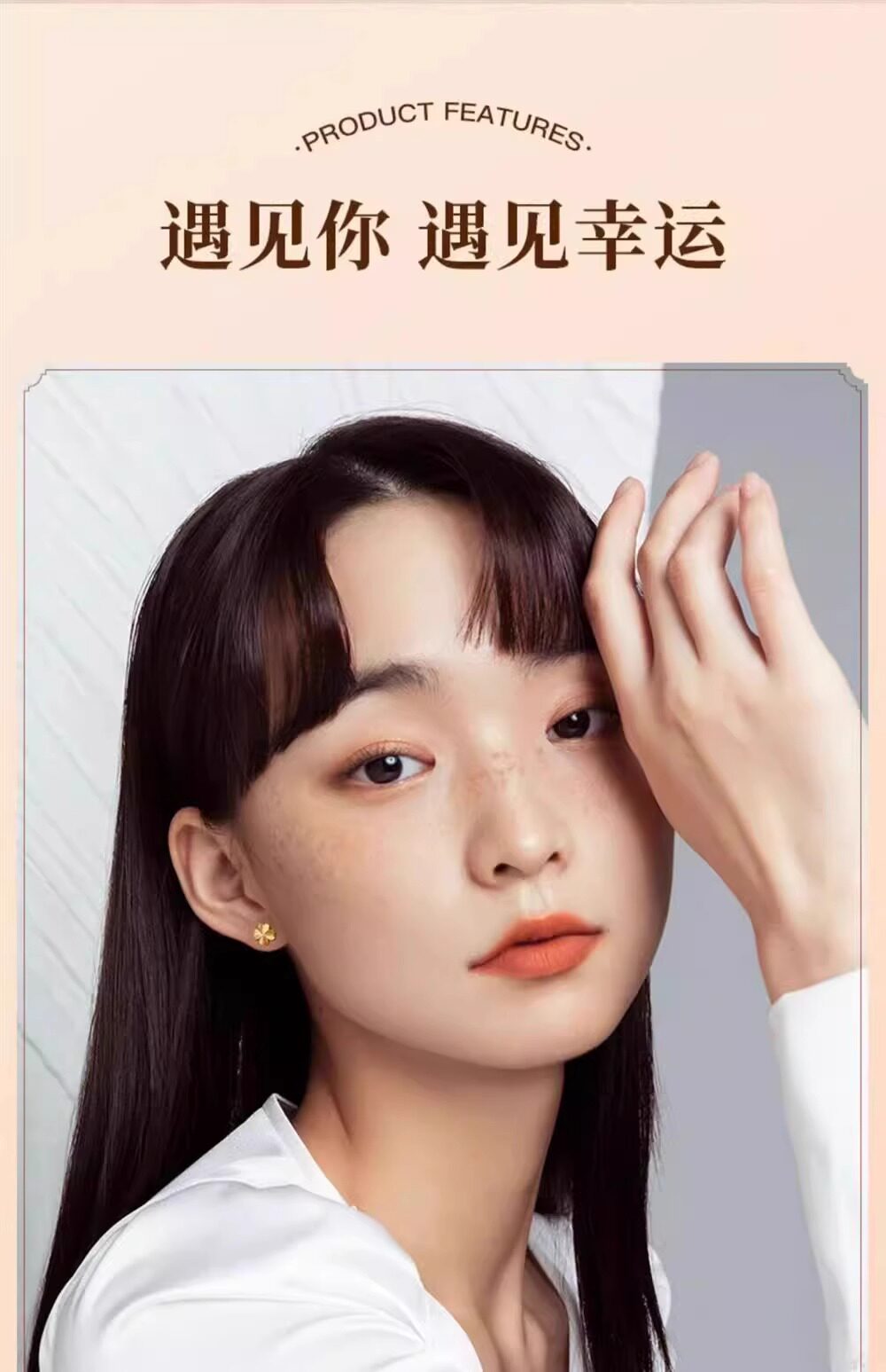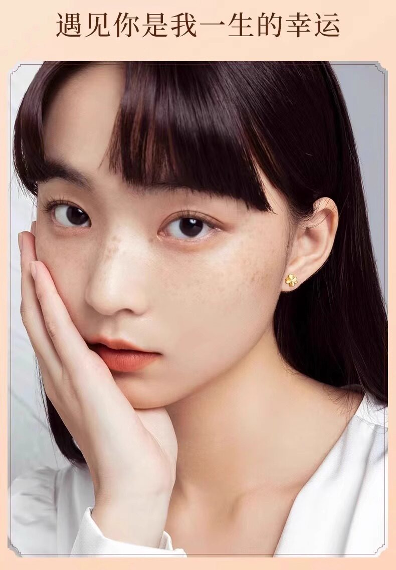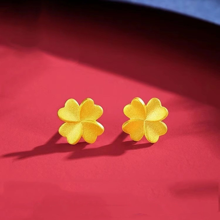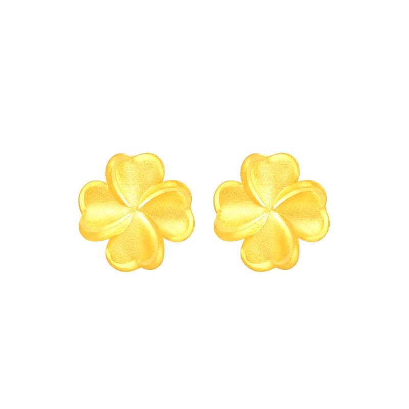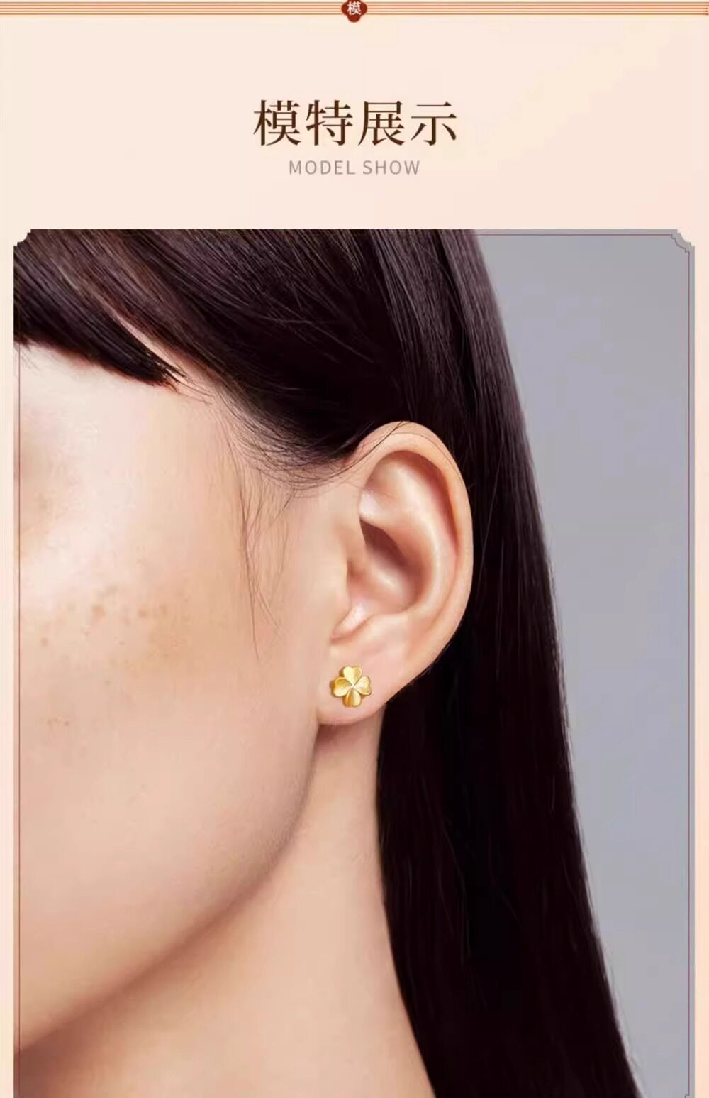 中国金店黄金四叶草幸运草耳钉女耳环999足金包银耳饰送女友礼物
