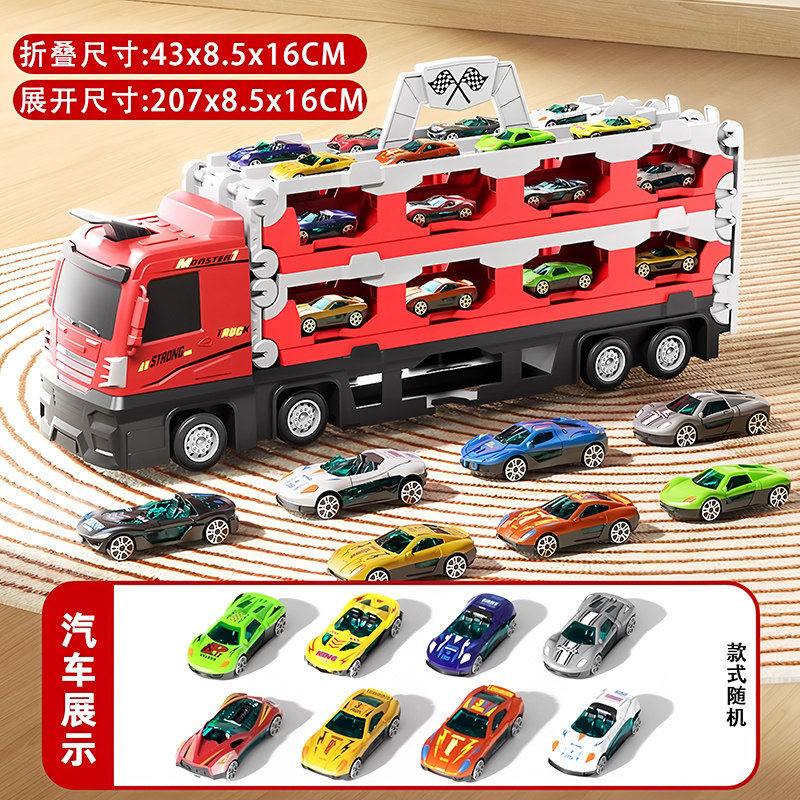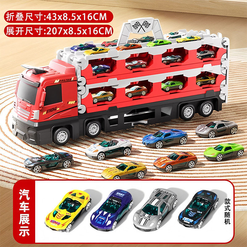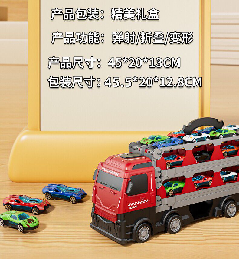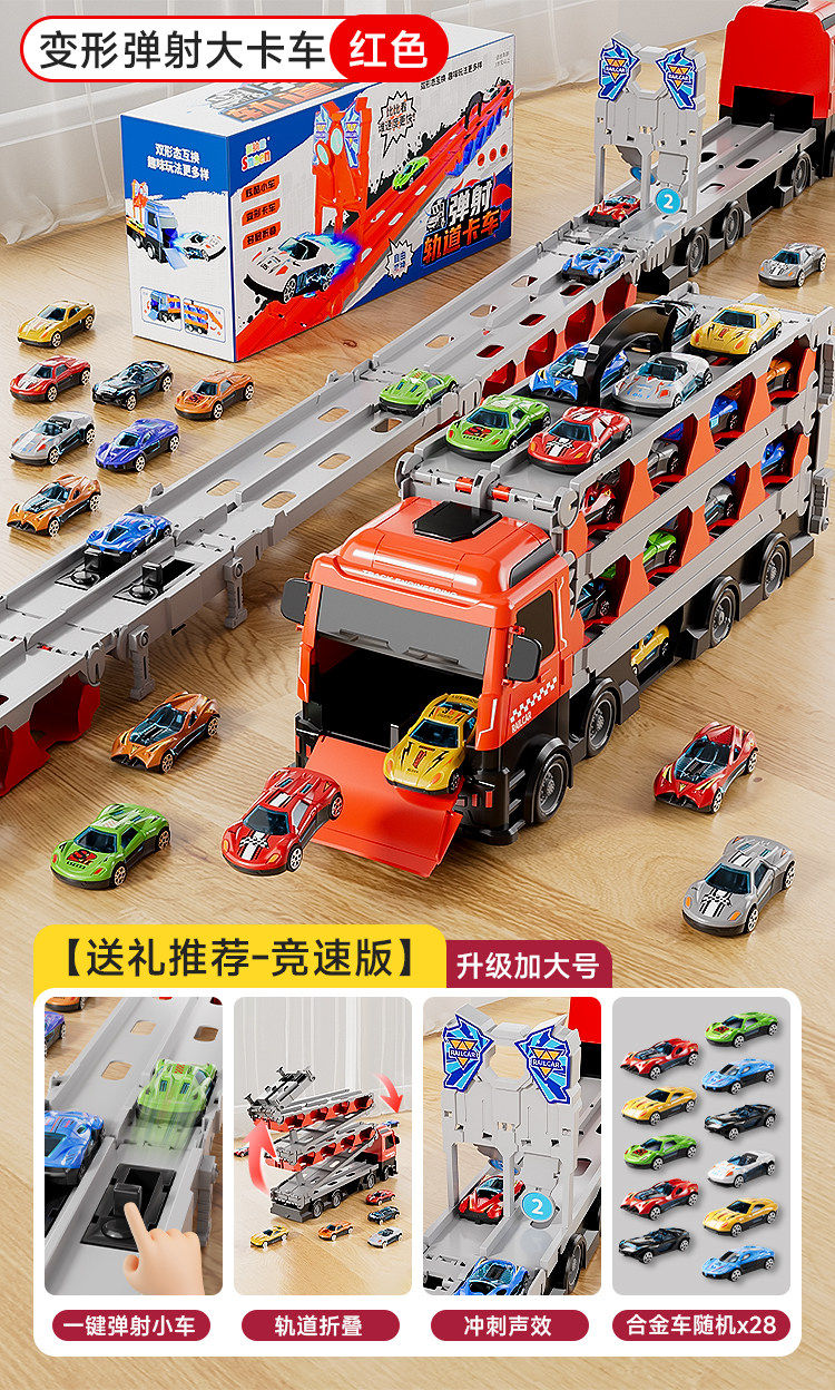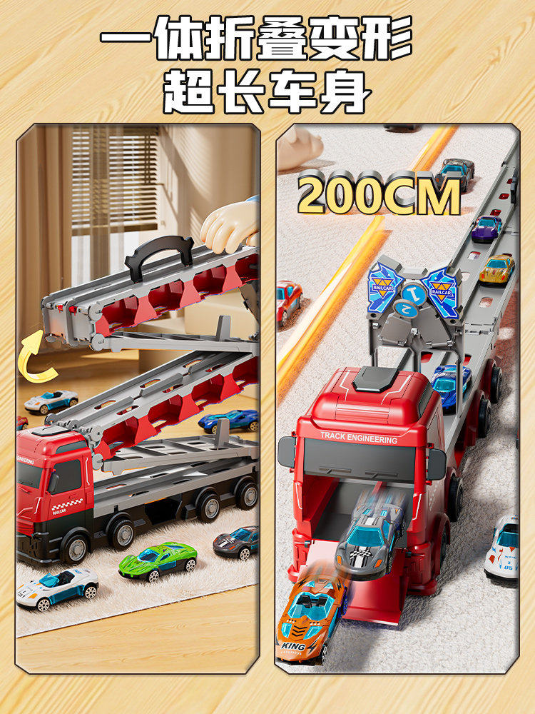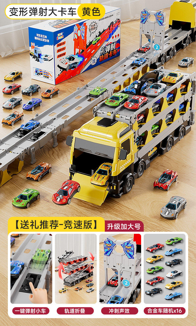 儿童变形弹射大卡车轨道车货车合金小汽车收纳工程车男孩礼物3岁6