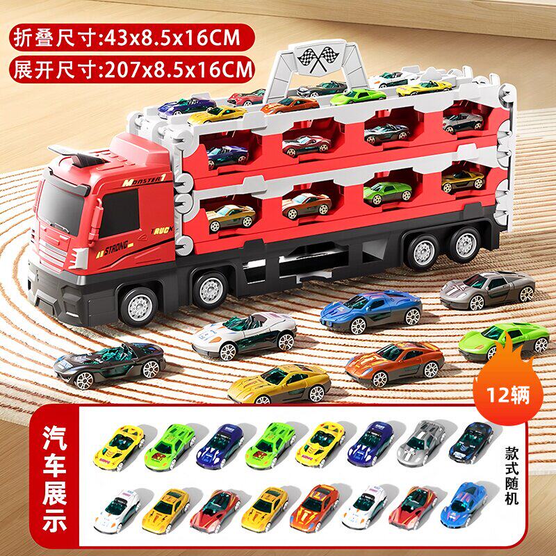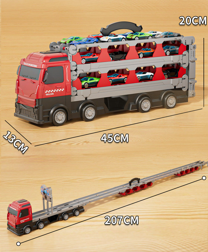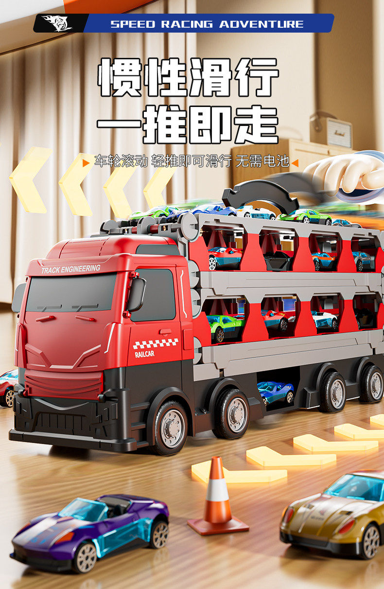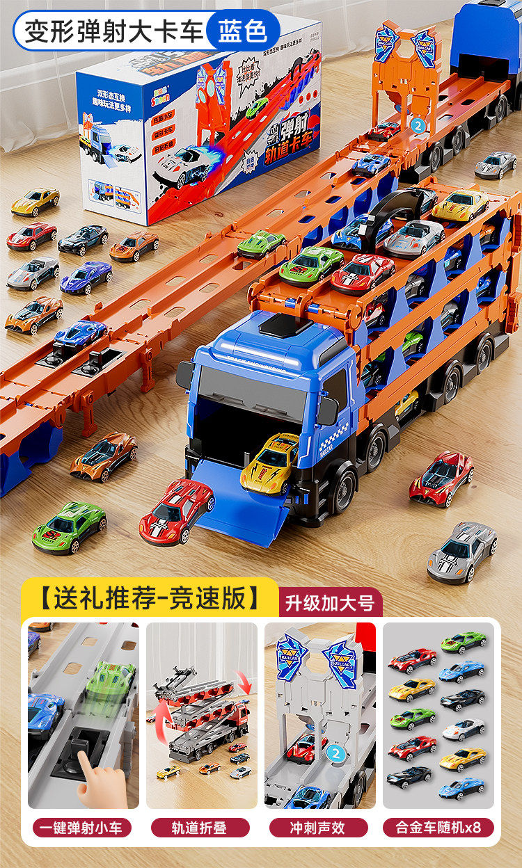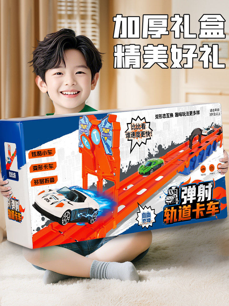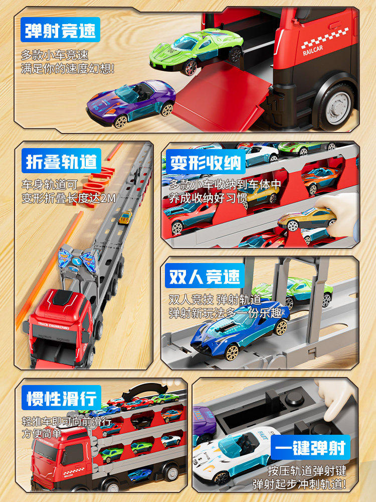 儿童变形弹射大卡车轨道车货车合金小汽车收纳工程车男孩礼物3岁6