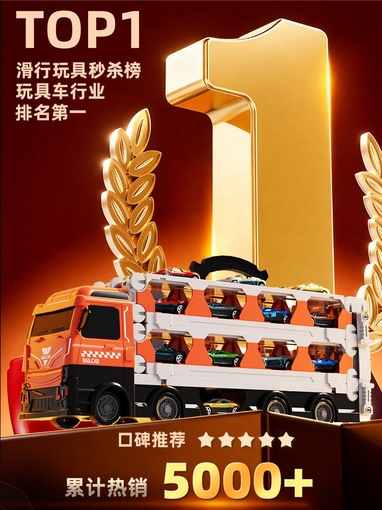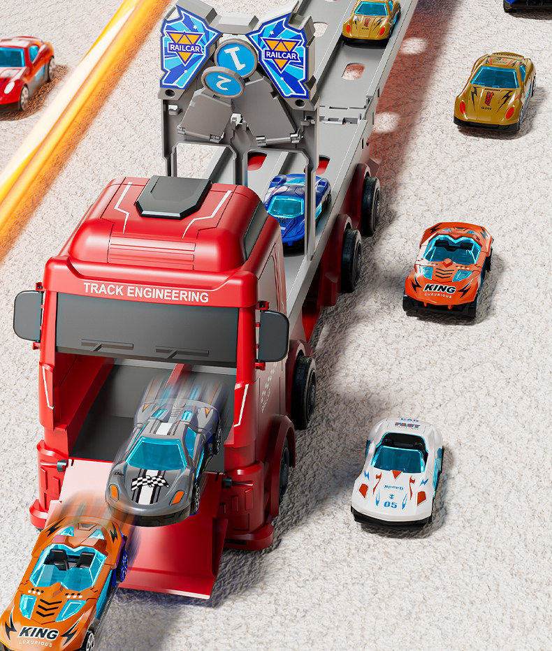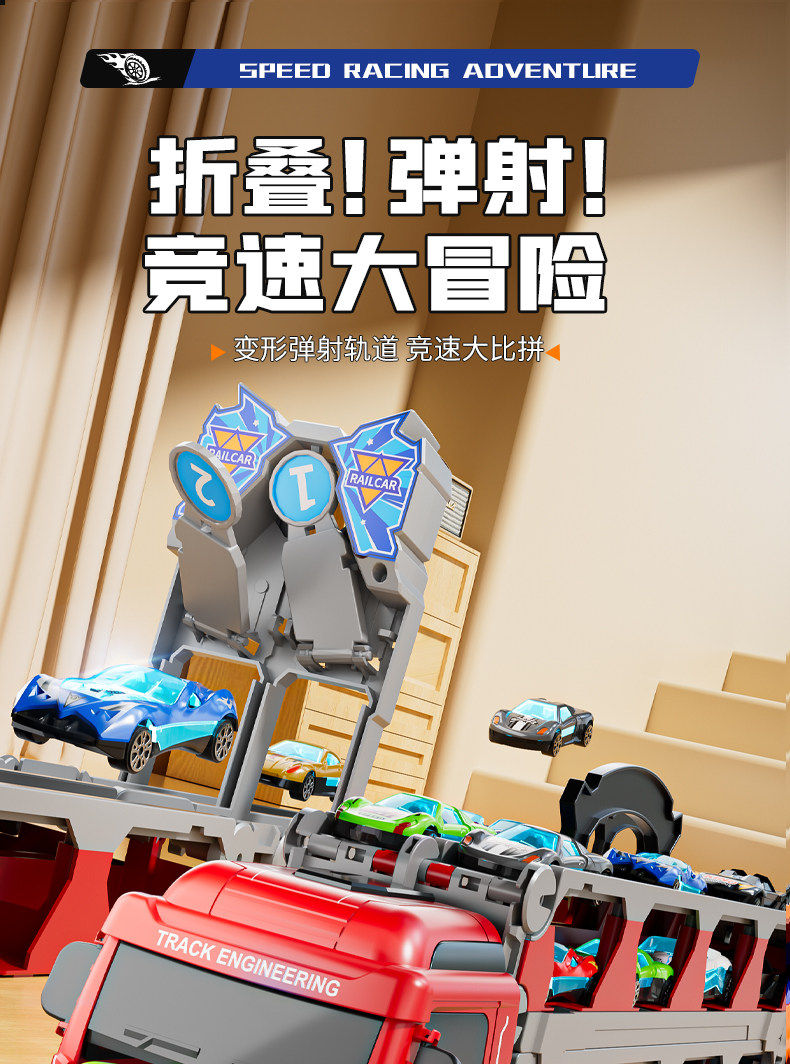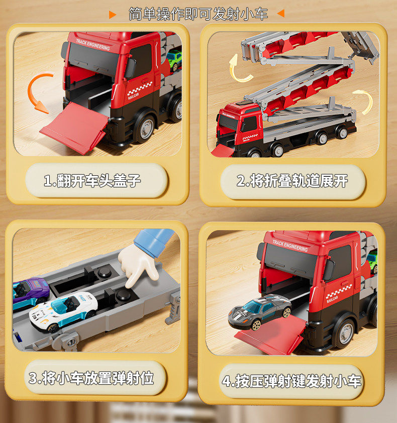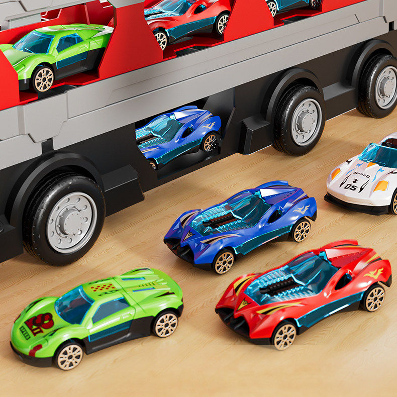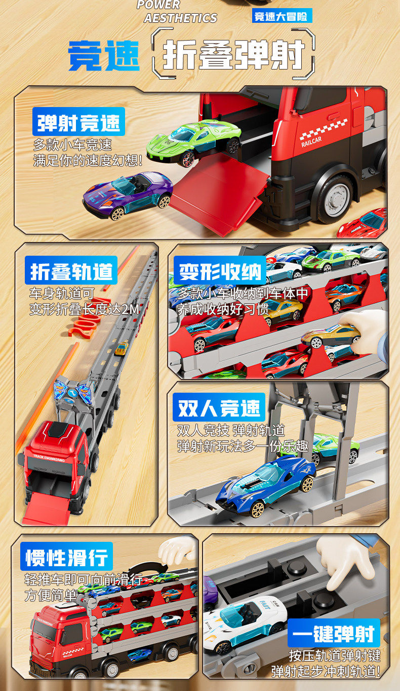 儿童变形弹射大卡车轨道车货车合金小汽车收纳工程车男孩礼物3岁6