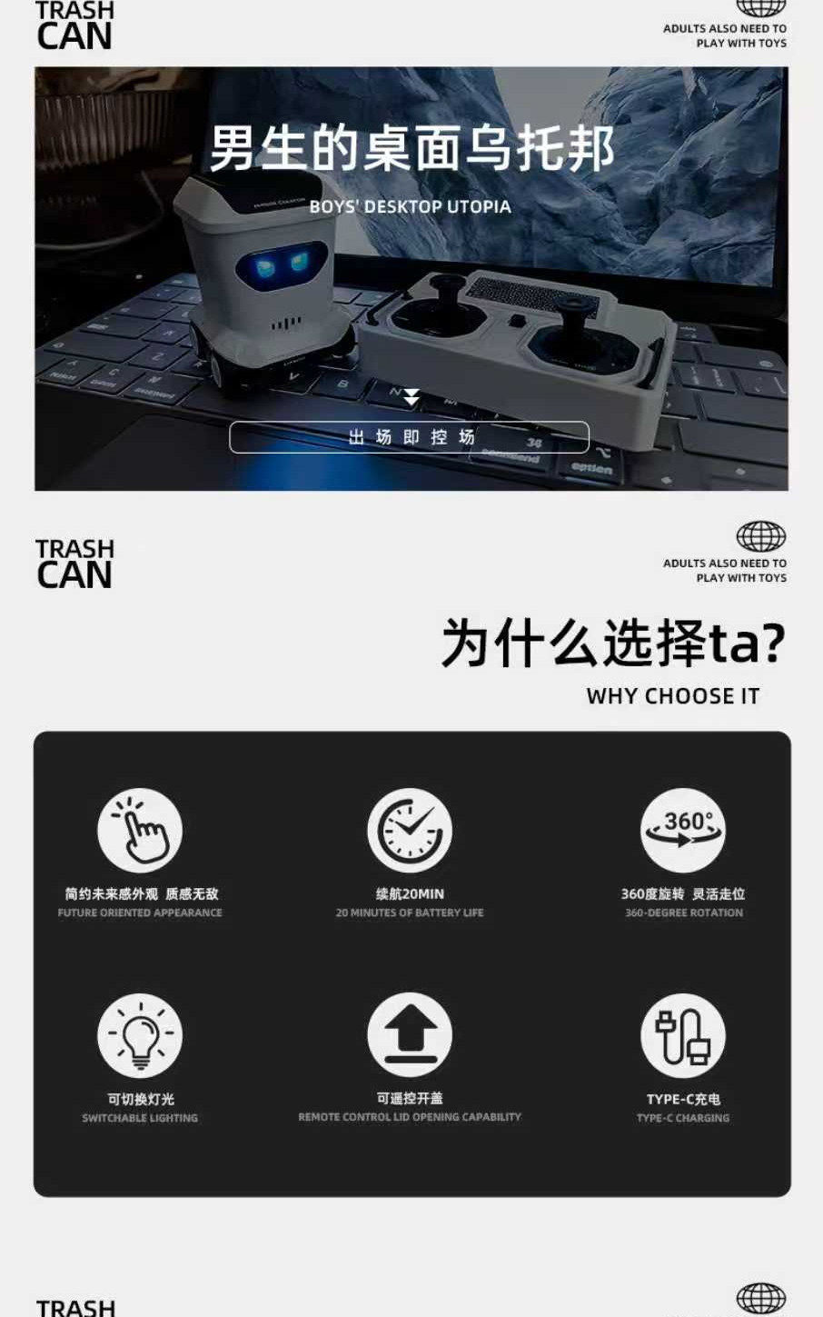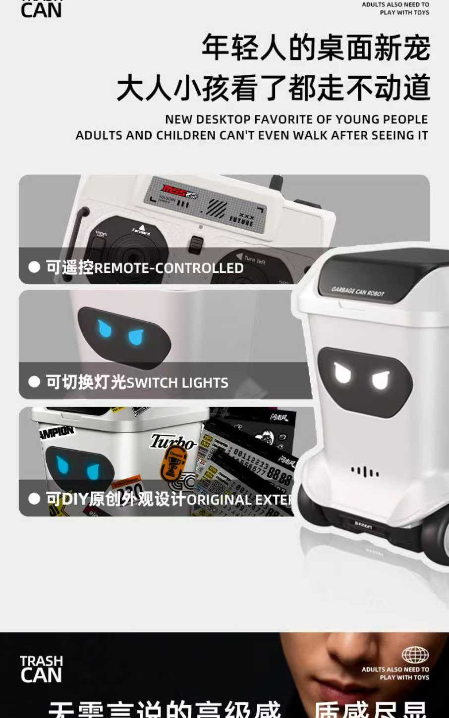 垃圾桶机器人生日礼物男生男朋友男孩实用创意解压桌面遥控小玩具