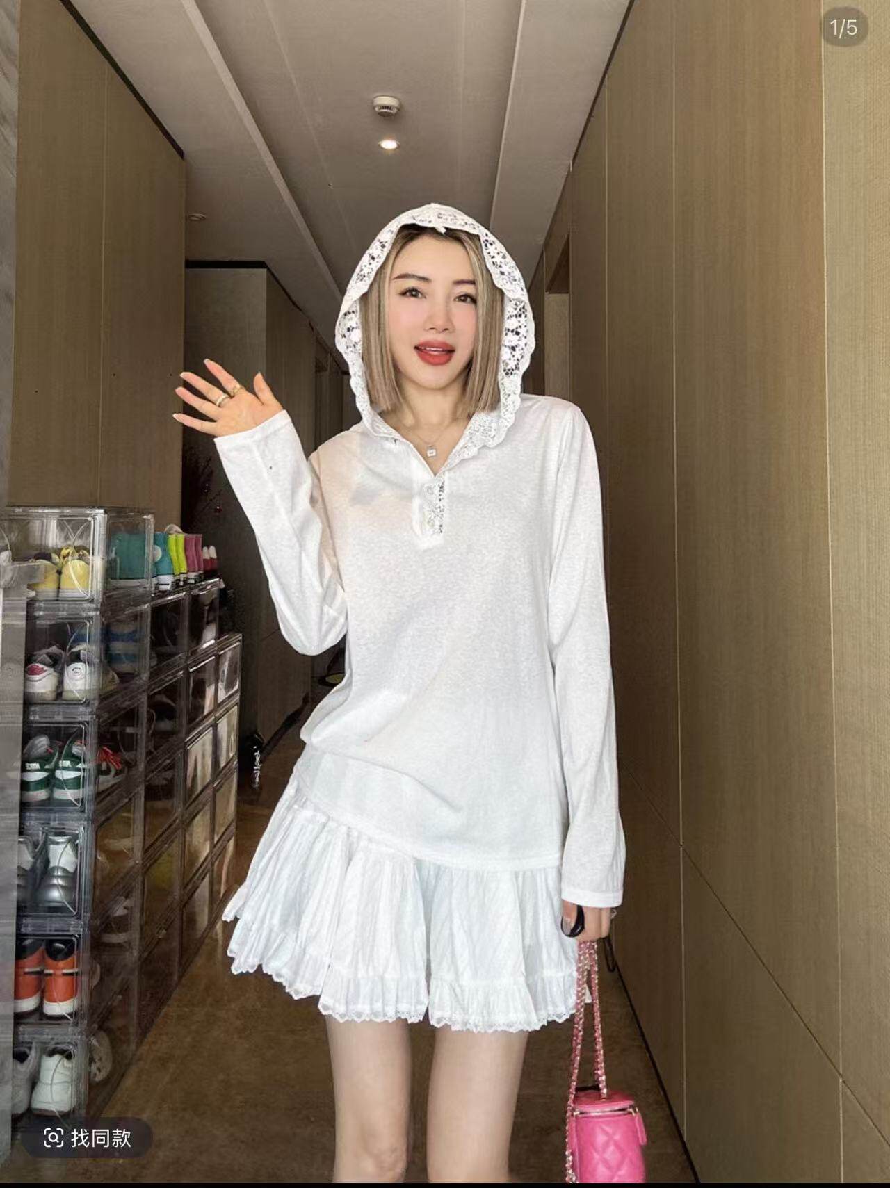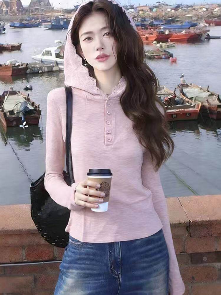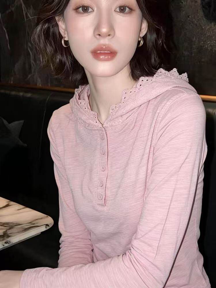 阿琪推荐!4.18 100 %纯棉! 【蕾丝帽衫】休闲连帽长袖