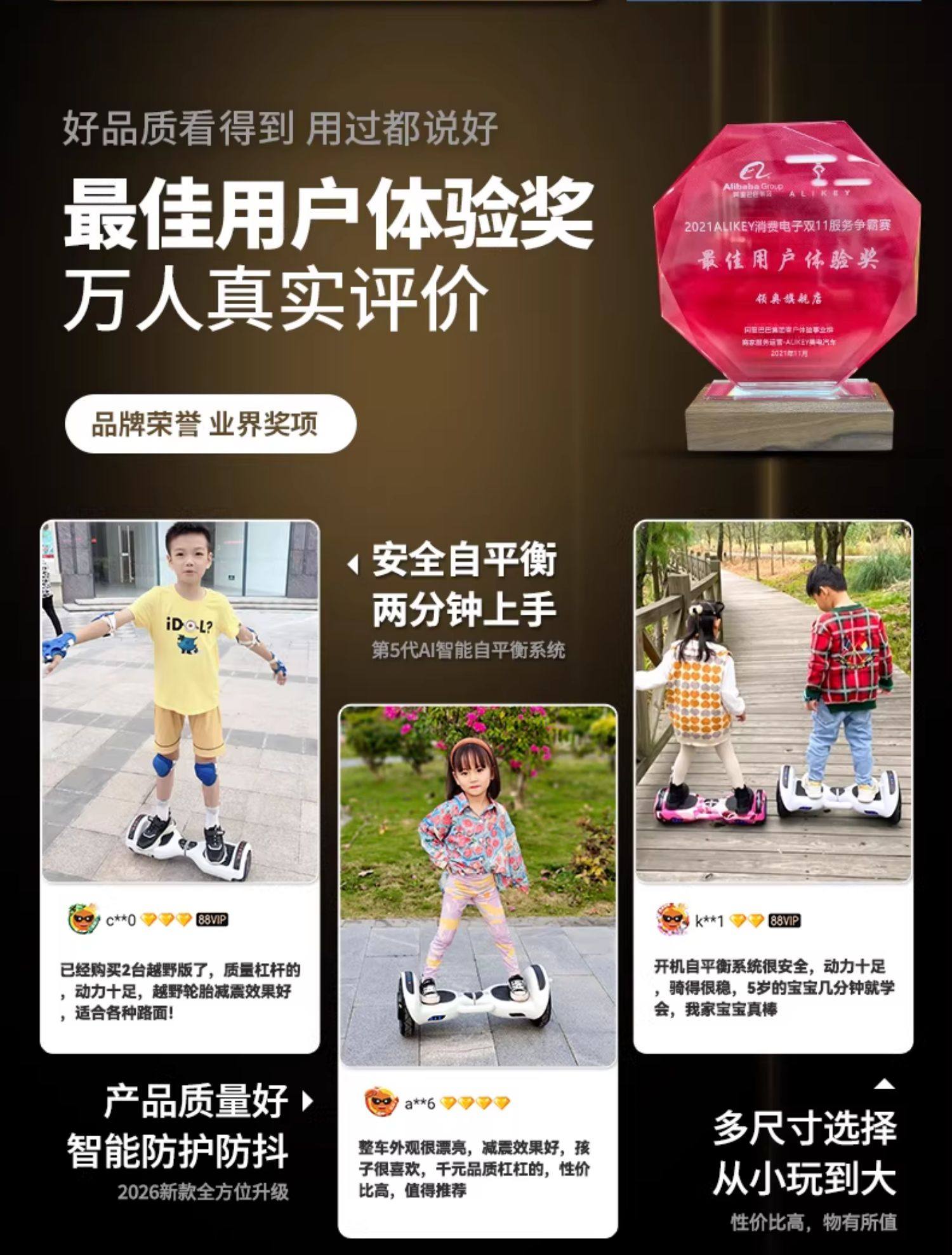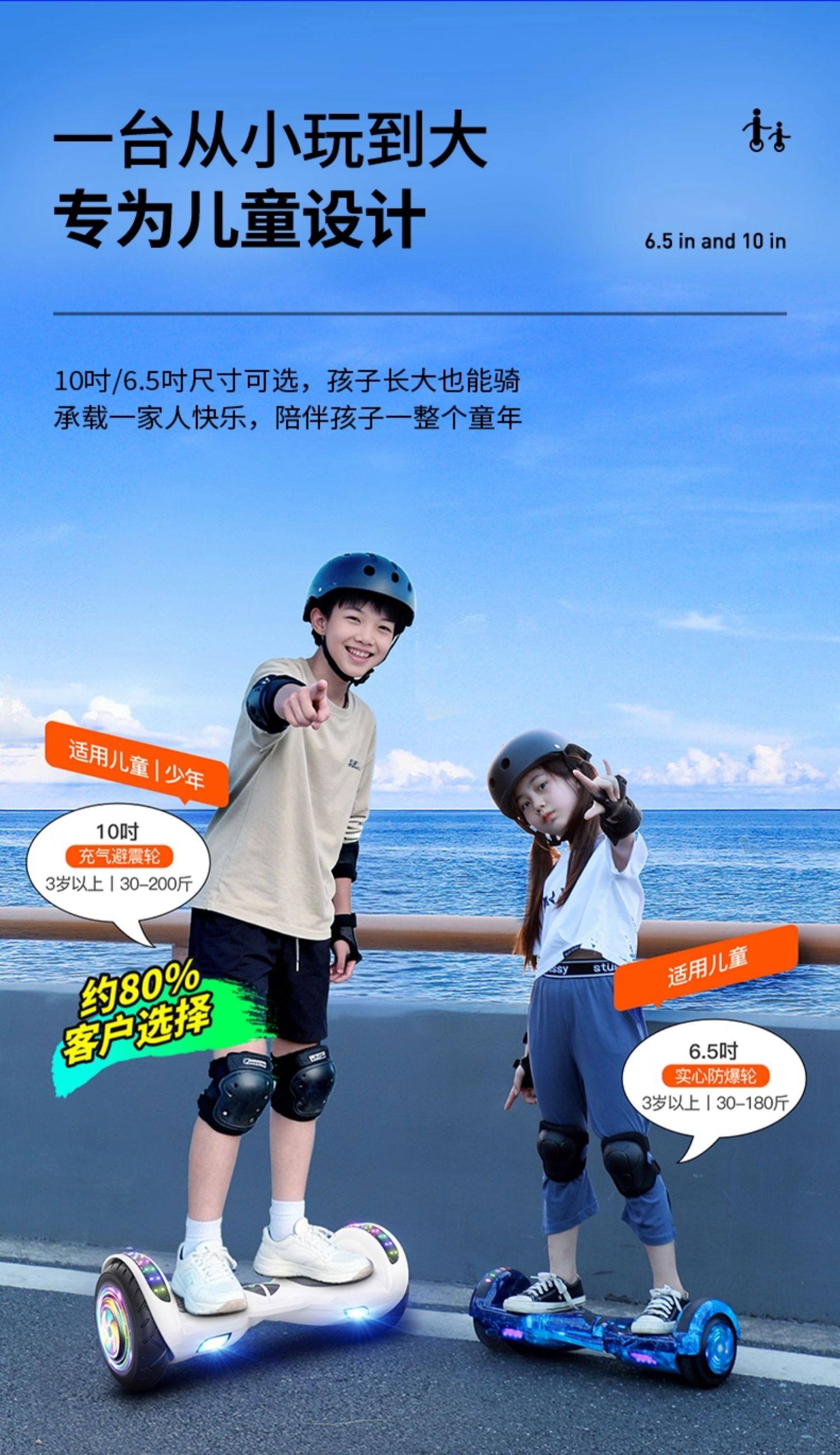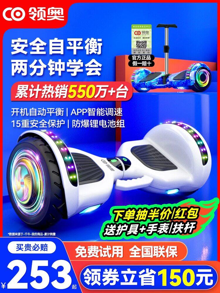 领奥儿童智能电动自平衡车两轮6到8到12岁10到15岁以上2026新款