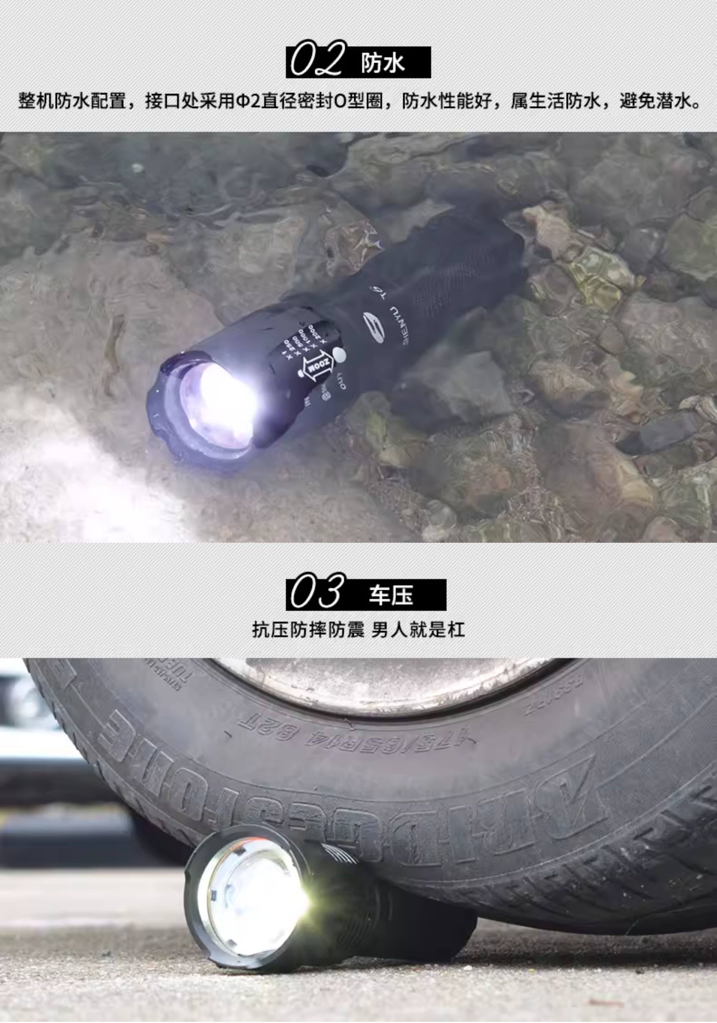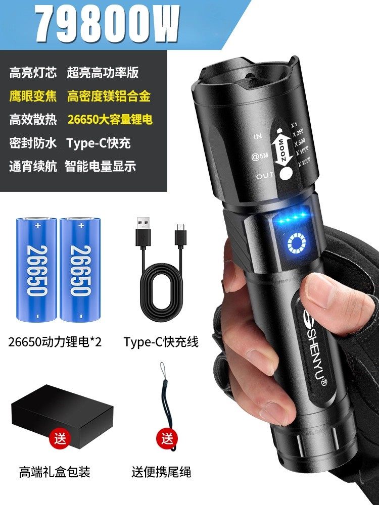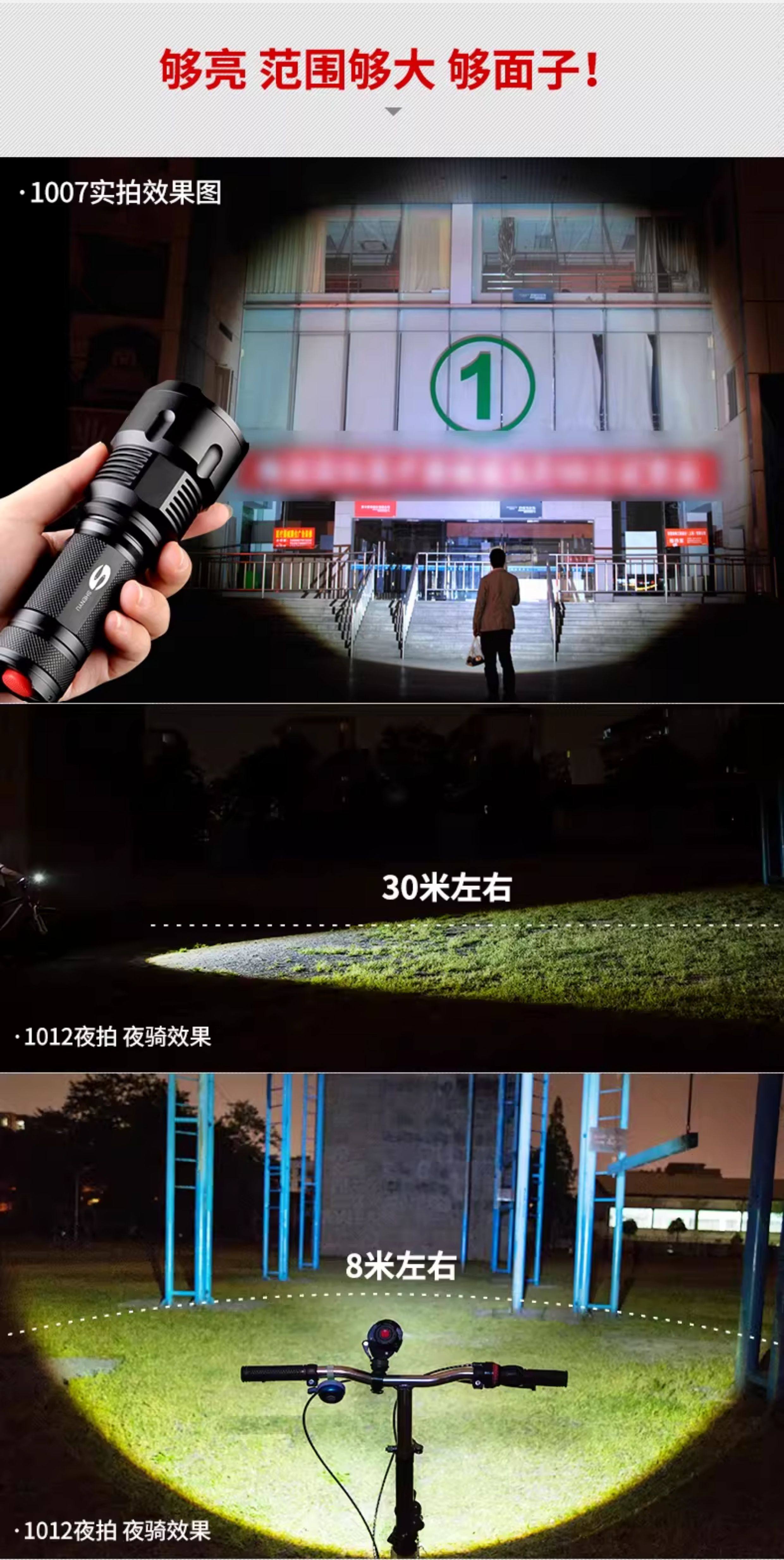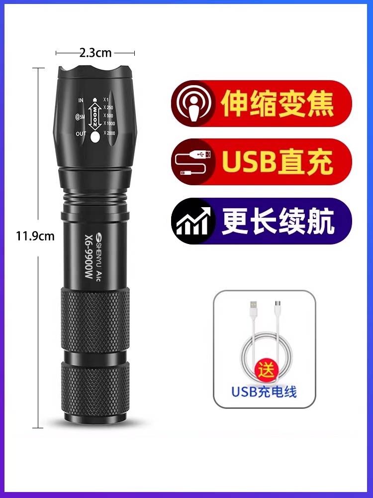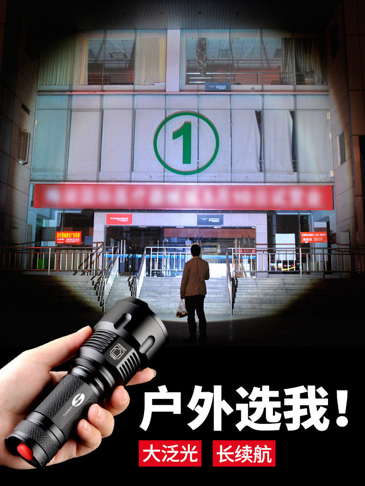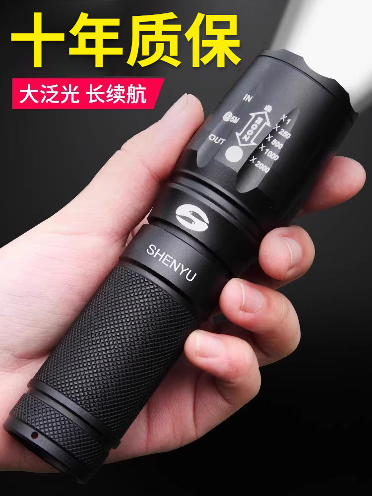 手电筒强光可充电式户外超亮远射小型迷你便携家用耐用氙气led灯