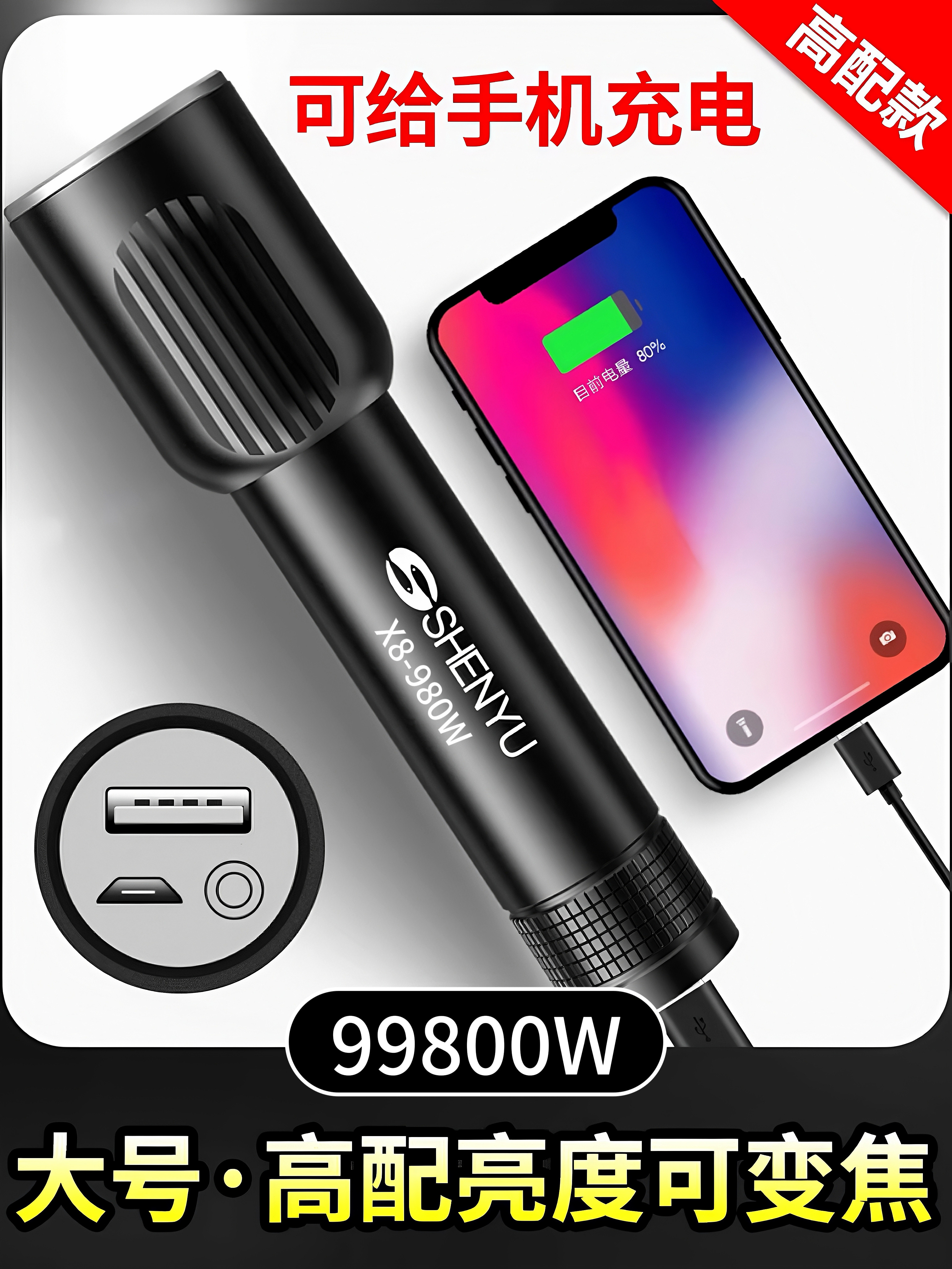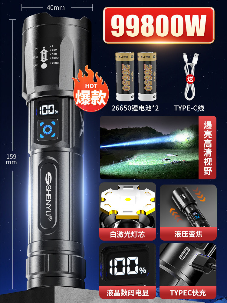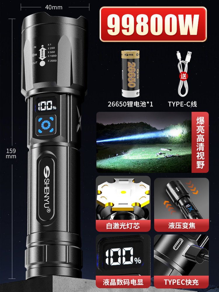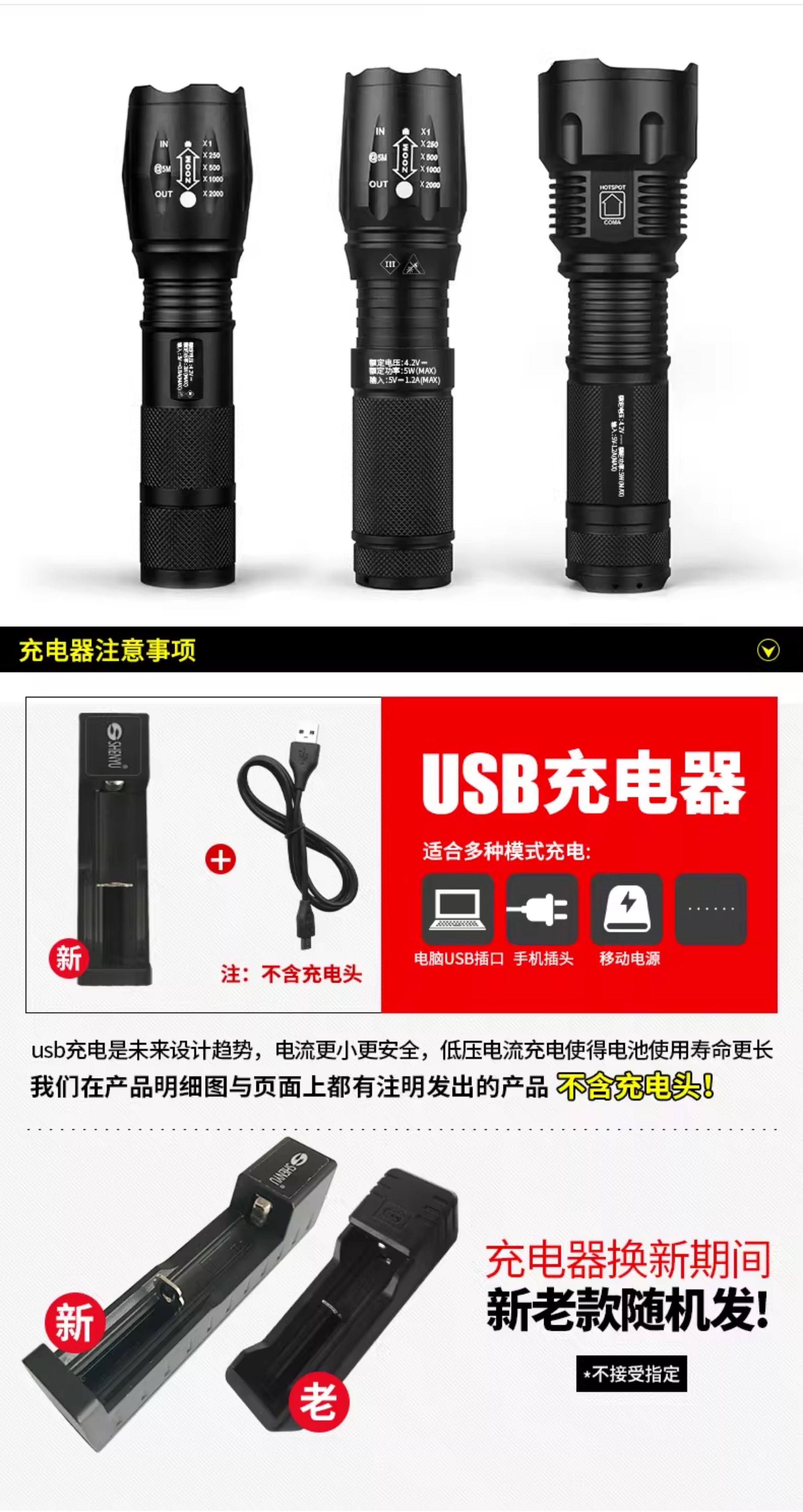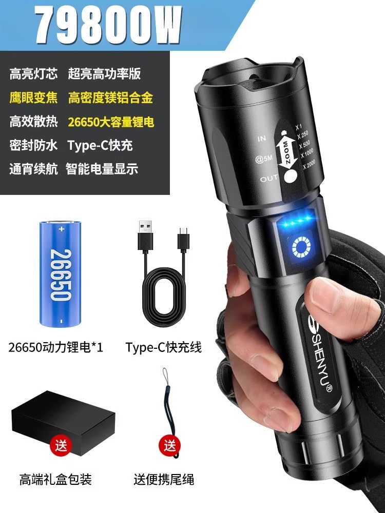 手电筒强光可充电式户外超亮远射小型迷你便携家用耐用氙气led灯