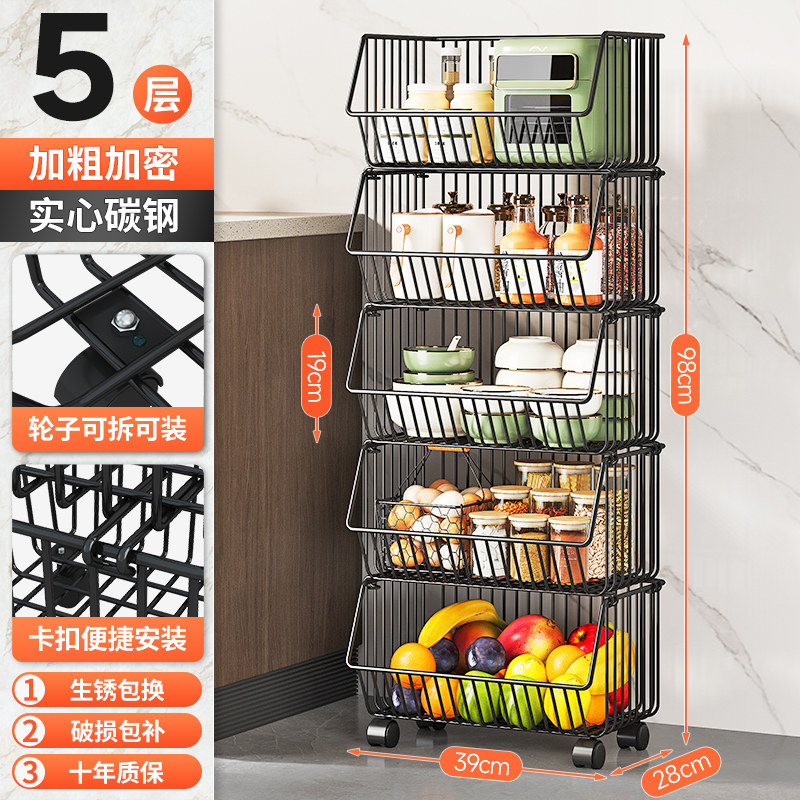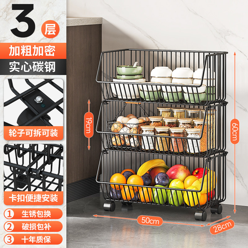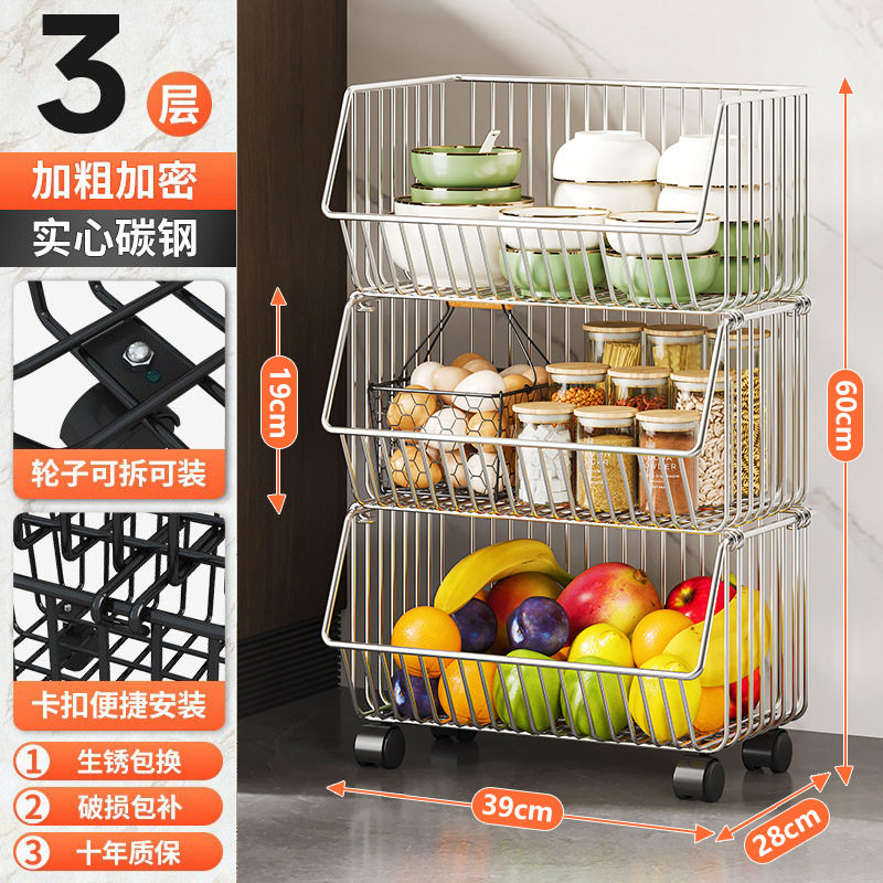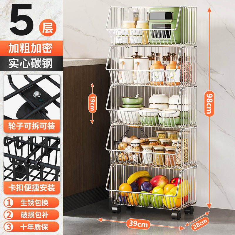 菜篮子厨房置物架落地多层水果蔬菜收纳用品靠墙角移动零食小推车