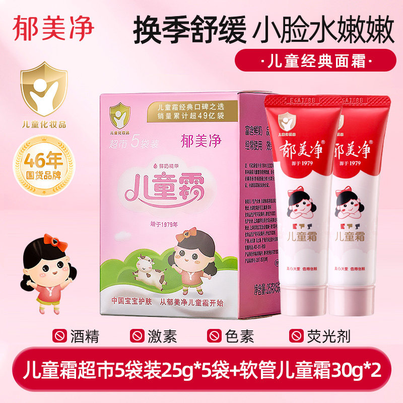 郁美净儿童霜宝宝婴儿面霜袋装身体润肤乳春夏季正品官方旗舰店