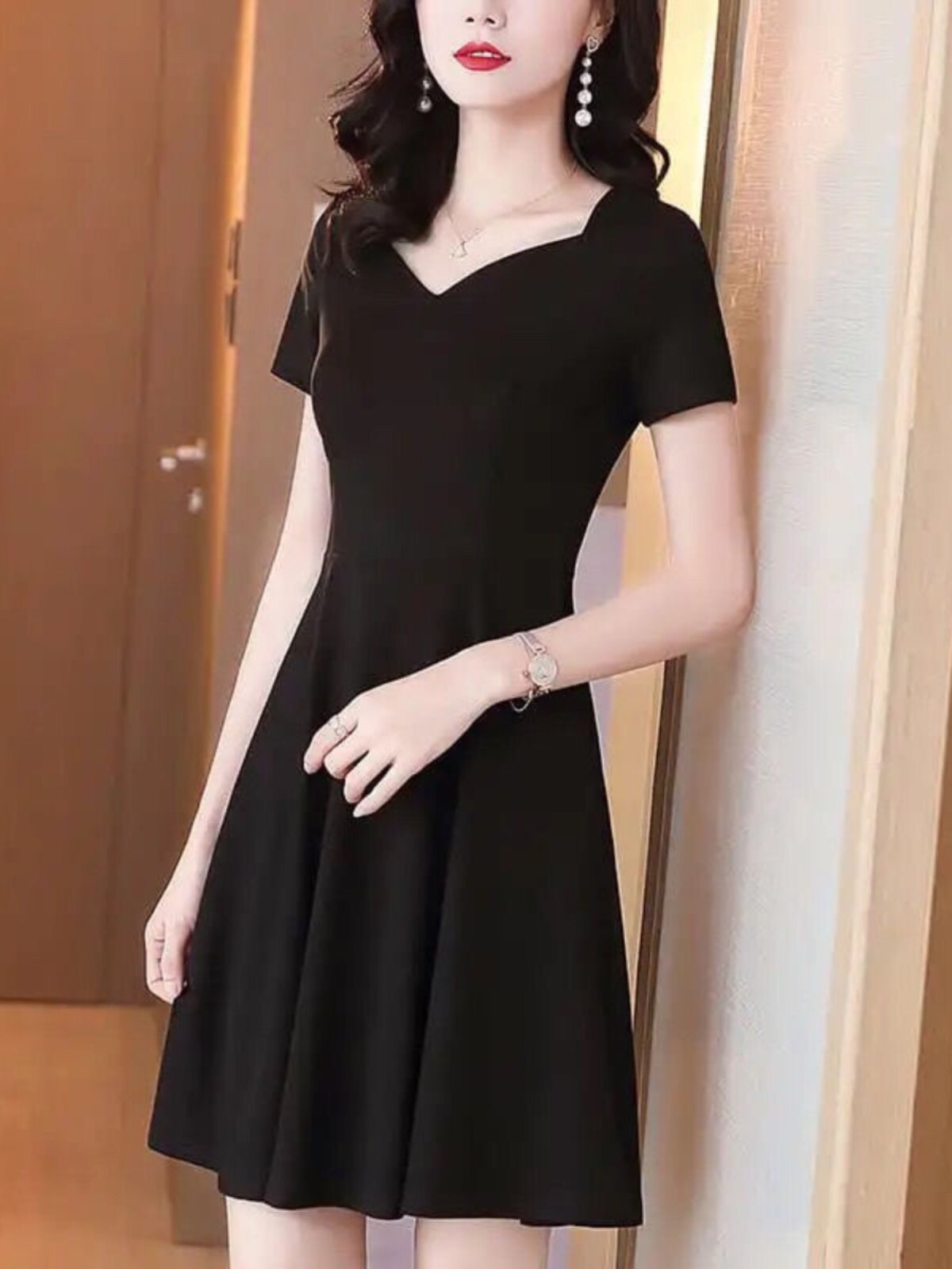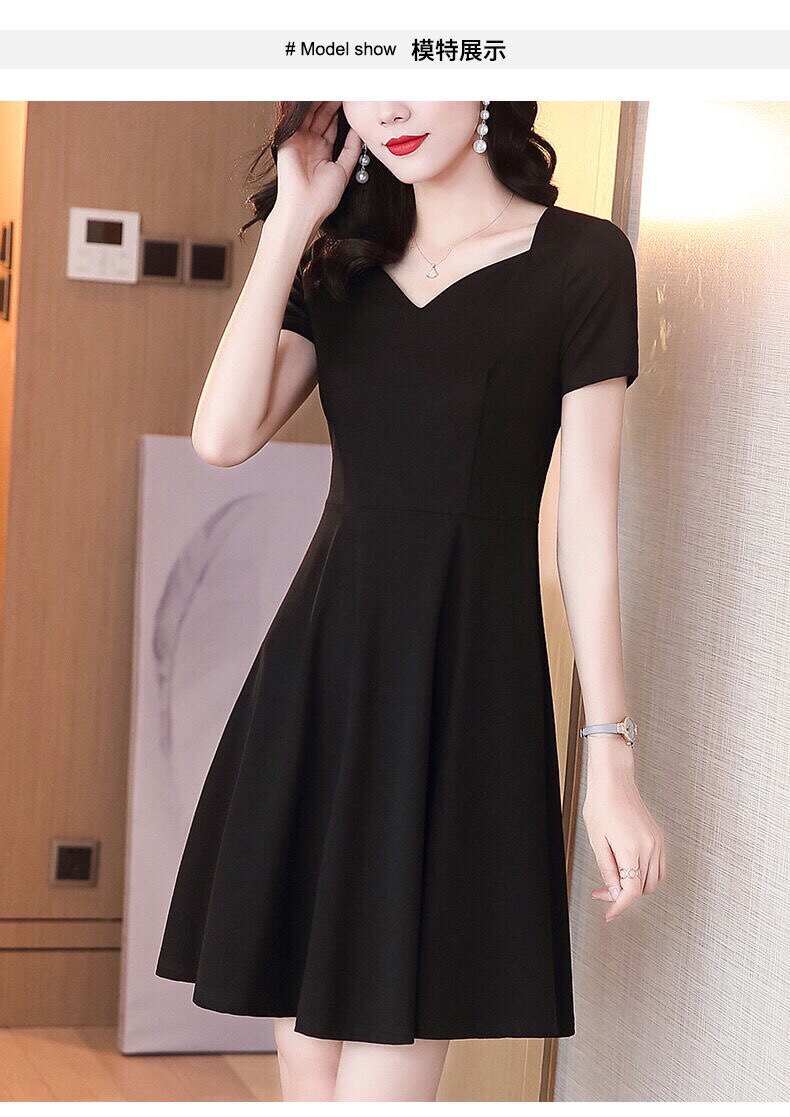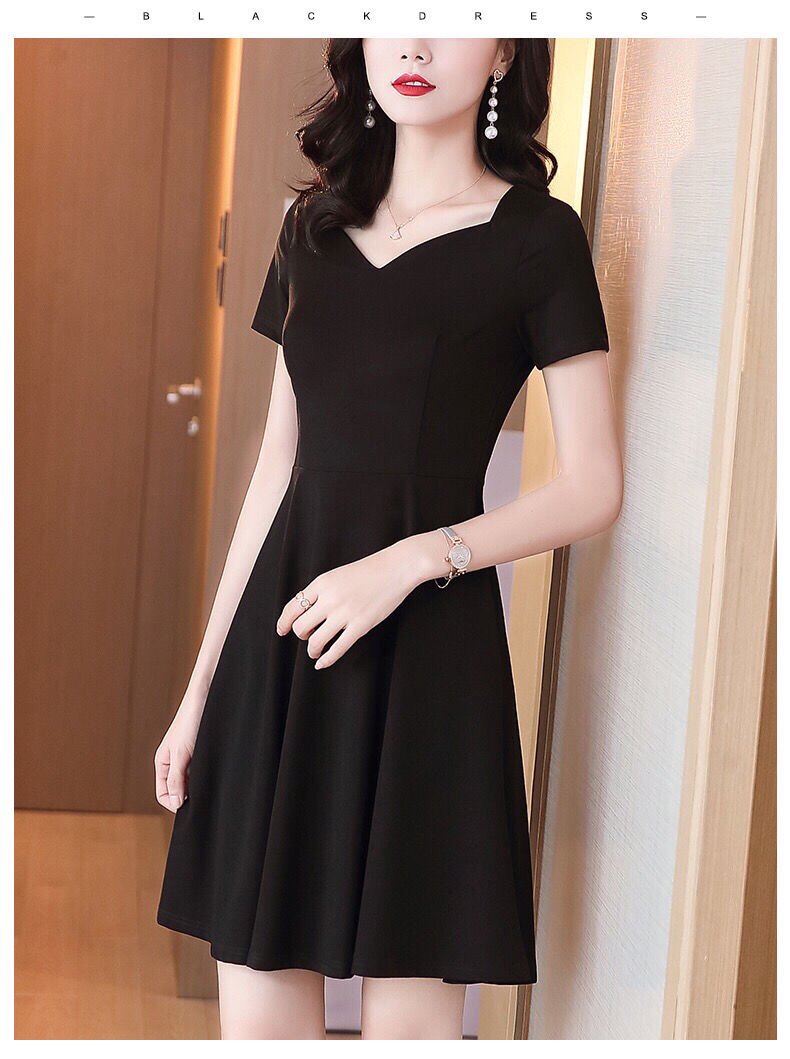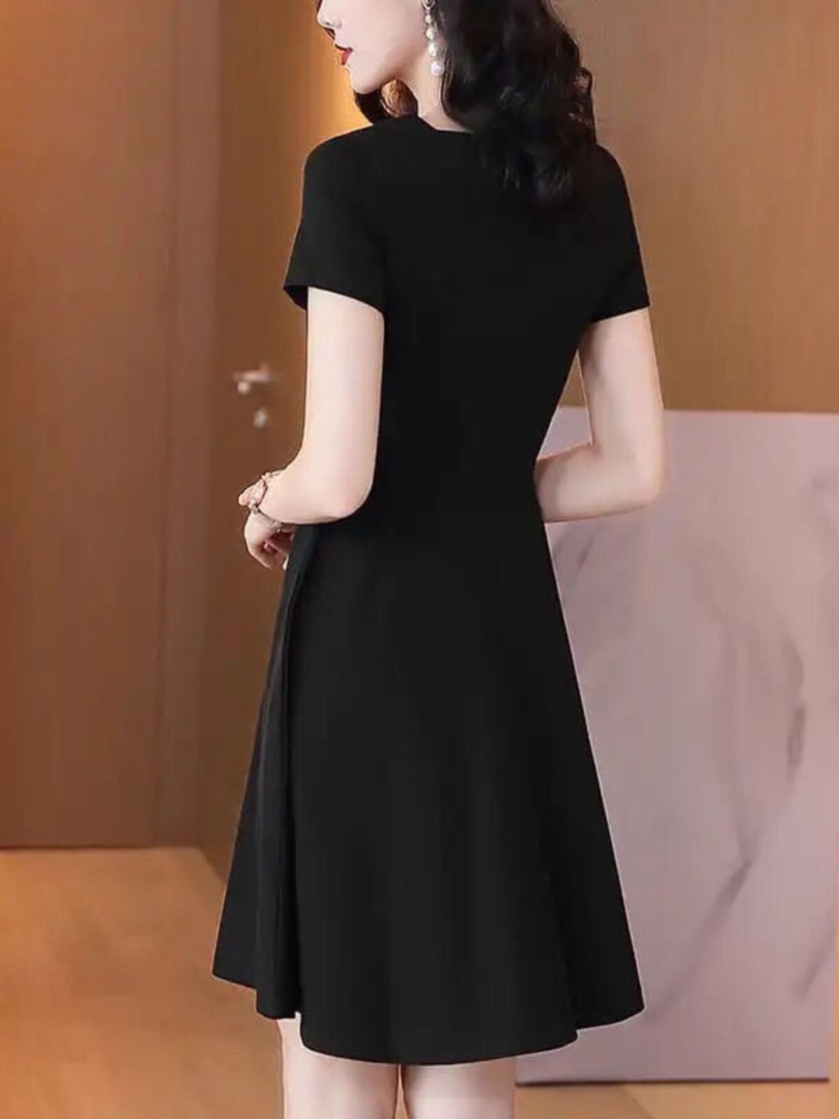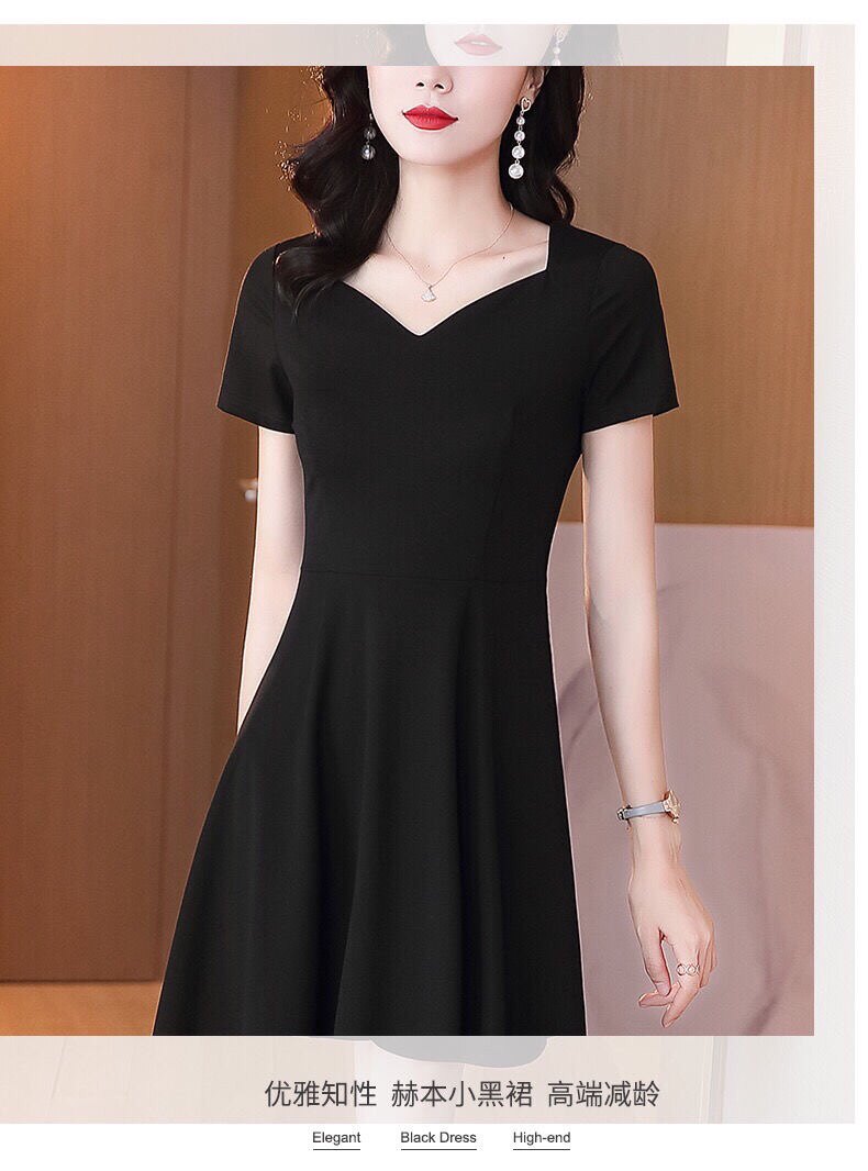 赫本风连衣裙短袖2024新款V领黑色职业裙子女夏装修身显瘦小黑裙