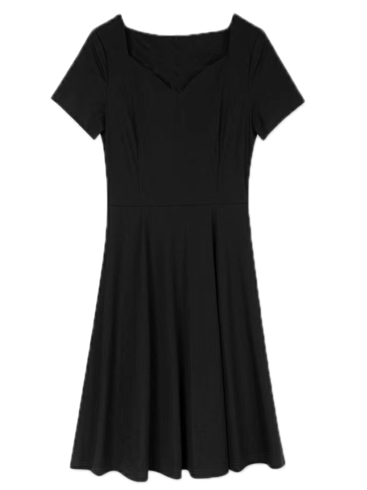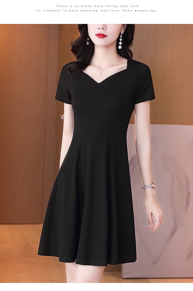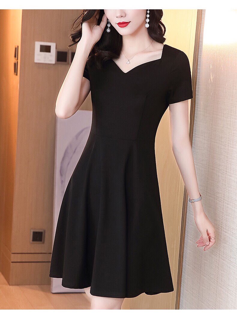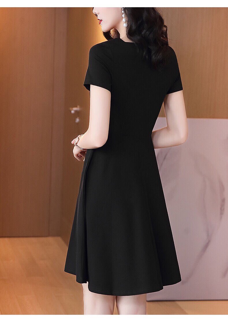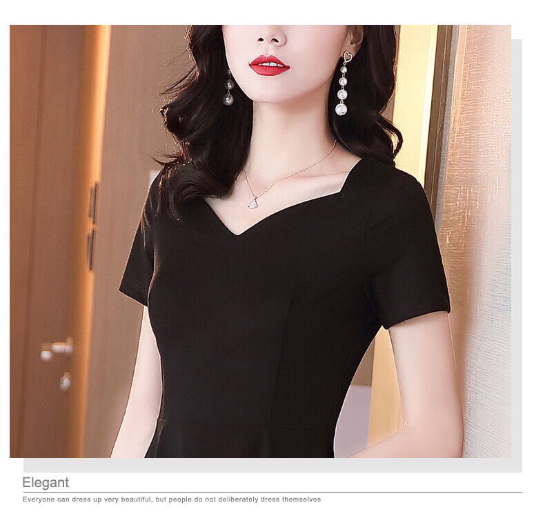 赫本风连衣裙短袖2024新款V领黑色职业裙子女夏装修身显瘦小黑裙