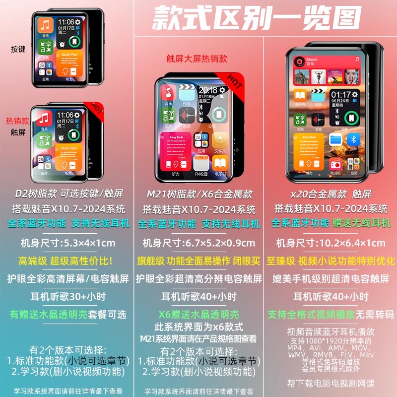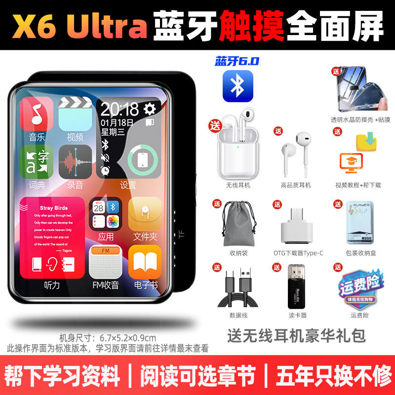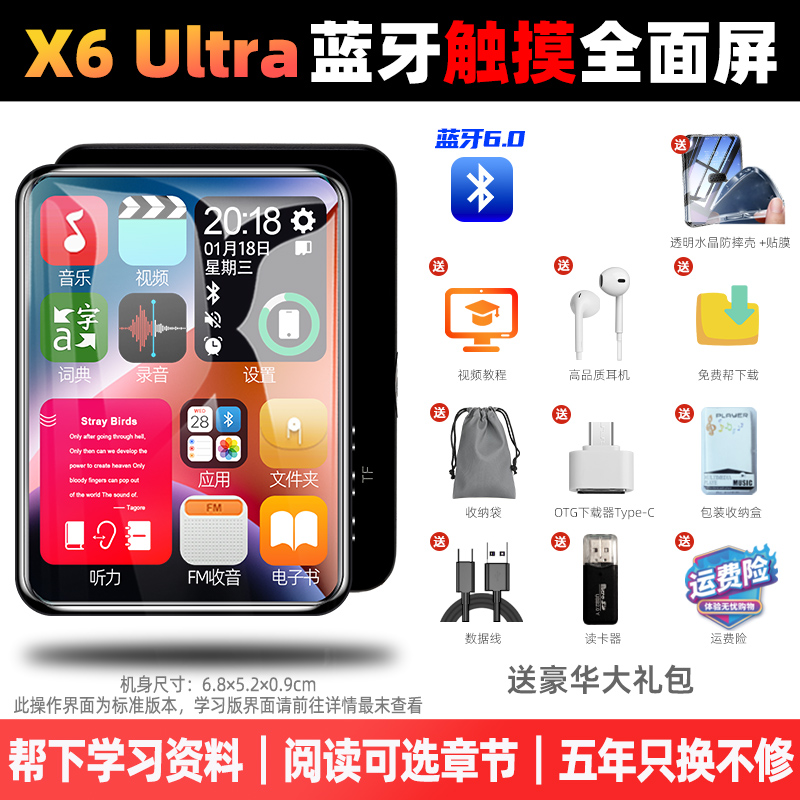 东达魅音全面屏mp3mp4随身听学生版蓝牙高中生专用触摸屏p3播放器