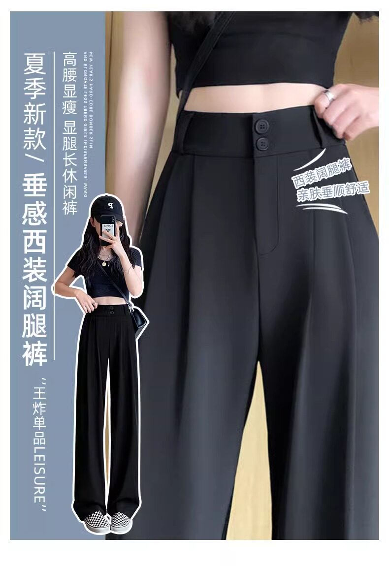 黑色西装裤女裤2026新款夏季高级感垂坠感西裤直筒小个子阔腿裤子