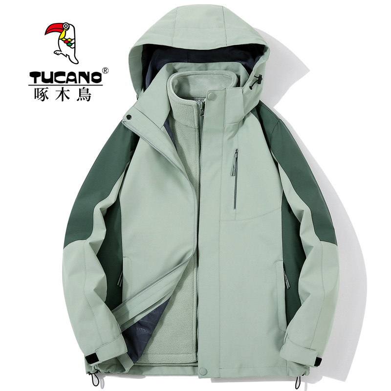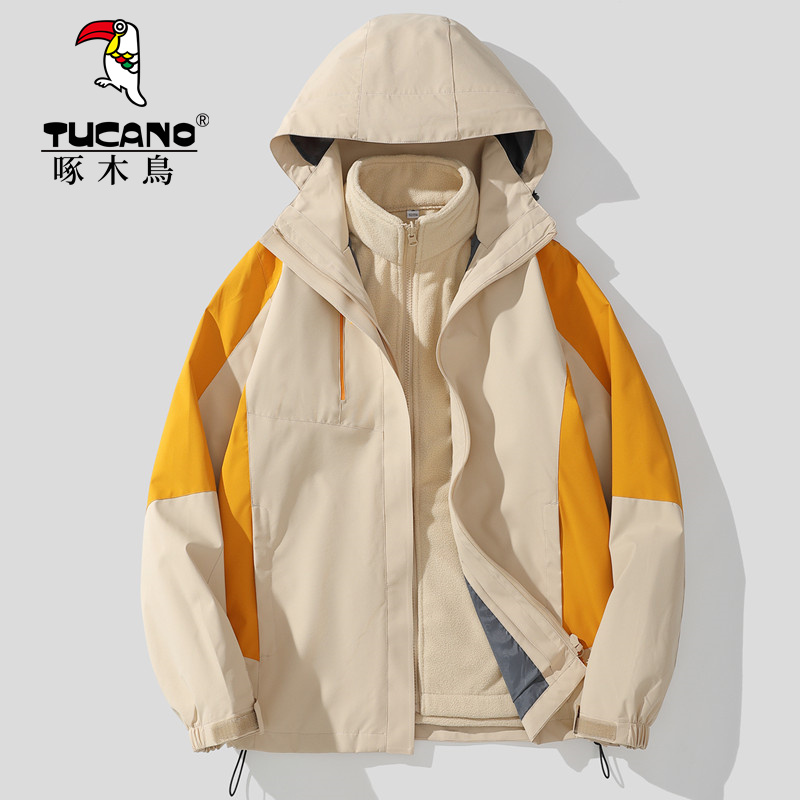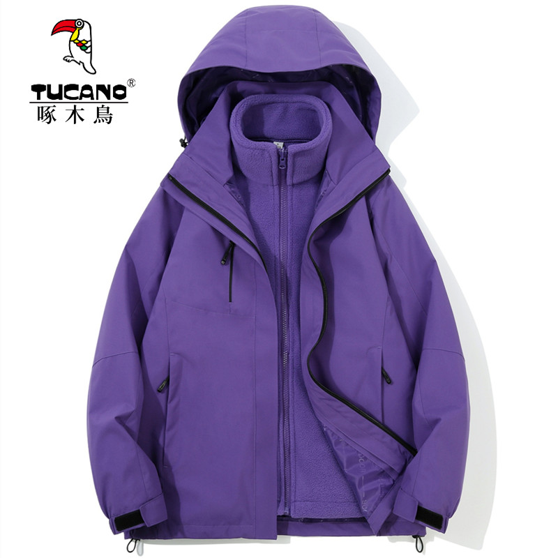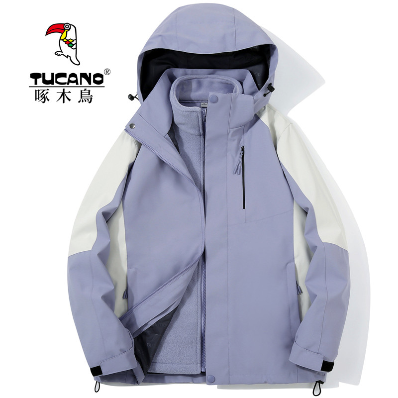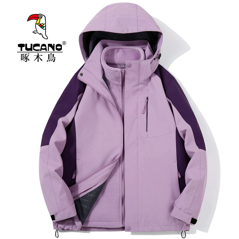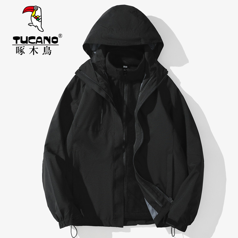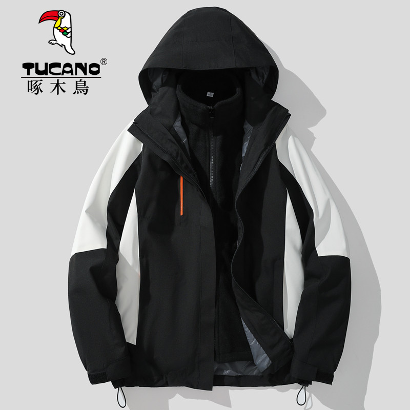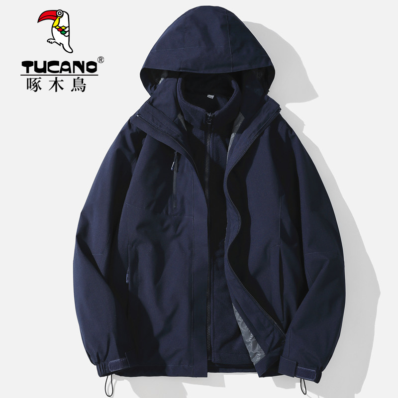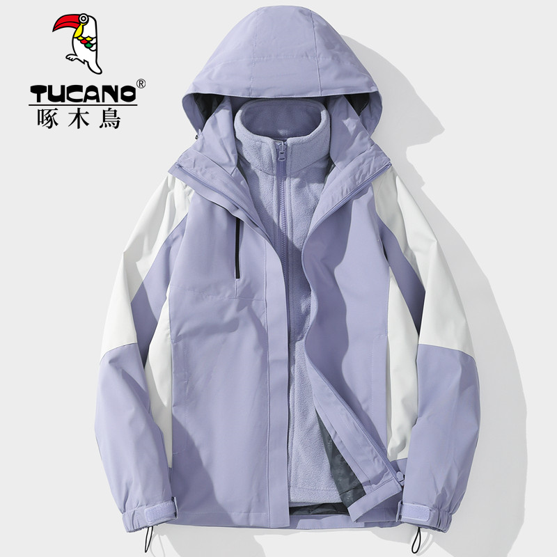 啄木鸟户外冲锋衣男女三合一可拆卸秋冬加厚防风防水登山保暖外套