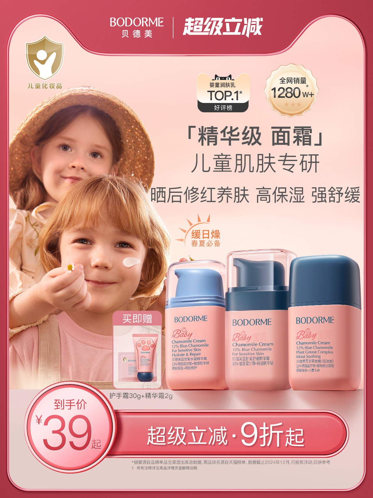 贝德美儿童春夏面霜宝宝婴儿面霜保湿滋润肤霜蓝甘菊擦脸护肤乳液