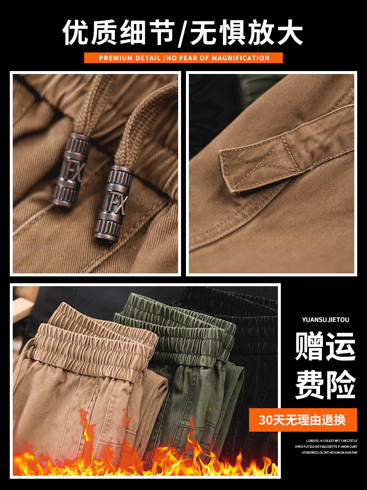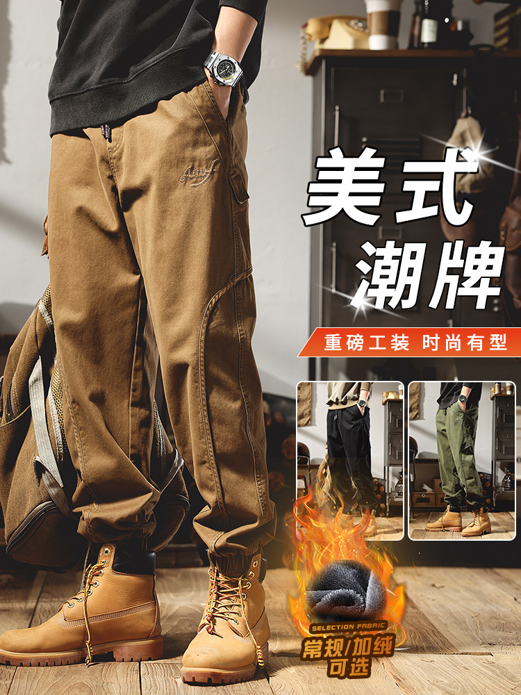美式重磅工装裤子男士2025秋冬新款宽松潮流加绒休闲裤潮牌束脚裤