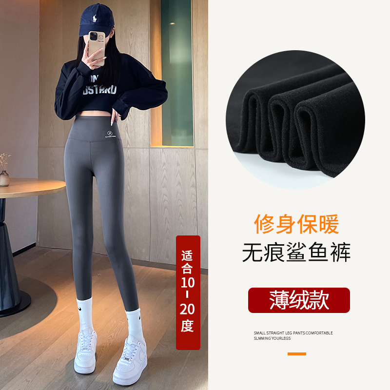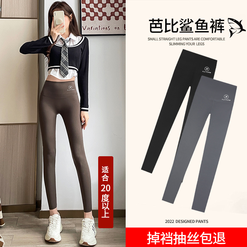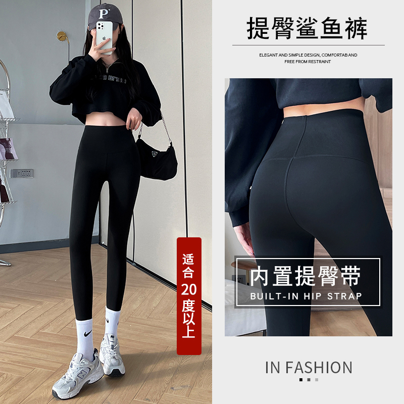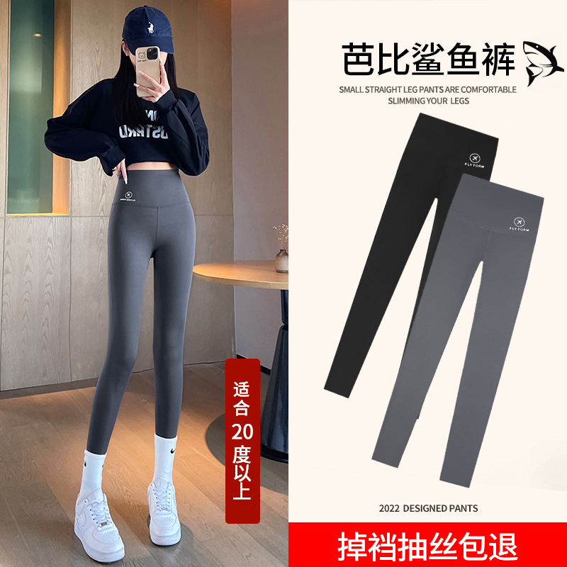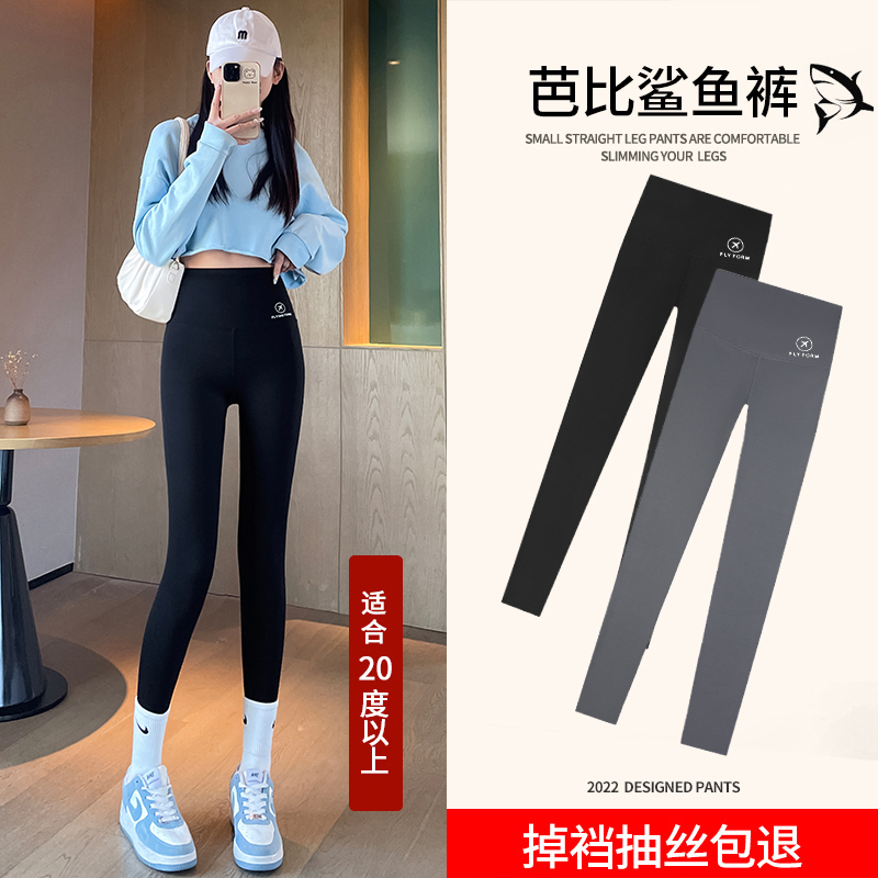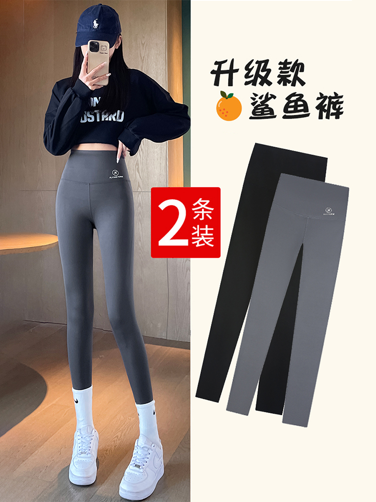 鲨鱼皮打底裤女外穿春秋夏季高腰2025新款瑜伽冬季加绒紧身收腹裤
