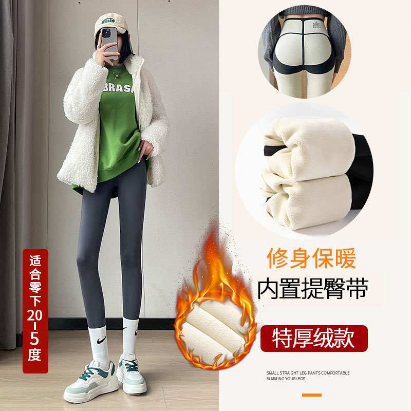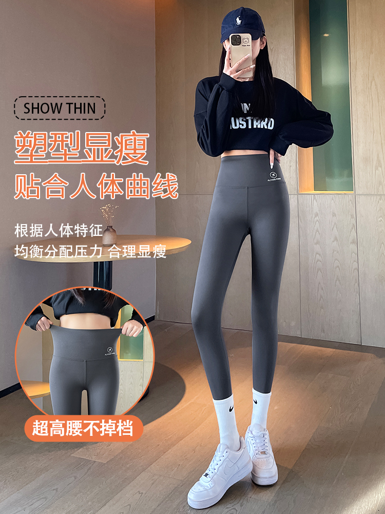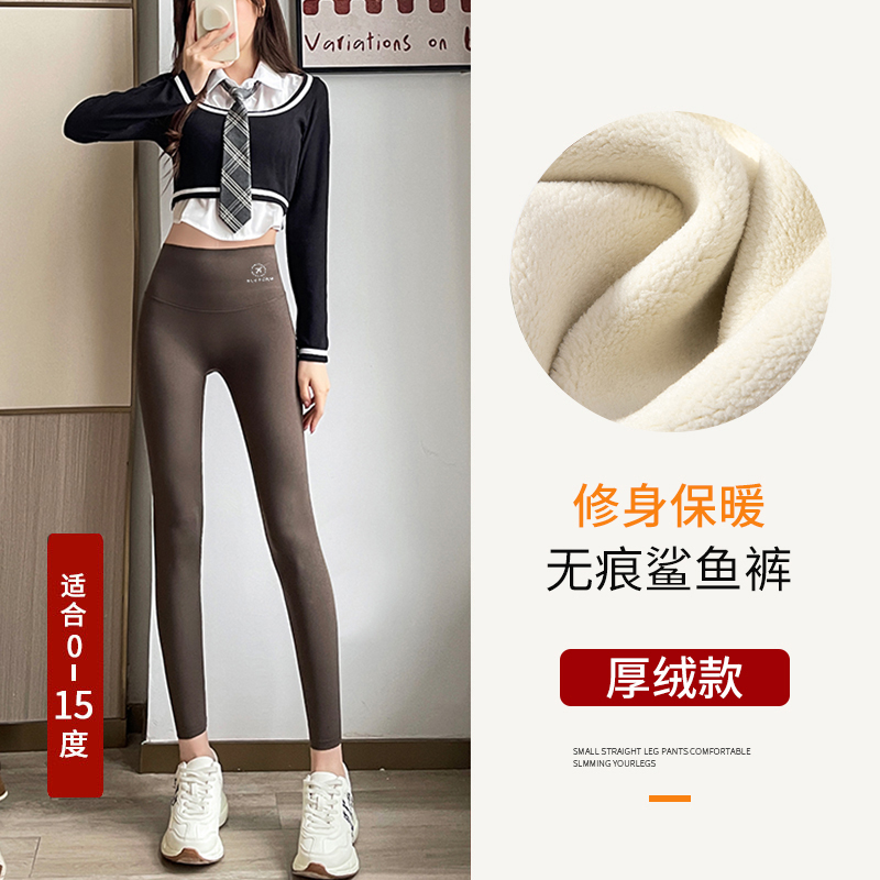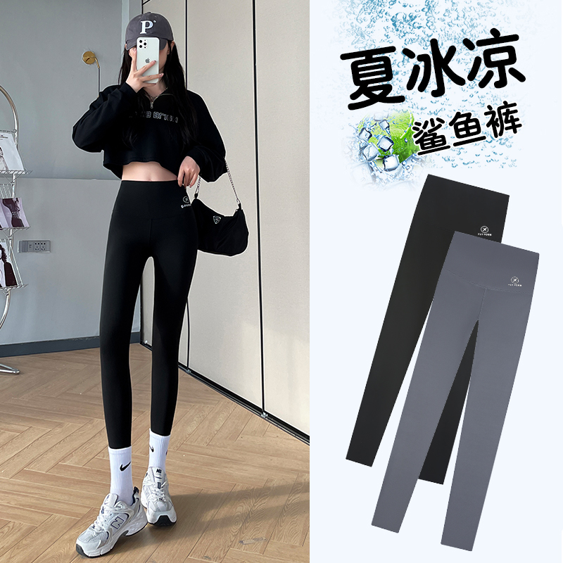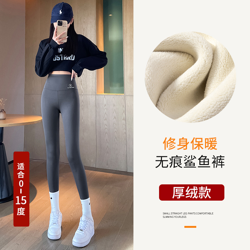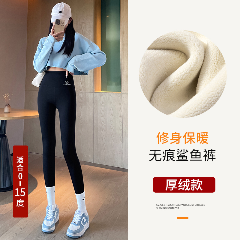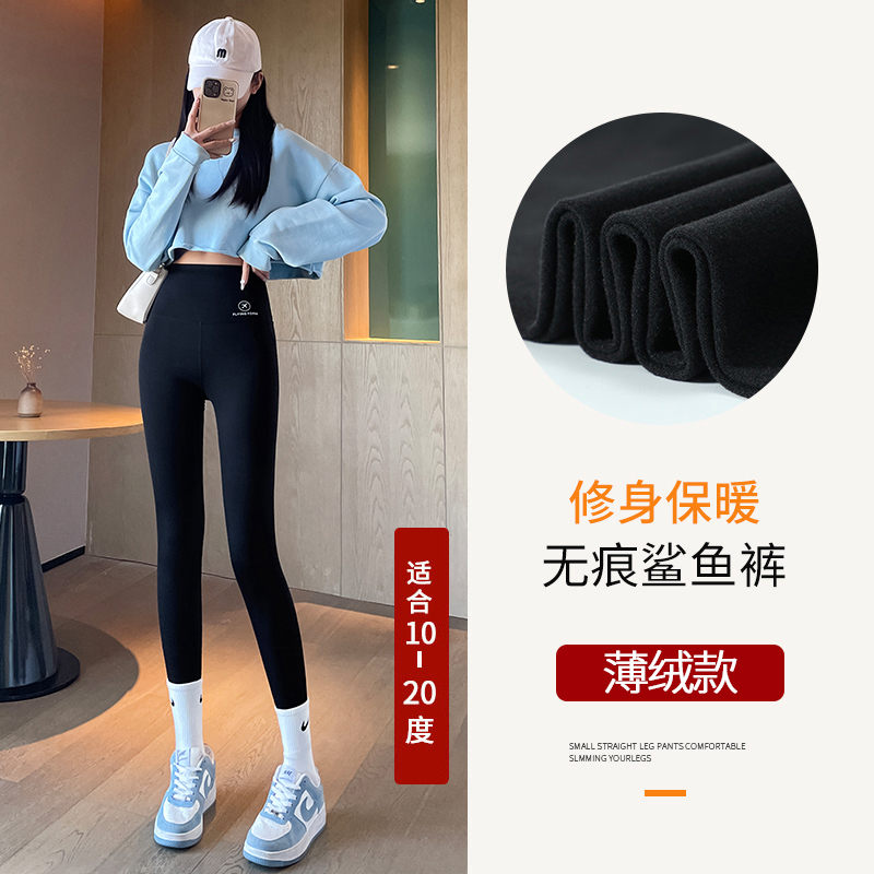 鲨鱼皮打底裤女外穿春秋夏季高腰2025新款瑜伽冬季加绒紧身收腹裤