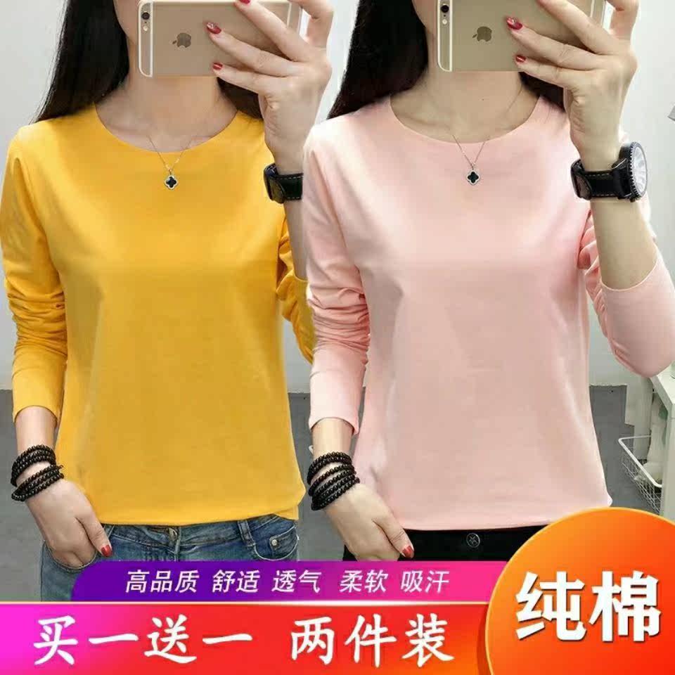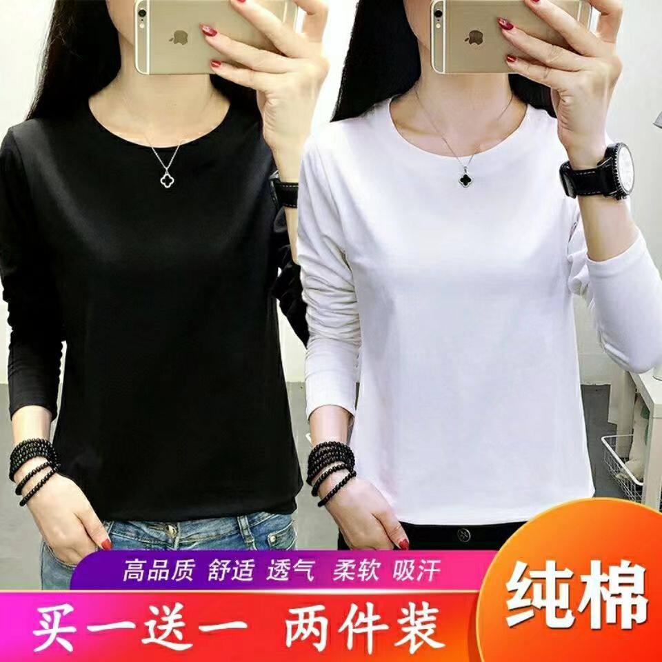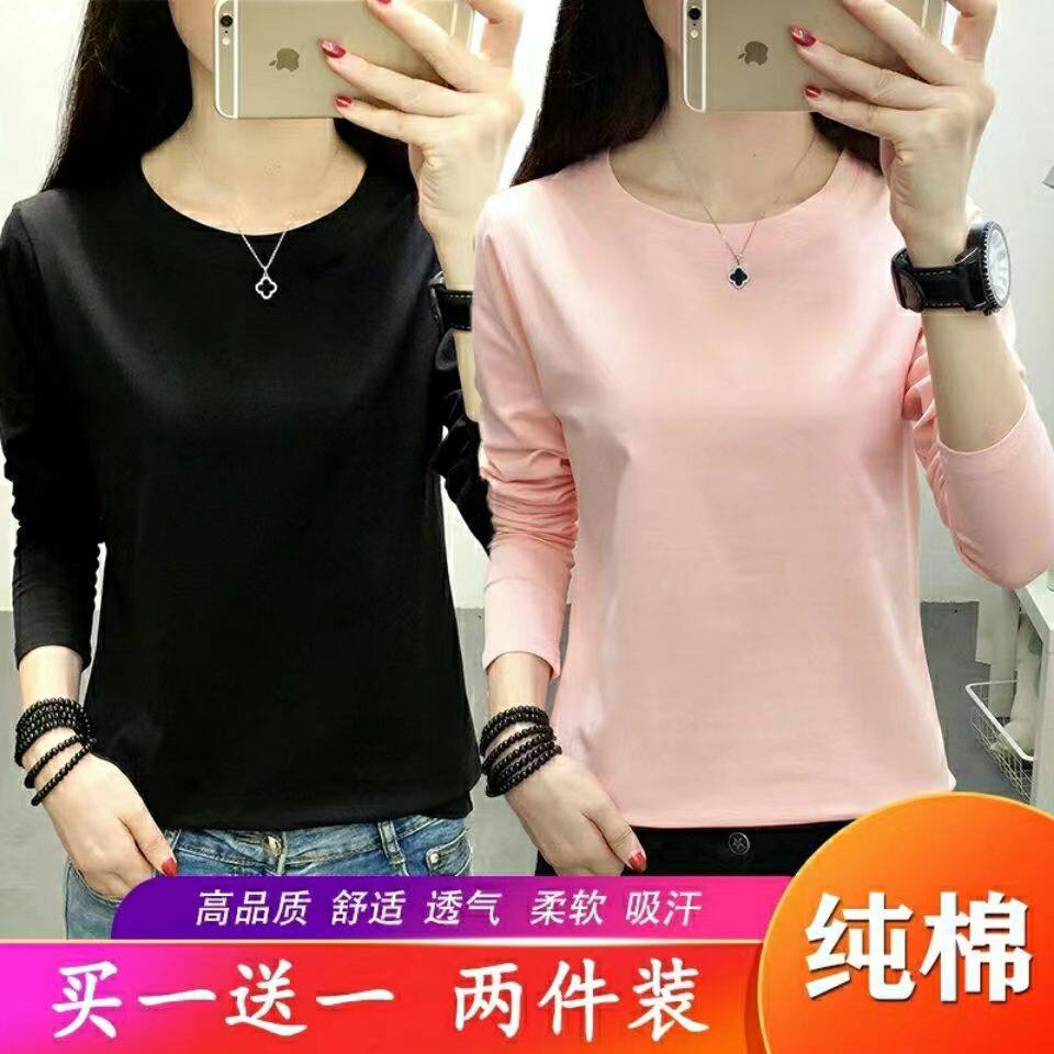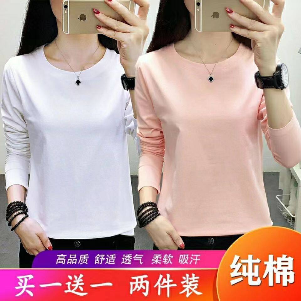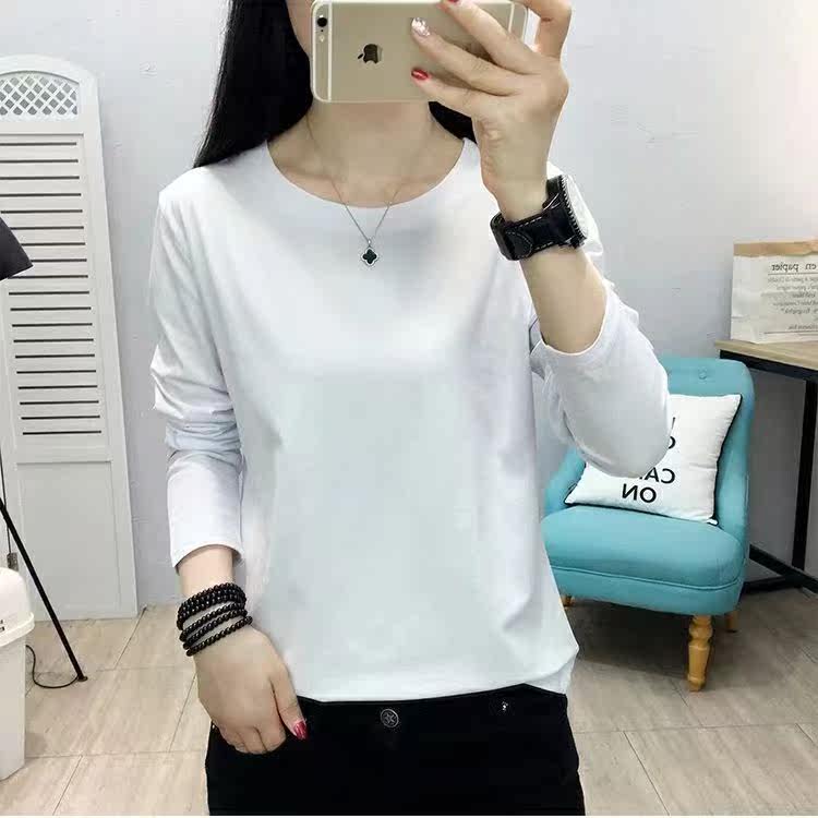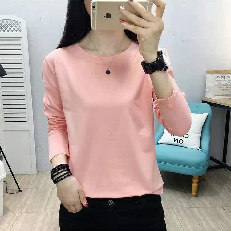 纯棉长袖t恤女春秋新款韩版百搭洋气休闲上衣ins潮宽松体恤打底衫