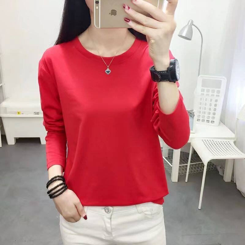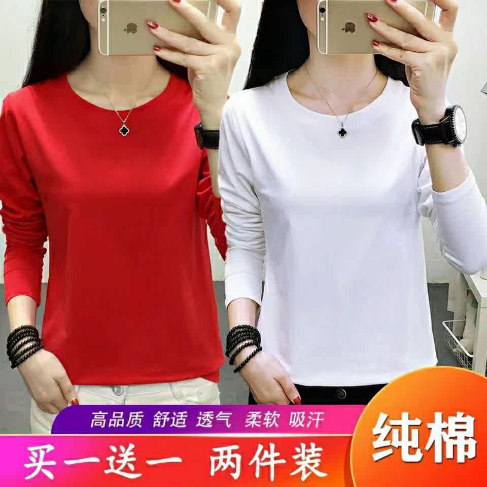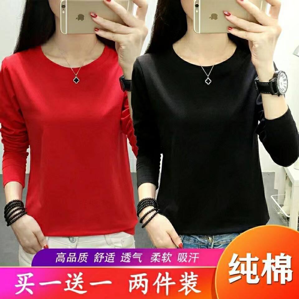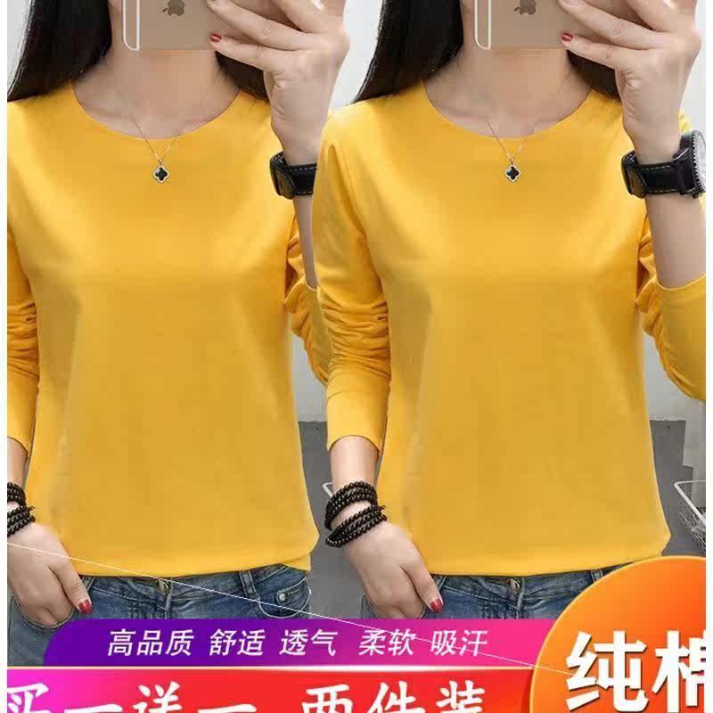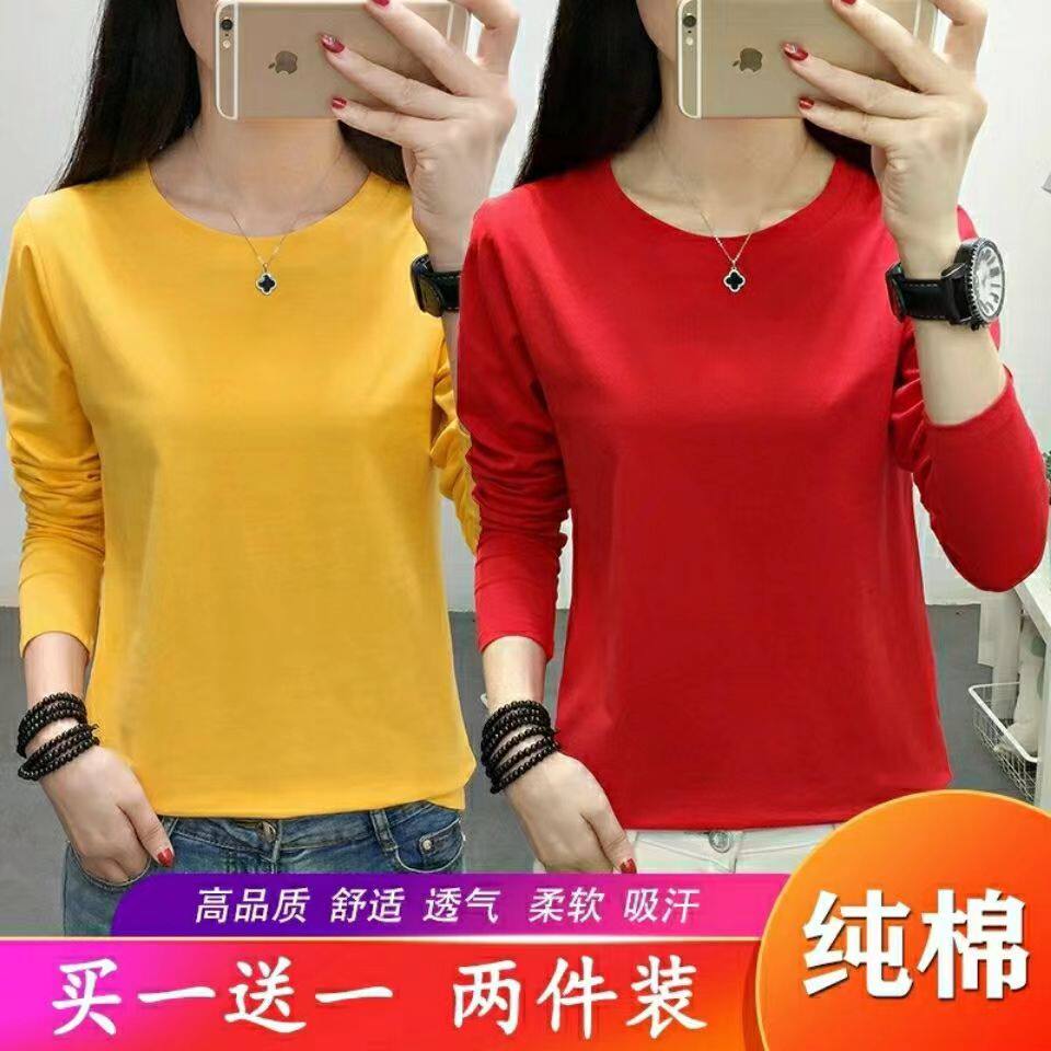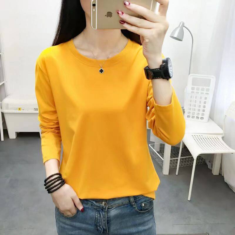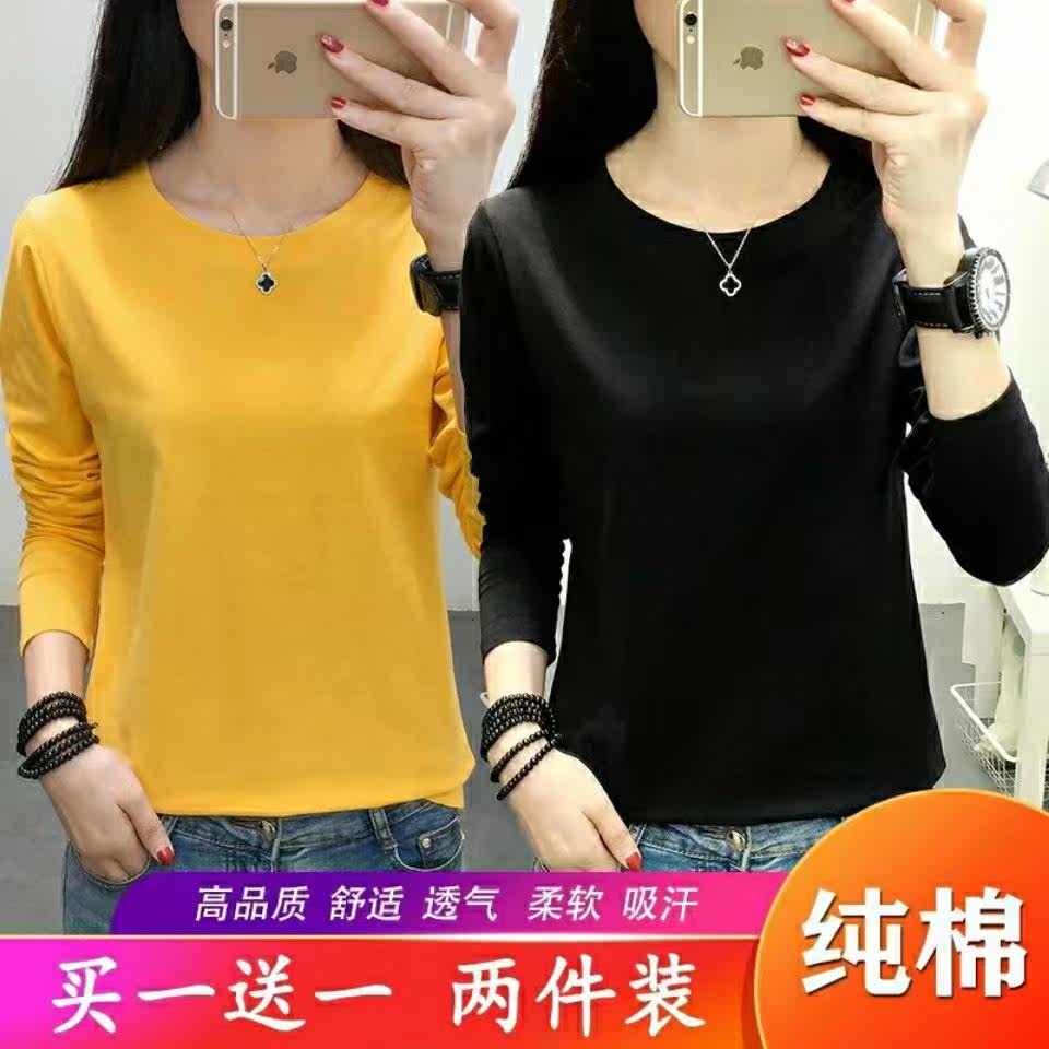 纯棉长袖t恤女春秋新款韩版百搭洋气休闲上衣ins潮宽松体恤打底衫