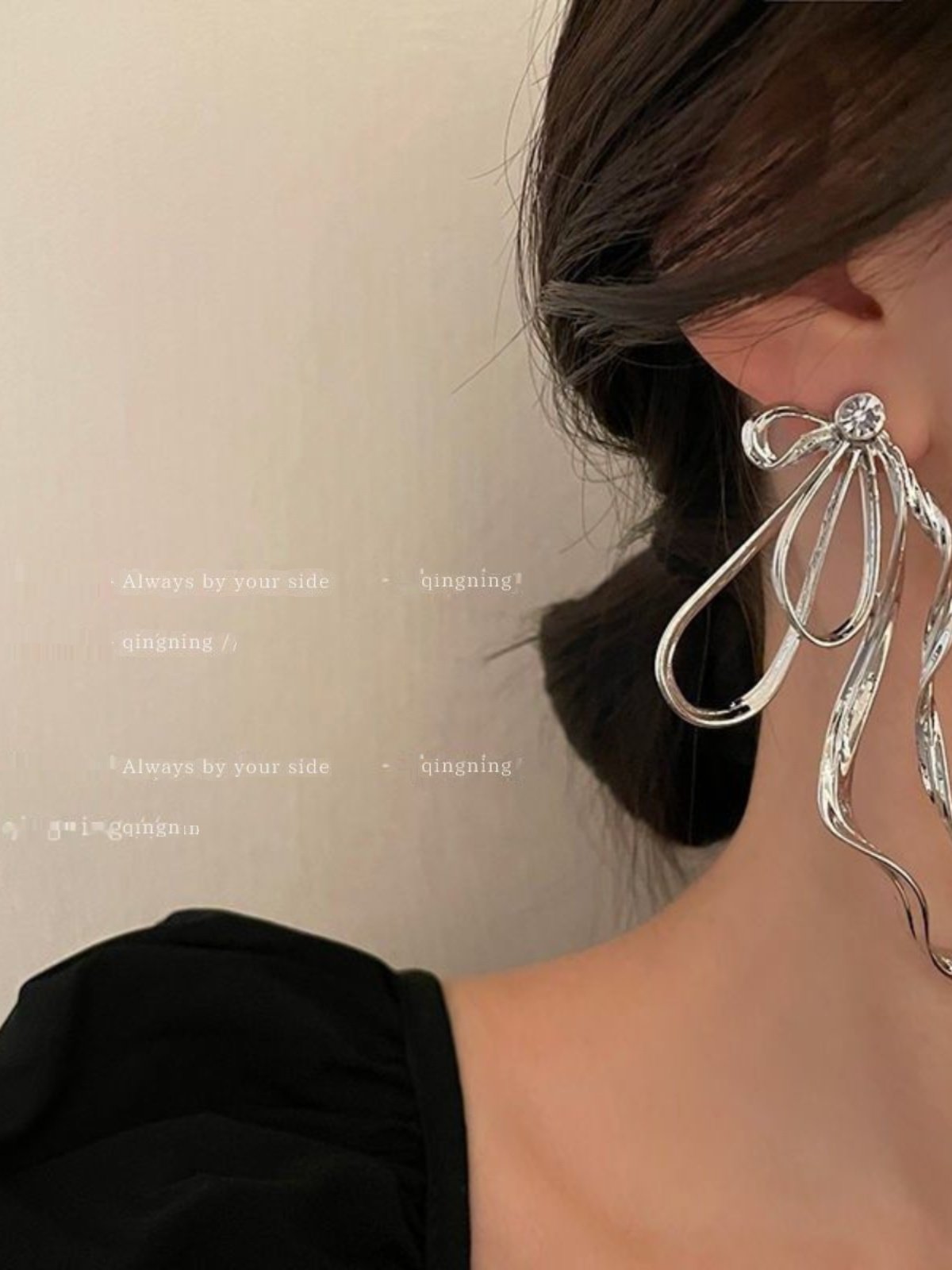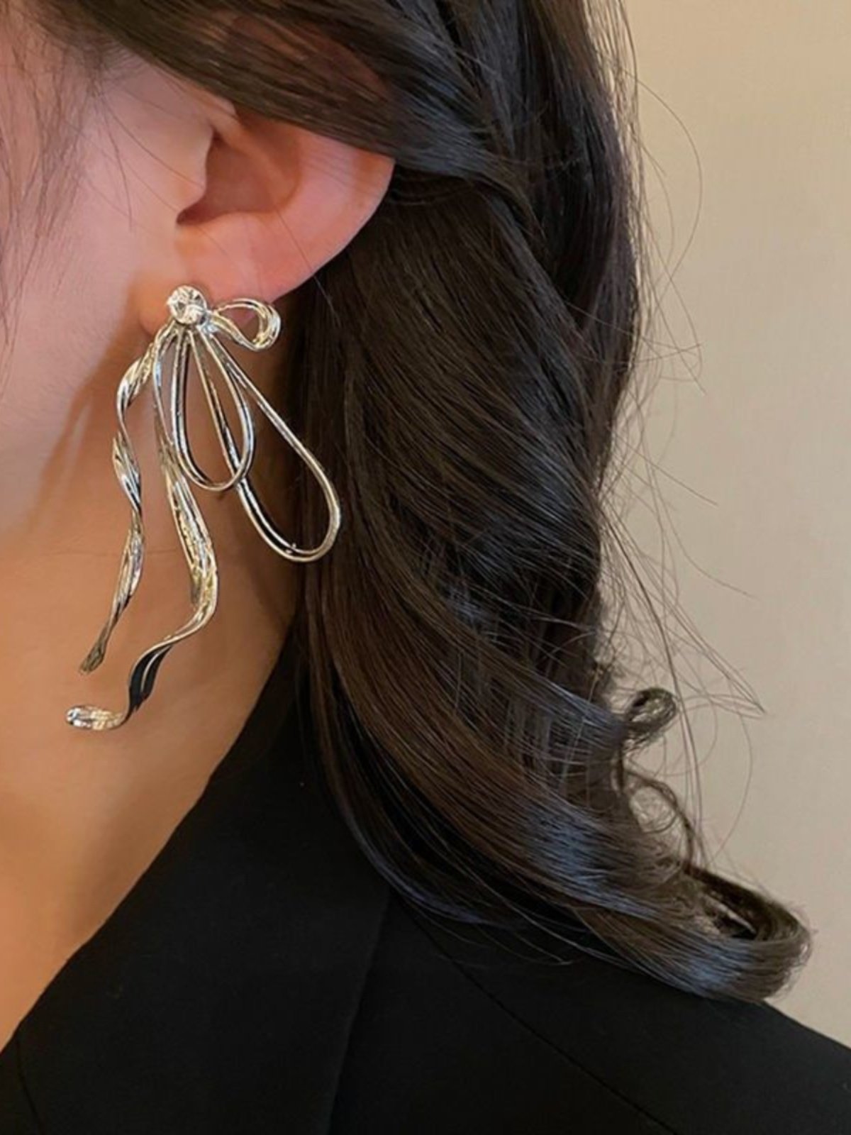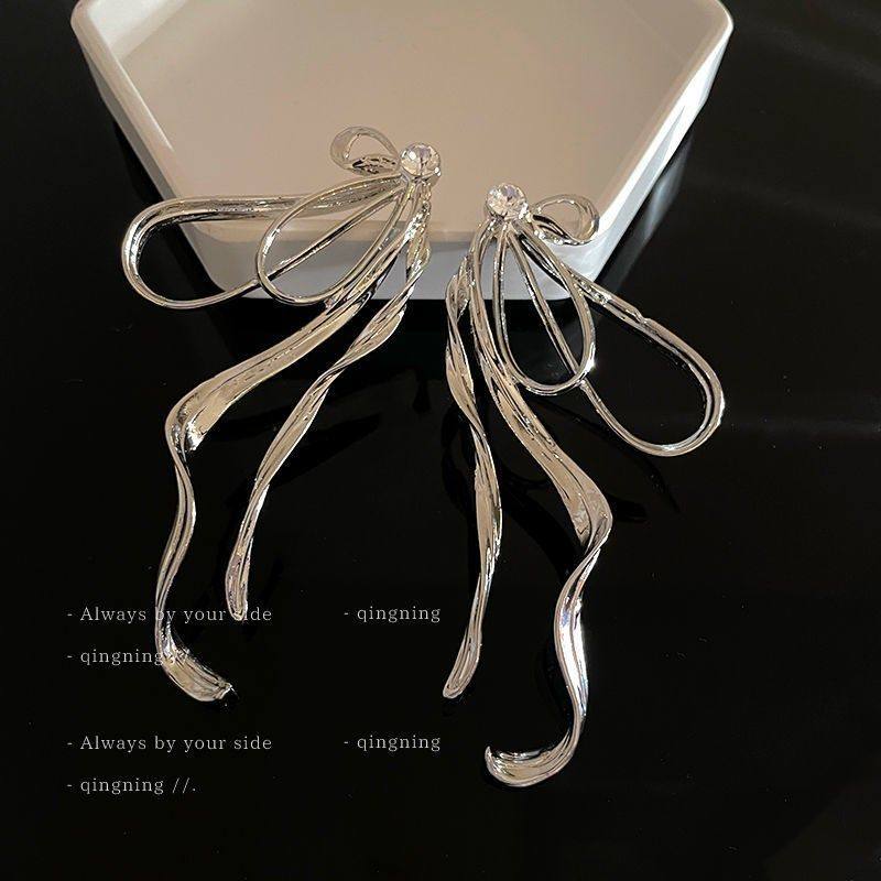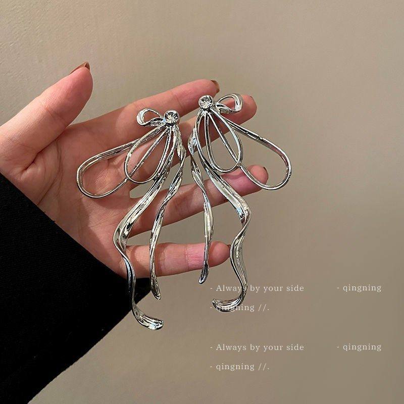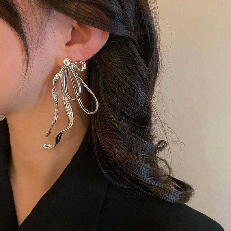 潮流半边蝴蝶结耳环小众高级感气质耳针2024年新款潮设计感耳饰