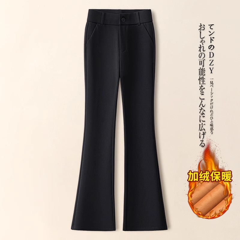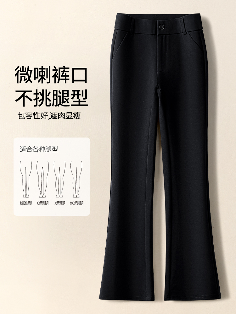 黑色微喇裤子女秋冬2025新款休闲裤垂感西装裤修身加绒加厚喇叭裤
