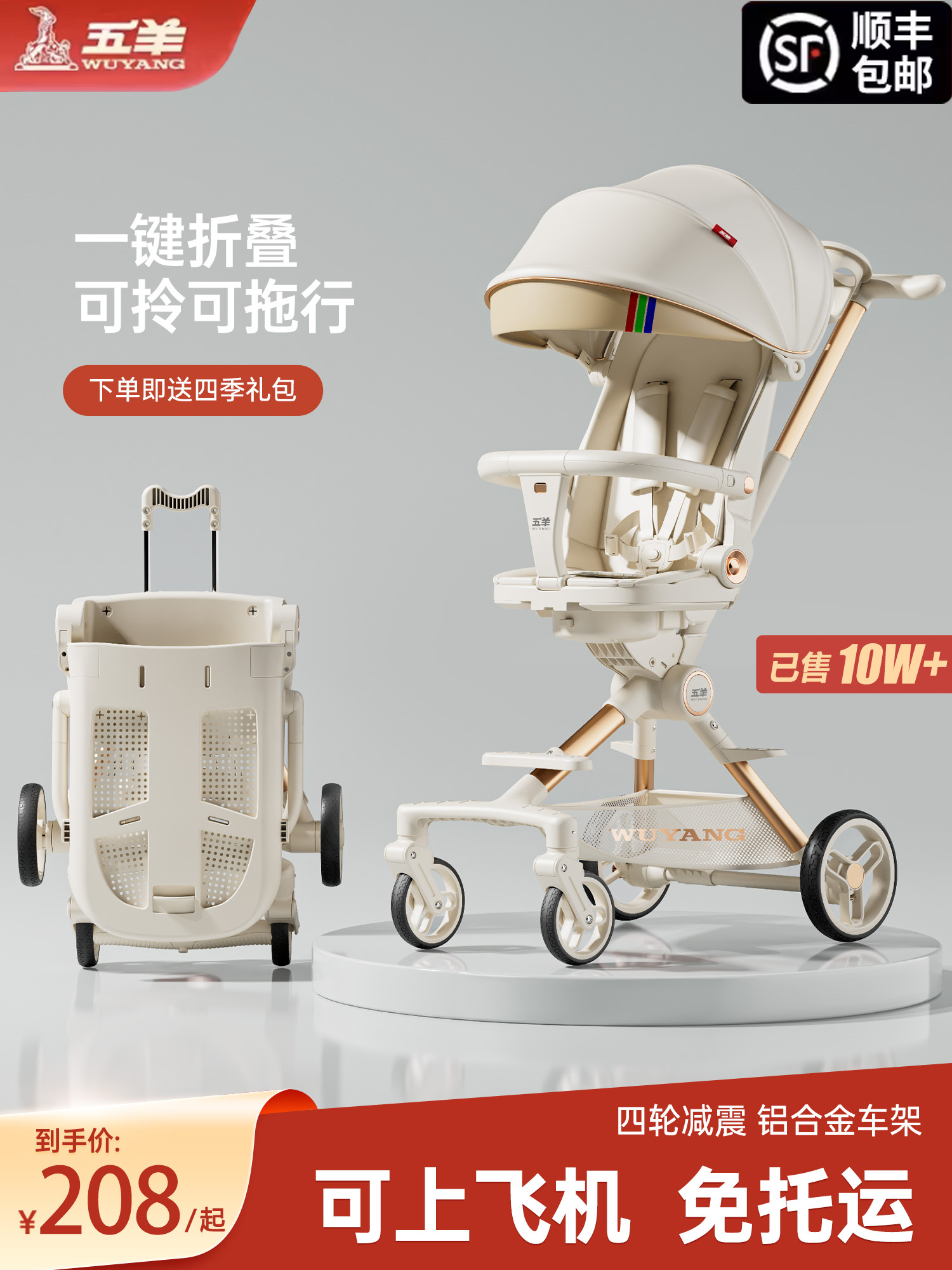 五羊溜娃神器宝宝可坐可躺轻便折叠高景观儿童遛娃婴儿口袋手推车