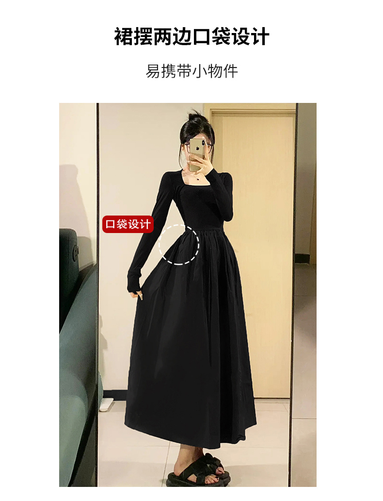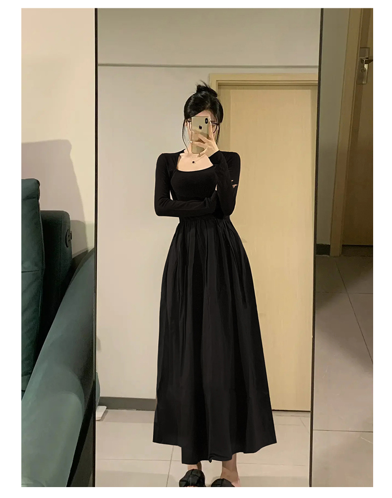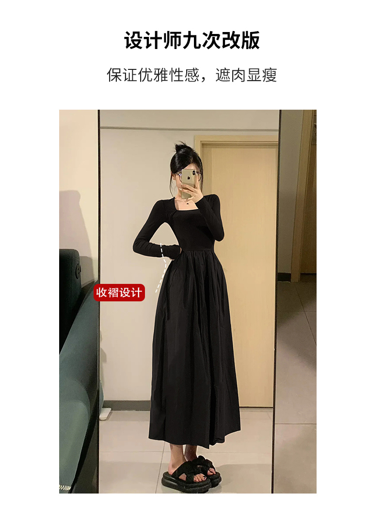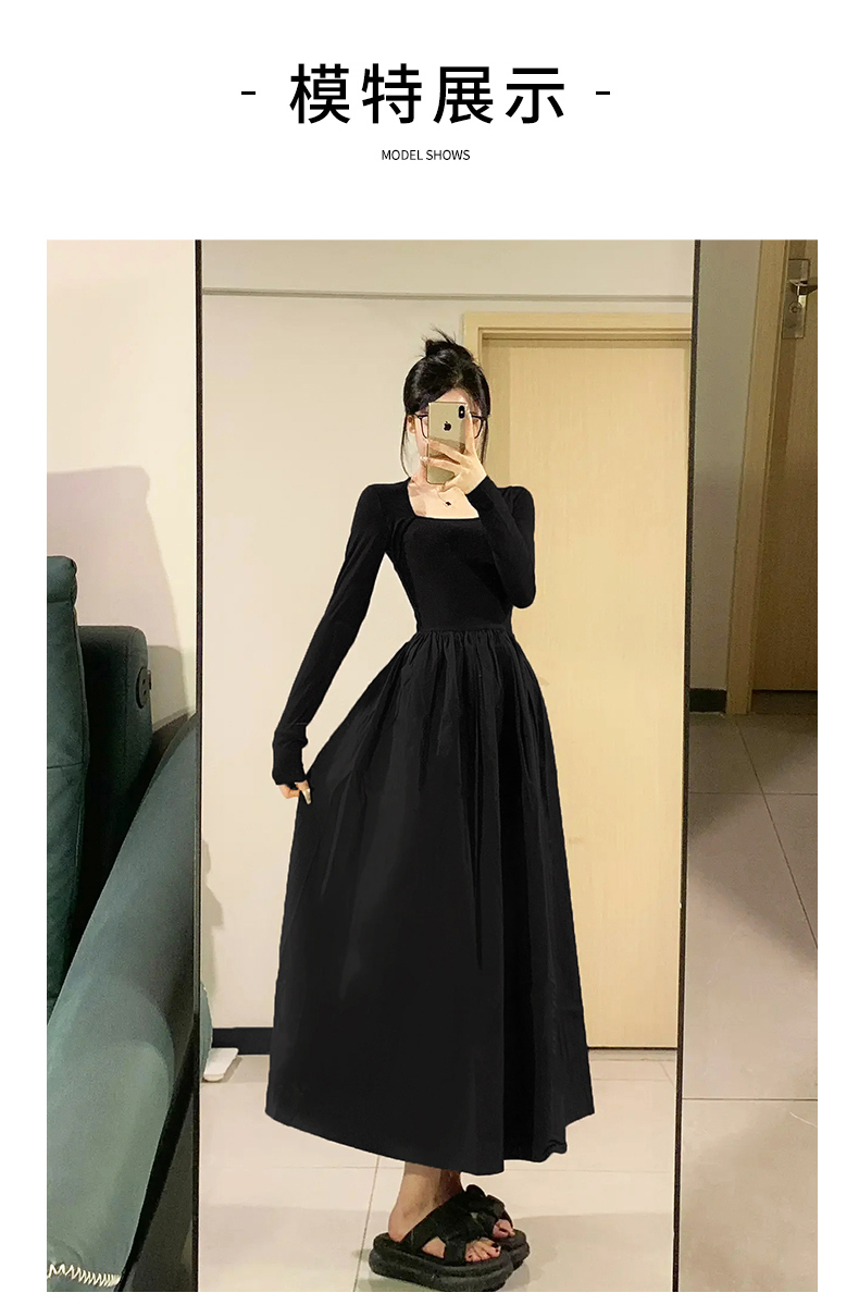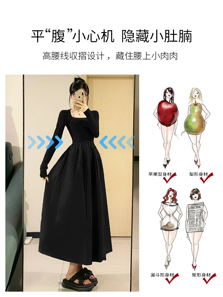 秋季赫本风黑色连衣裙女秋冬套装高级感长裙子一整套穿搭2025新款