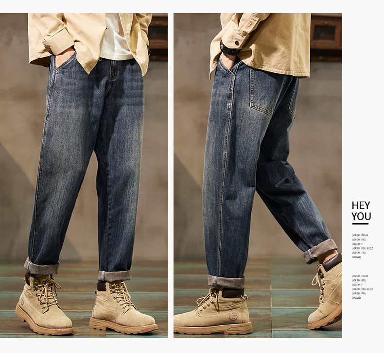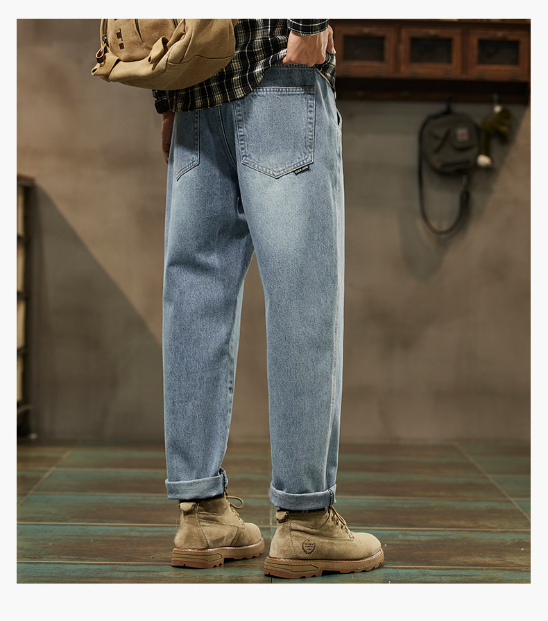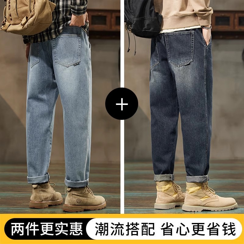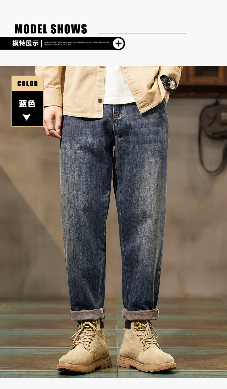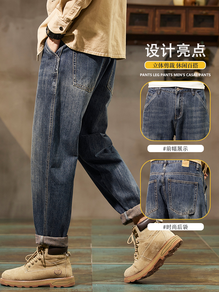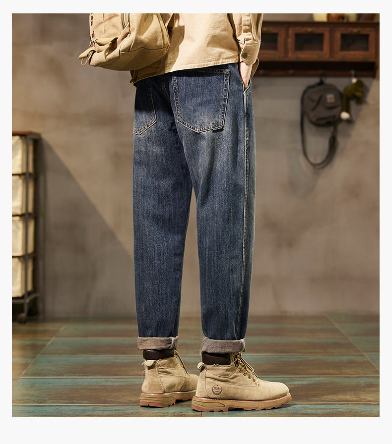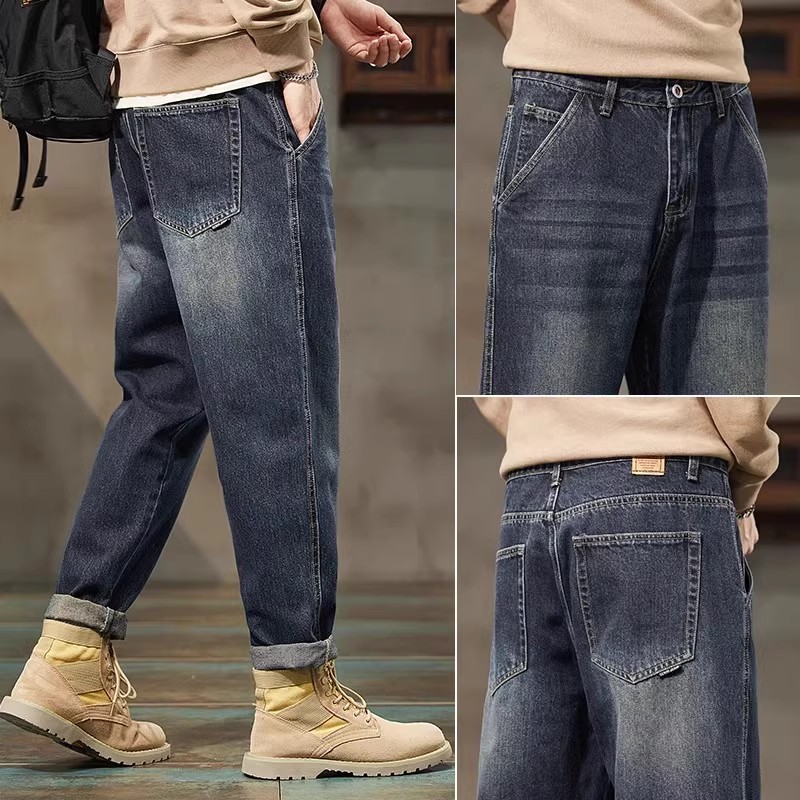 美式牛仔裤男士潮牌直筒宽松2025秋冬加绒新款水洗工装男生长裤子