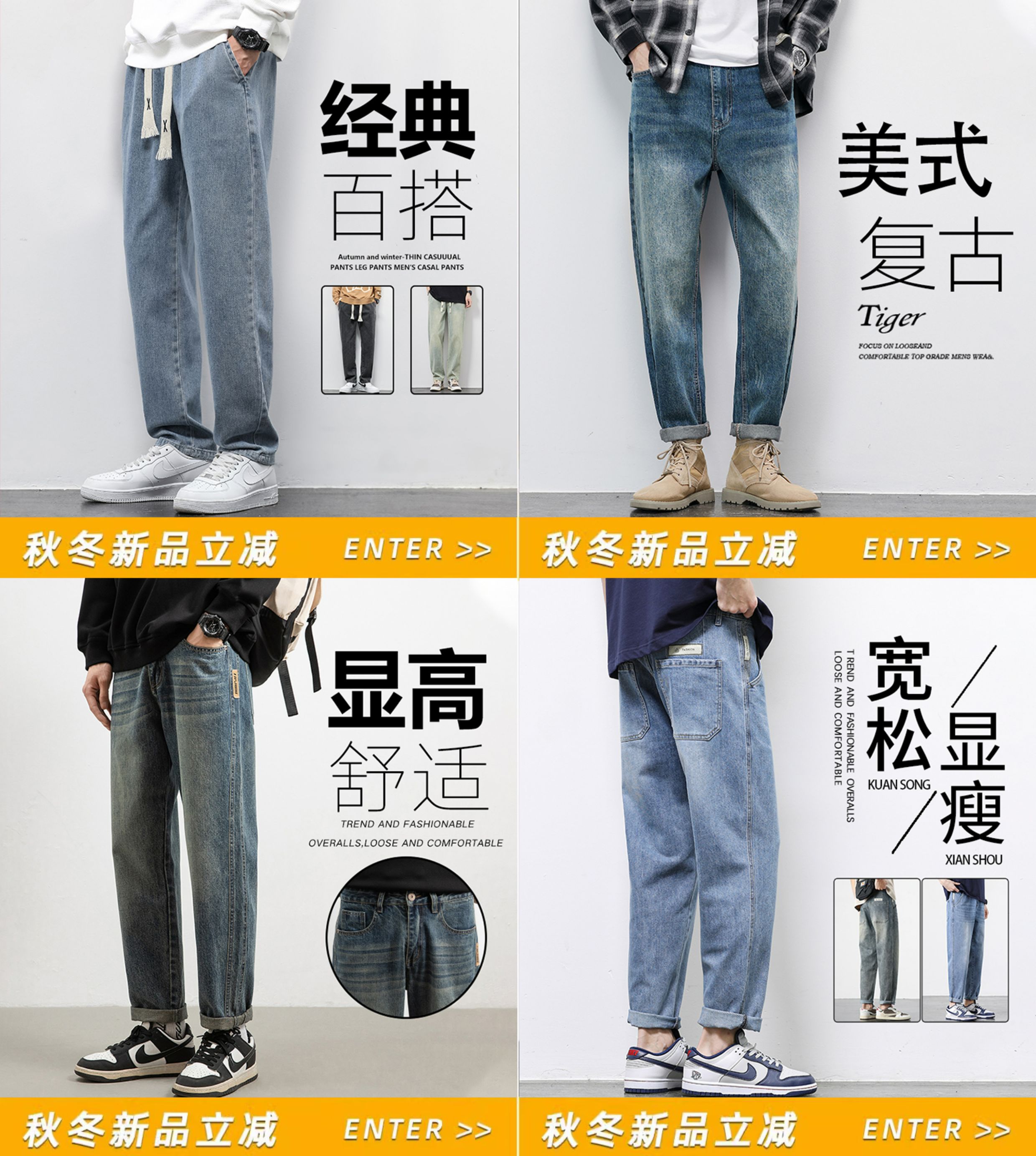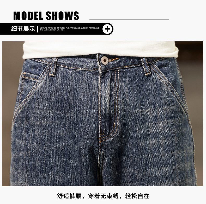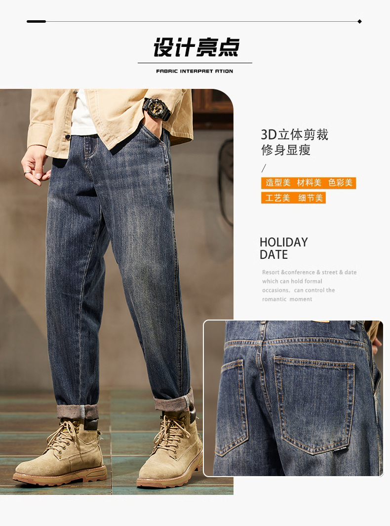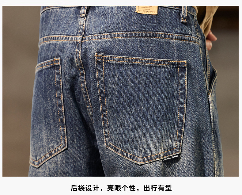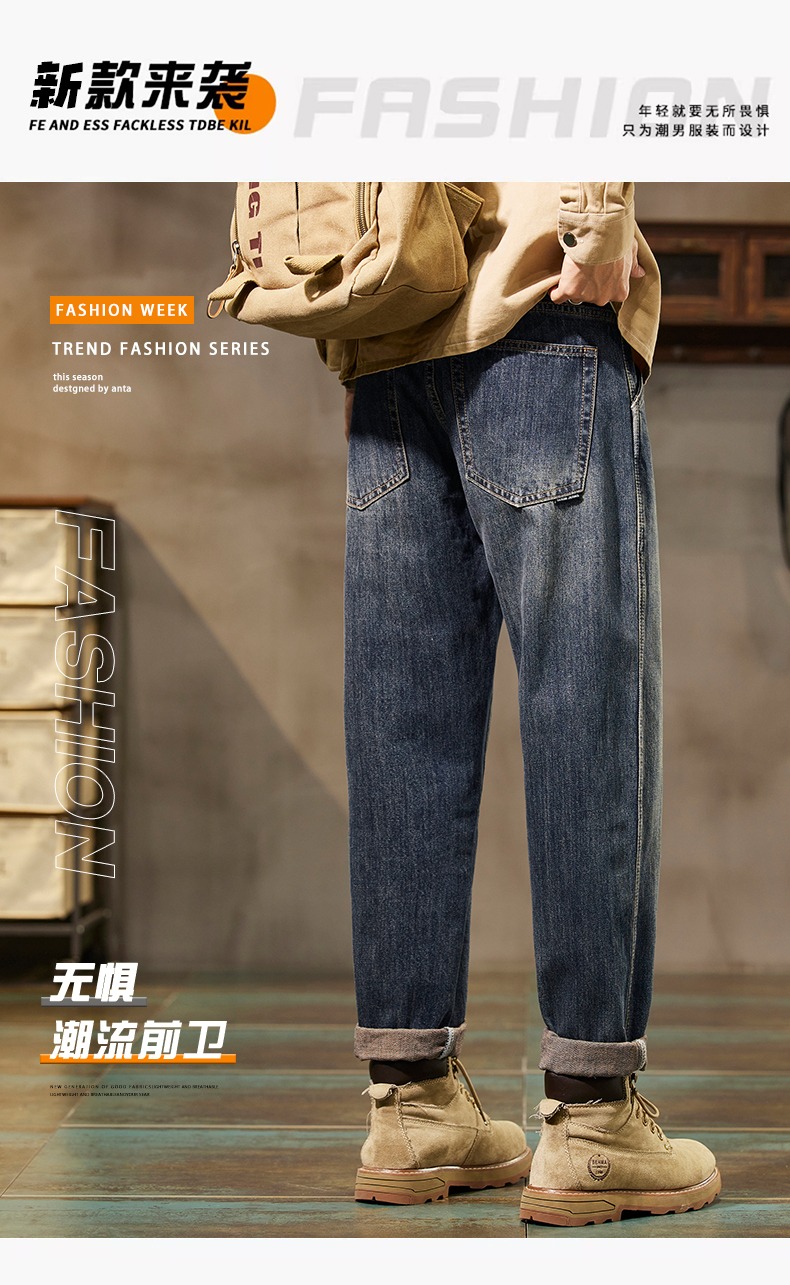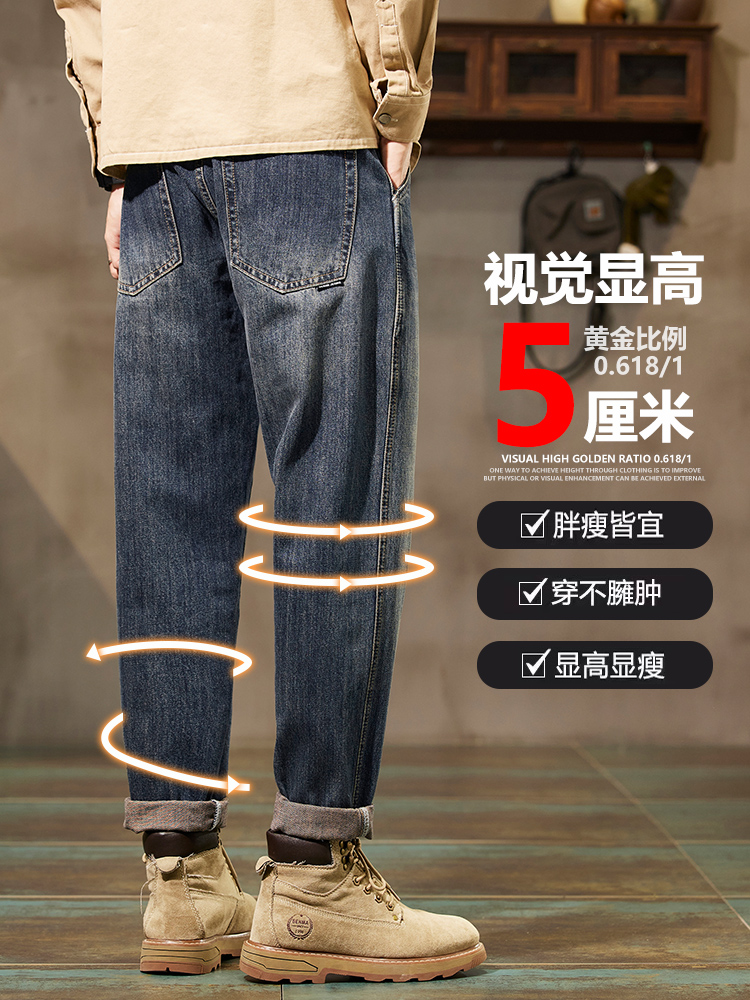 美式牛仔裤男士潮牌直筒宽松2025秋冬加绒新款水洗工装男生长裤子