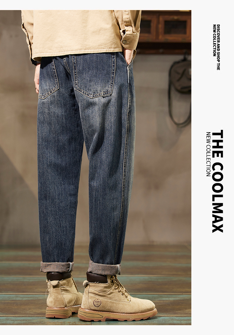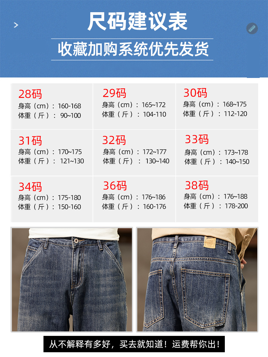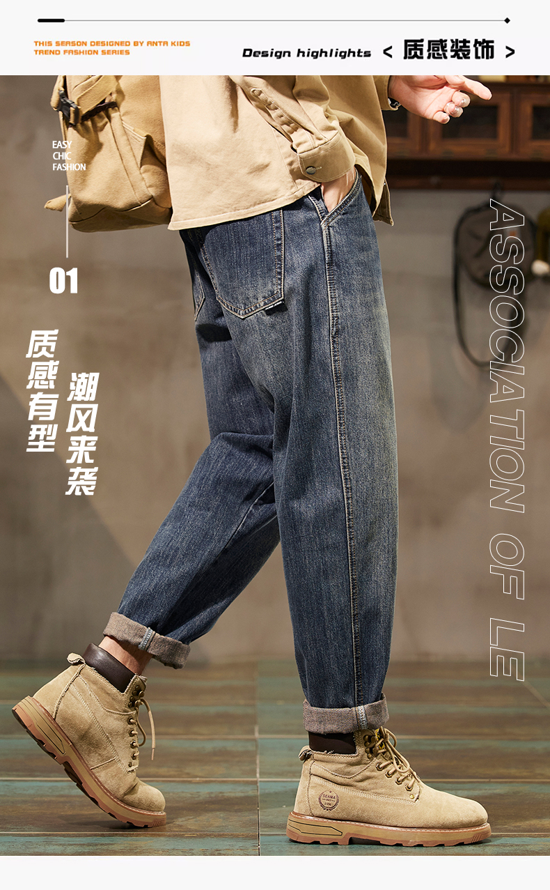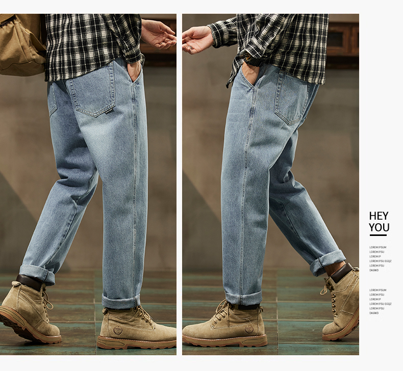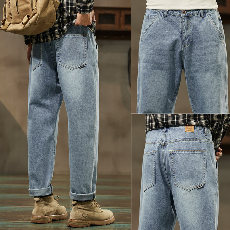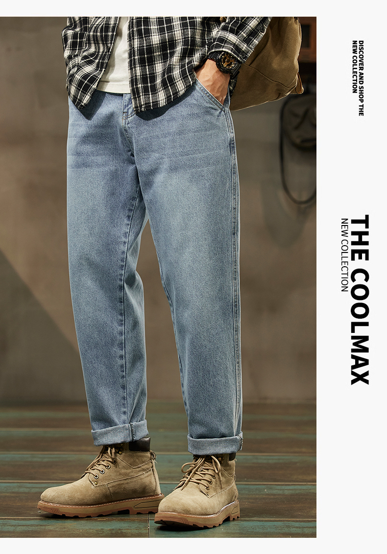 美式牛仔裤男士潮牌直筒宽松2025秋冬加绒新款水洗工装男生长裤子