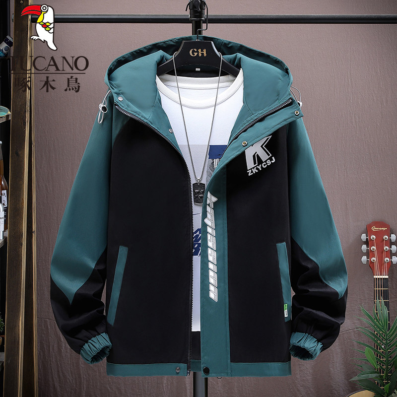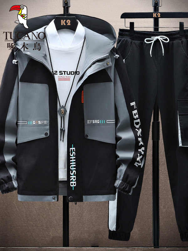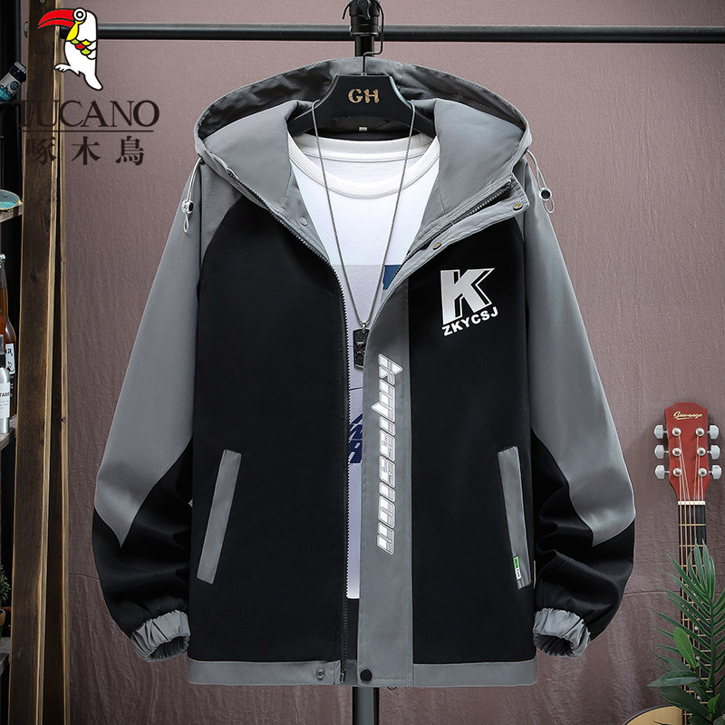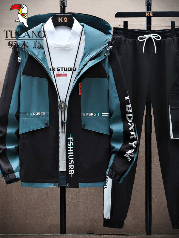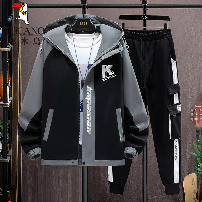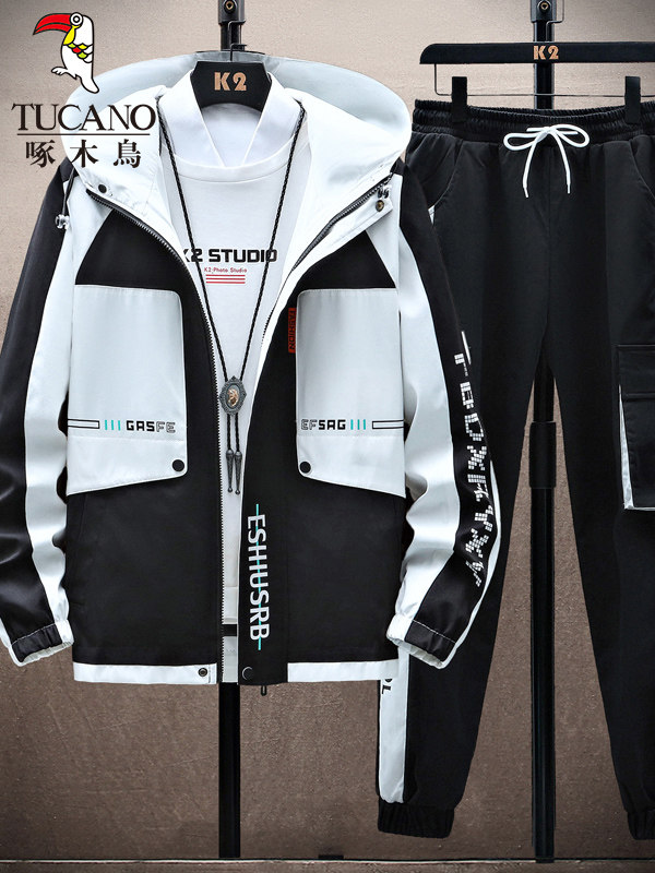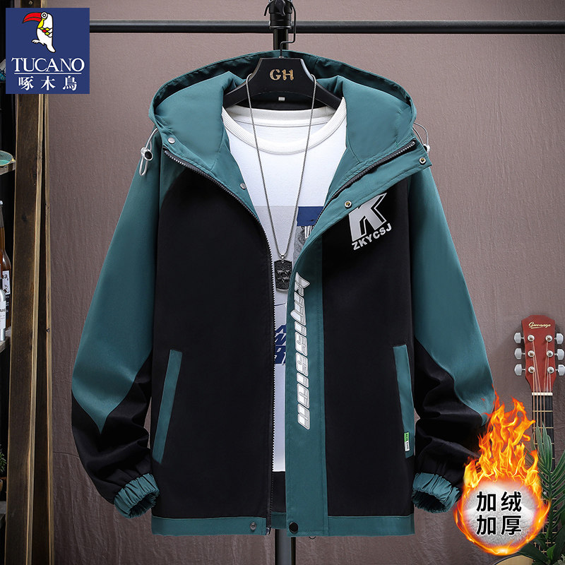 啄木鸟秋冬季外套男士加绒加厚新款夹克青少年套装潮帅气保暖男装