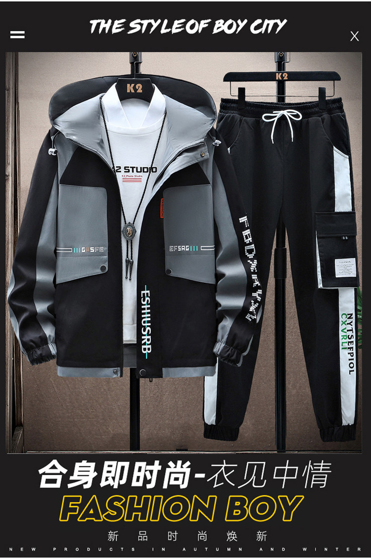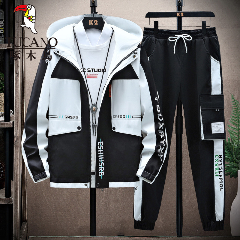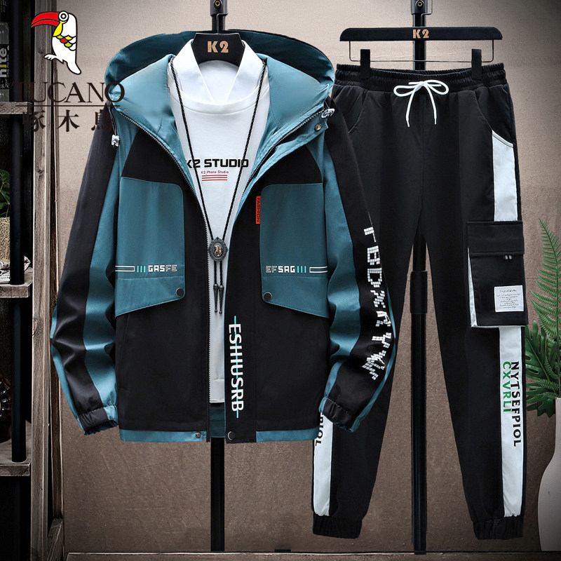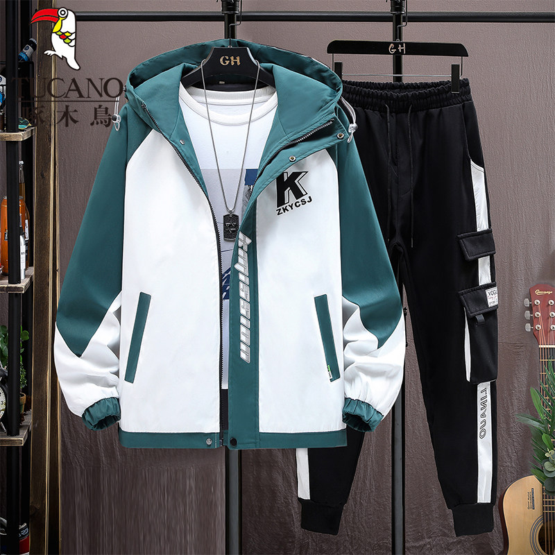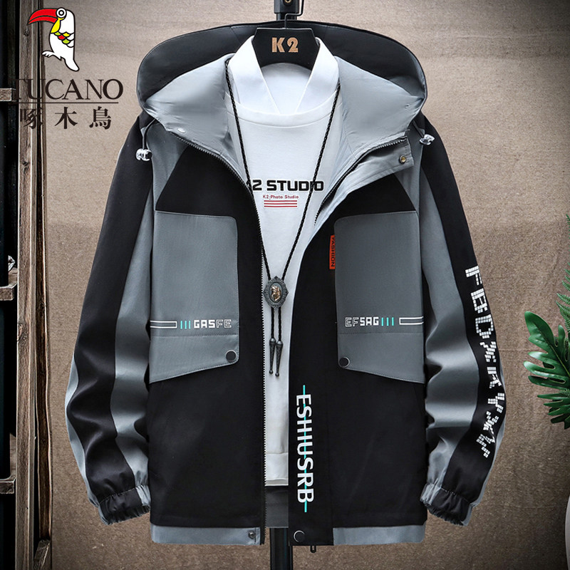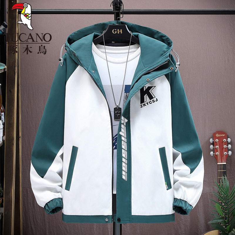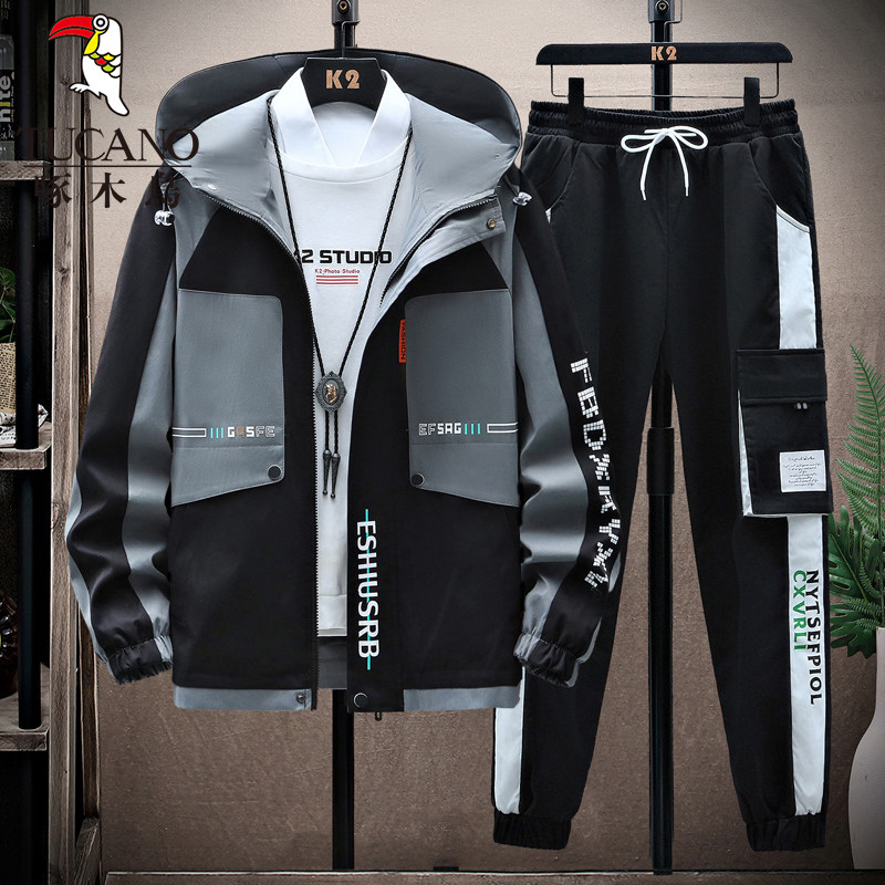 啄木鸟秋冬季外套男士加绒加厚新款夹克青少年套装潮帅气保暖男装